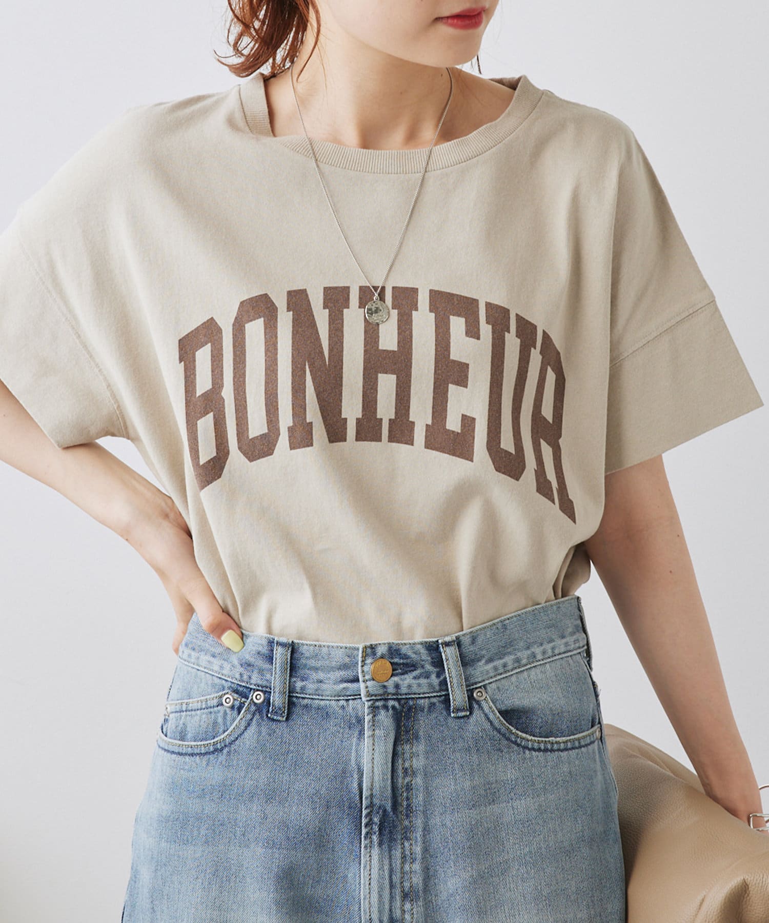 万能なカラーボディに配色ロゴをプリントした、カジュアルなTシャツ。