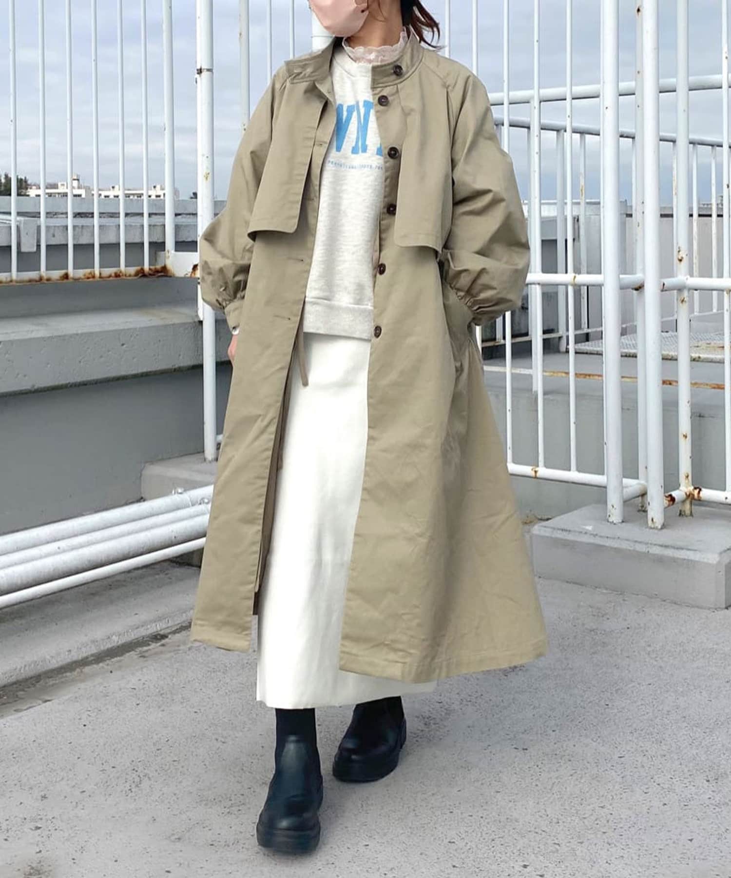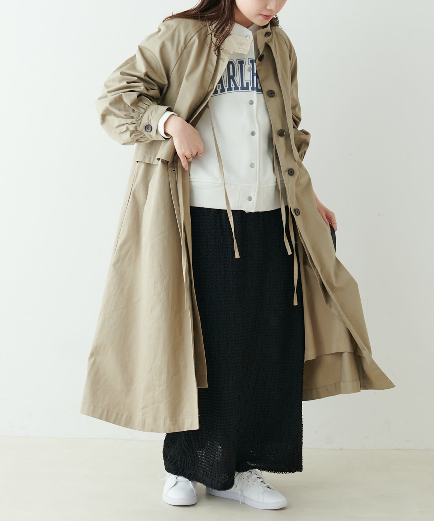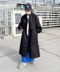 サイズ感:膝下くらいの長すぎない着丈で、身幅や袖周りに余裕のあるサイズ感です。