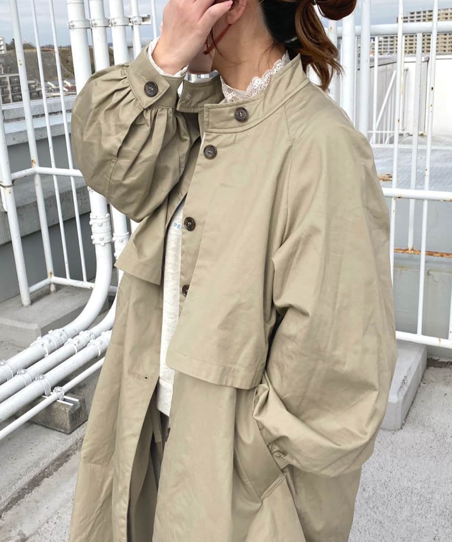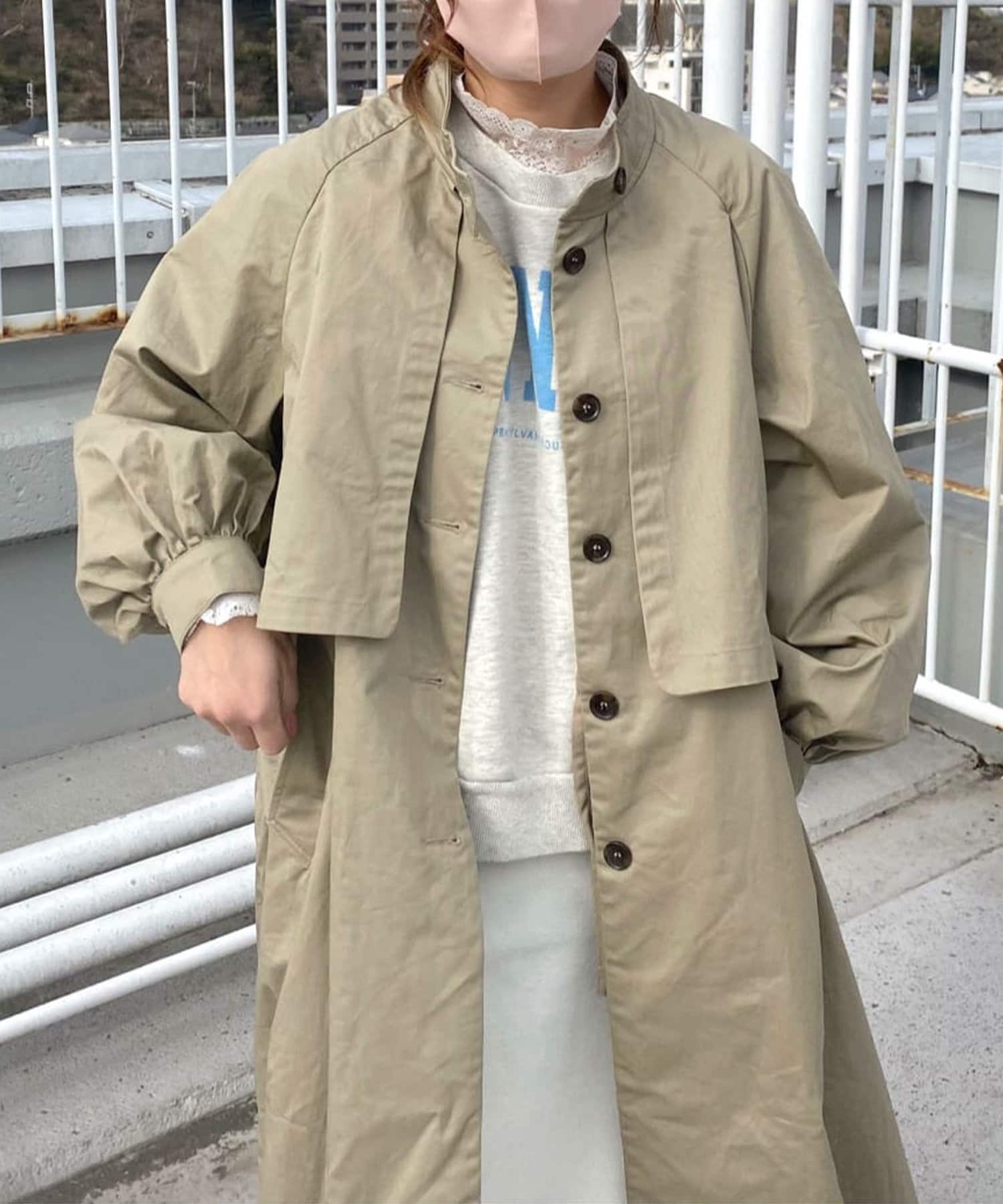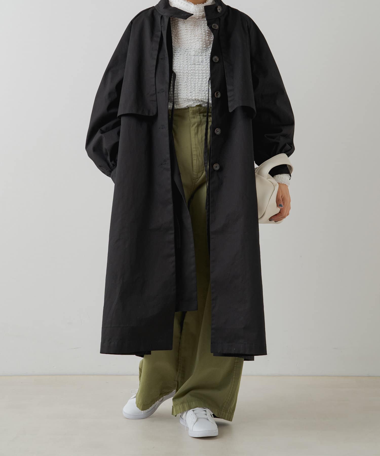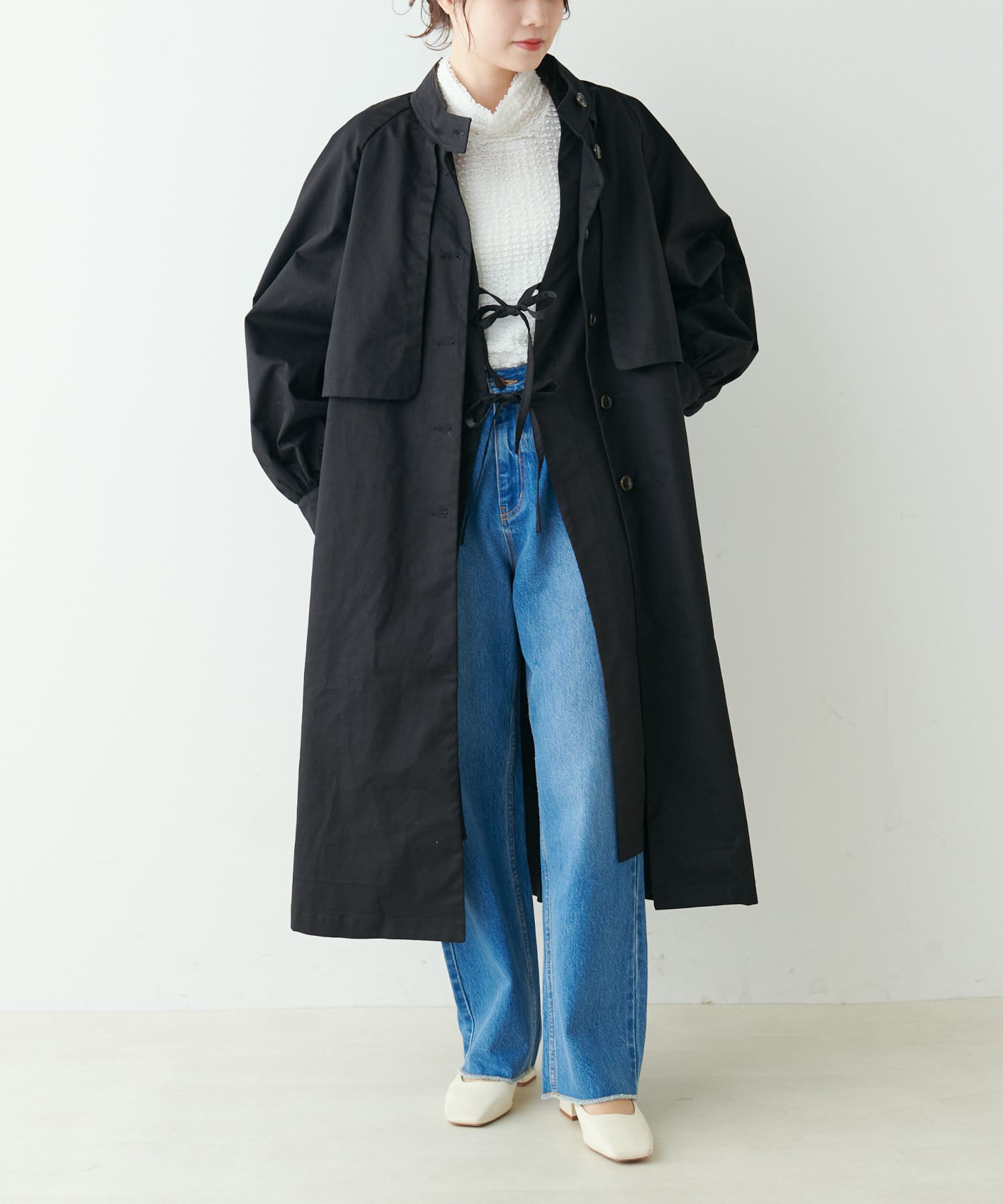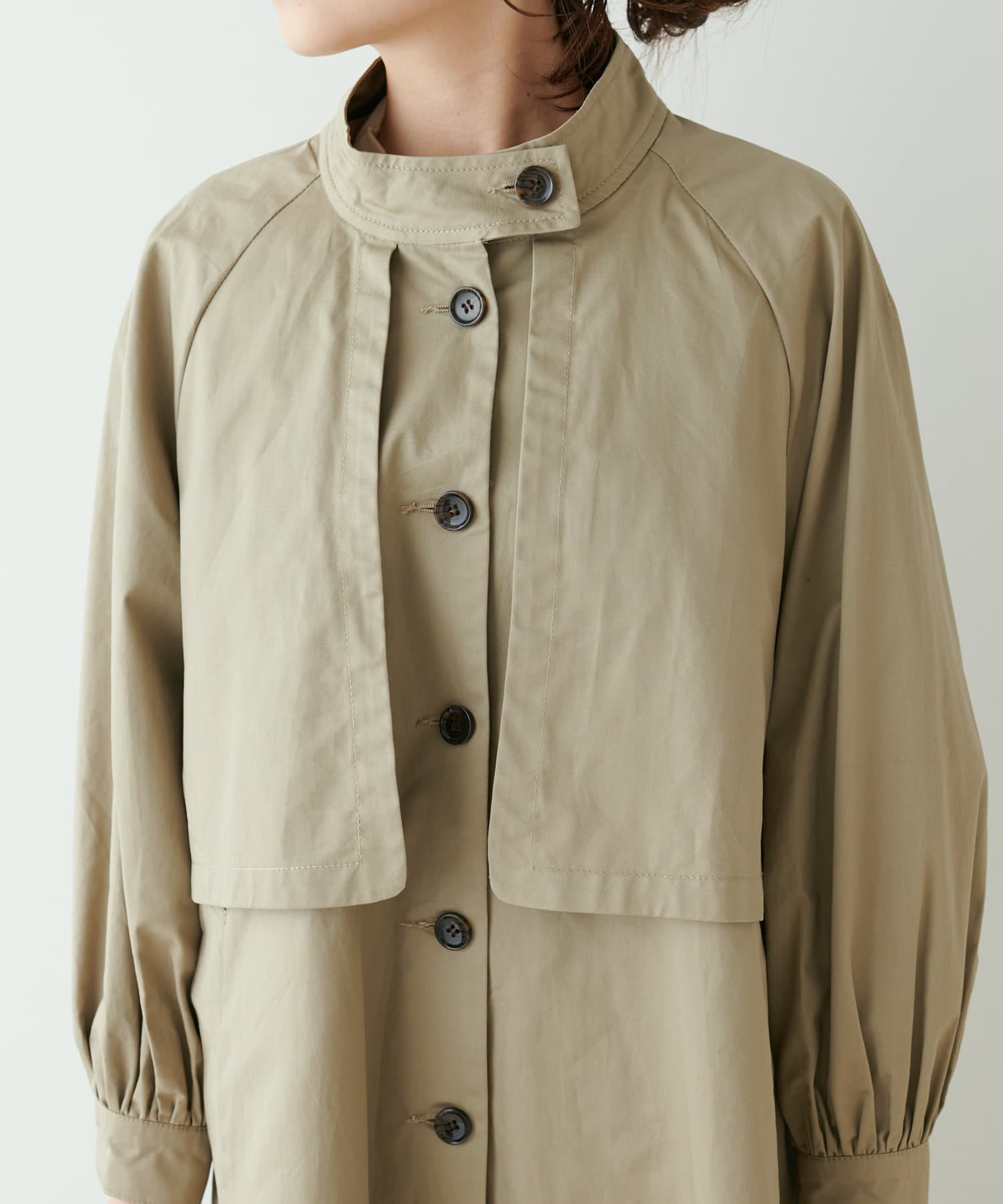 ざっくり羽織るだけでも様になりますが、ボタンを全部閉めるとスタンドカラーになり、また違った印象で楽しめます。