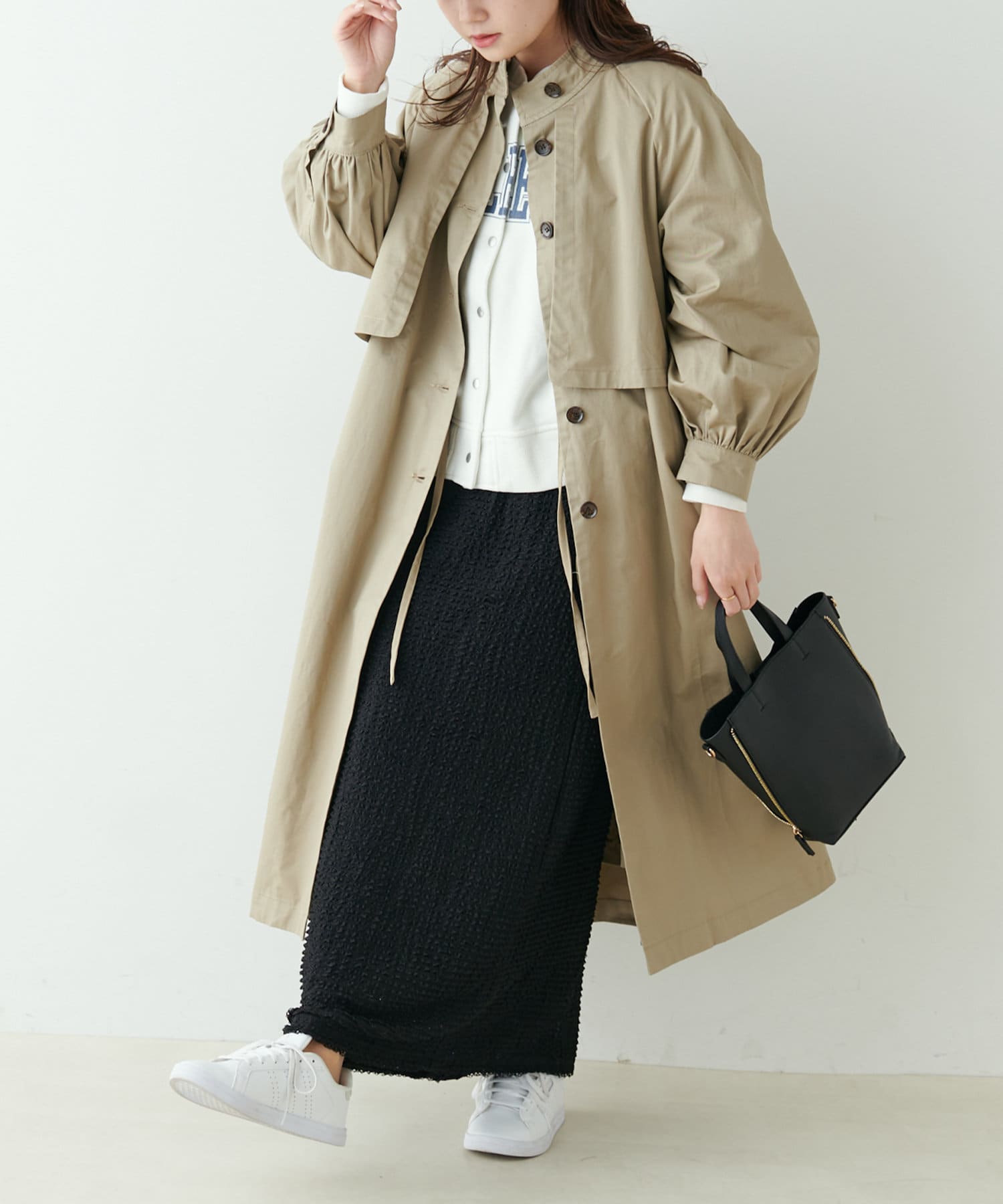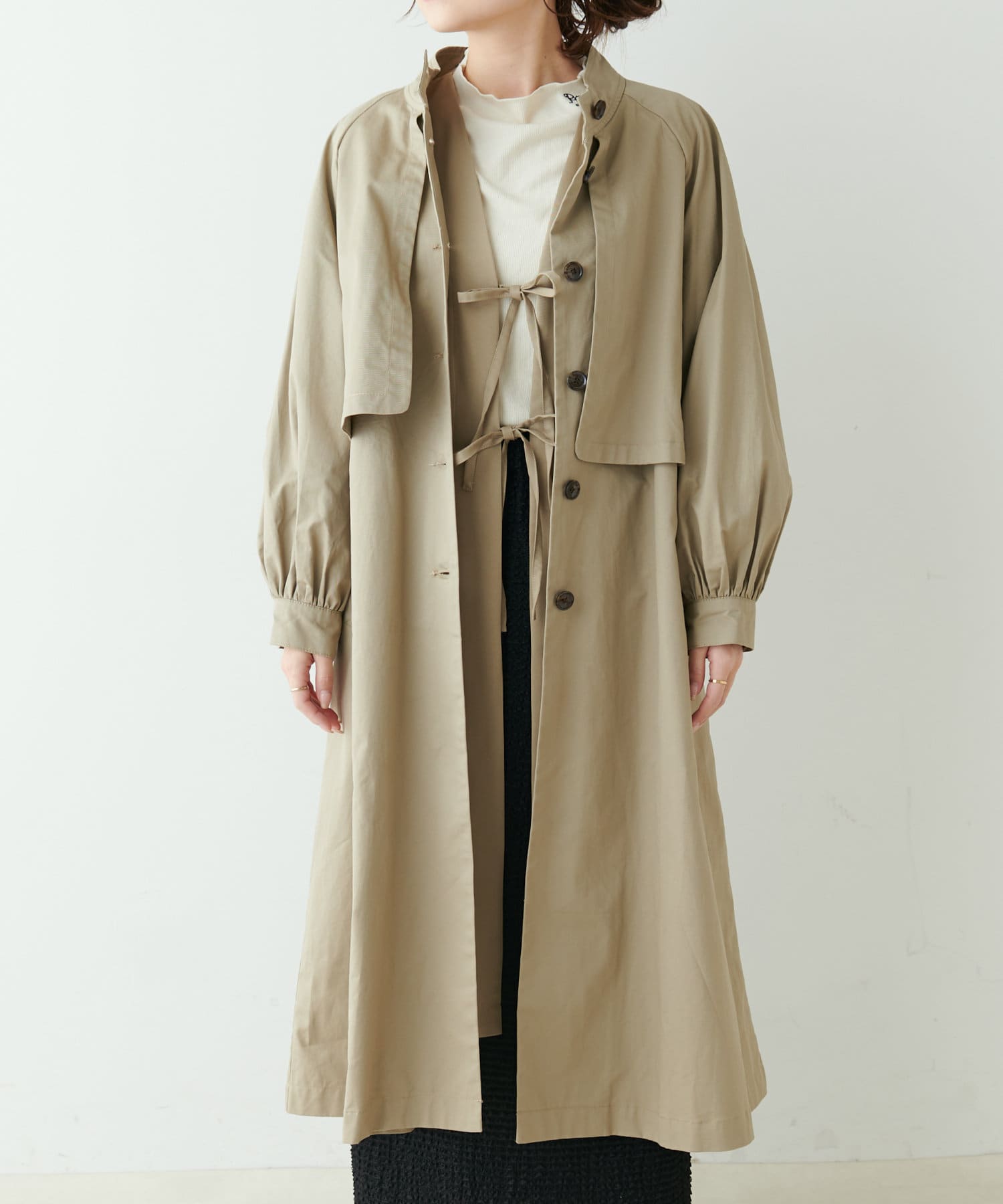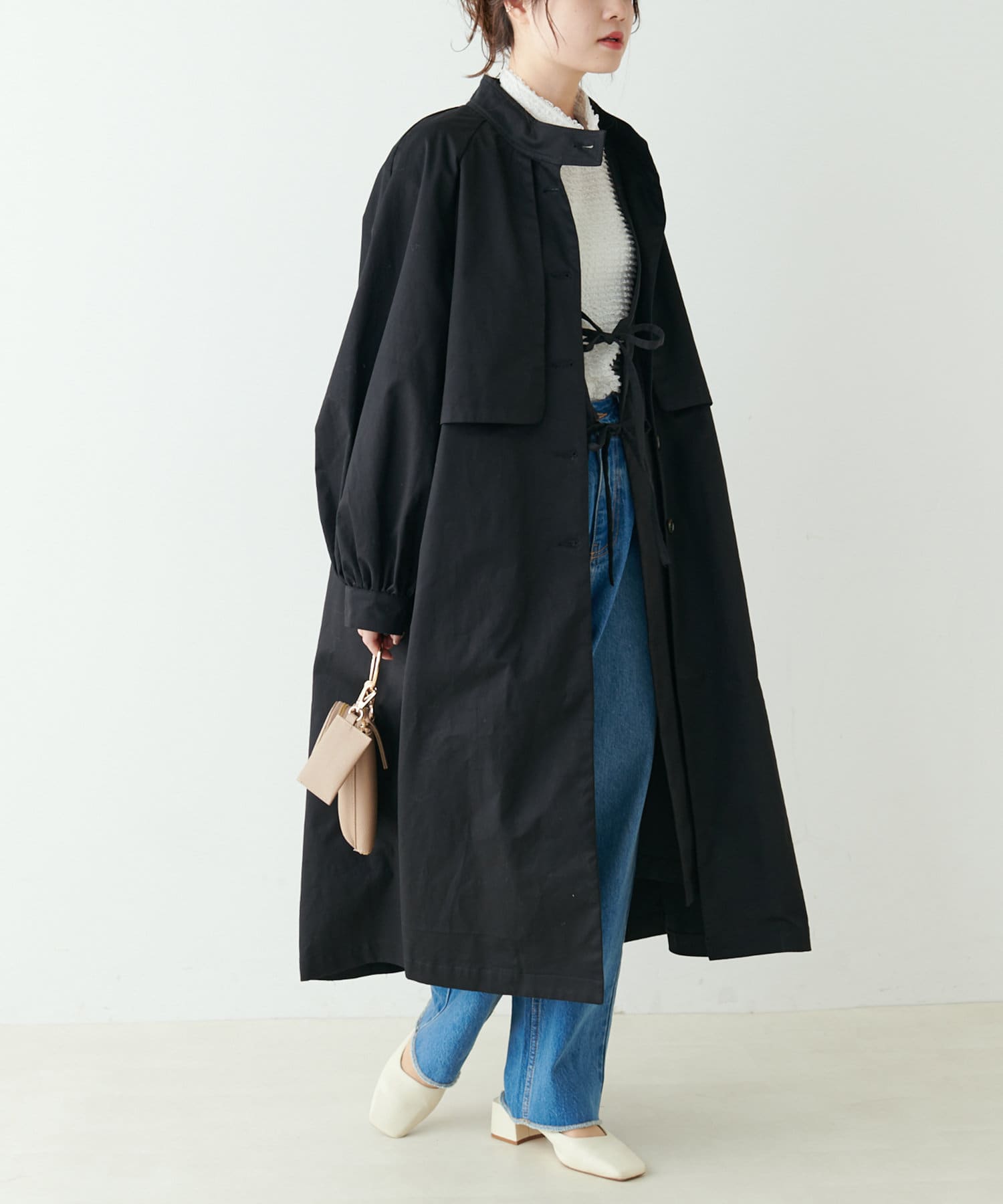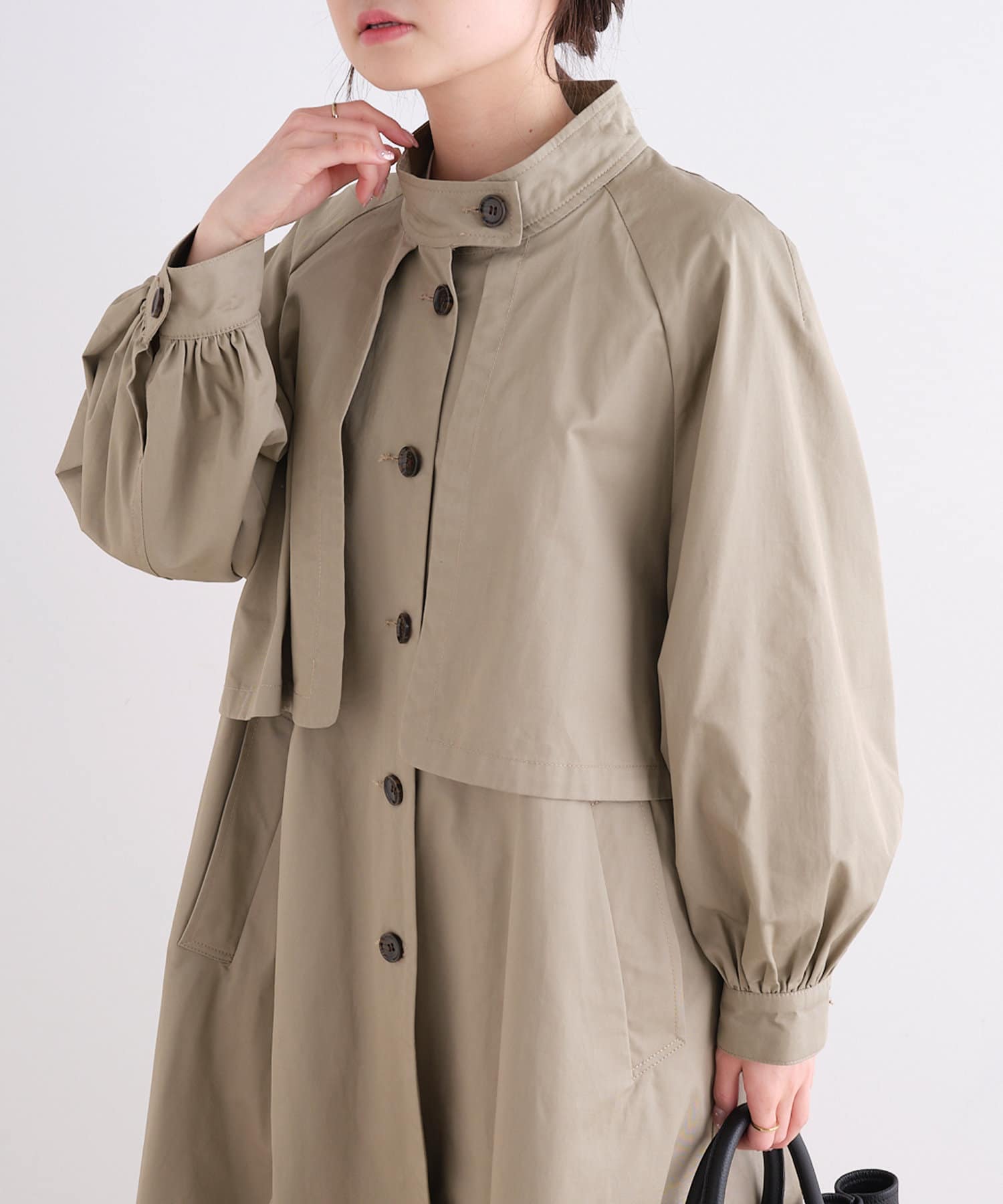 ざっくり羽織るだけでも様になりますが、ボタンを全部閉めるとスタンドカラーになり、また違った印象で楽しめます。