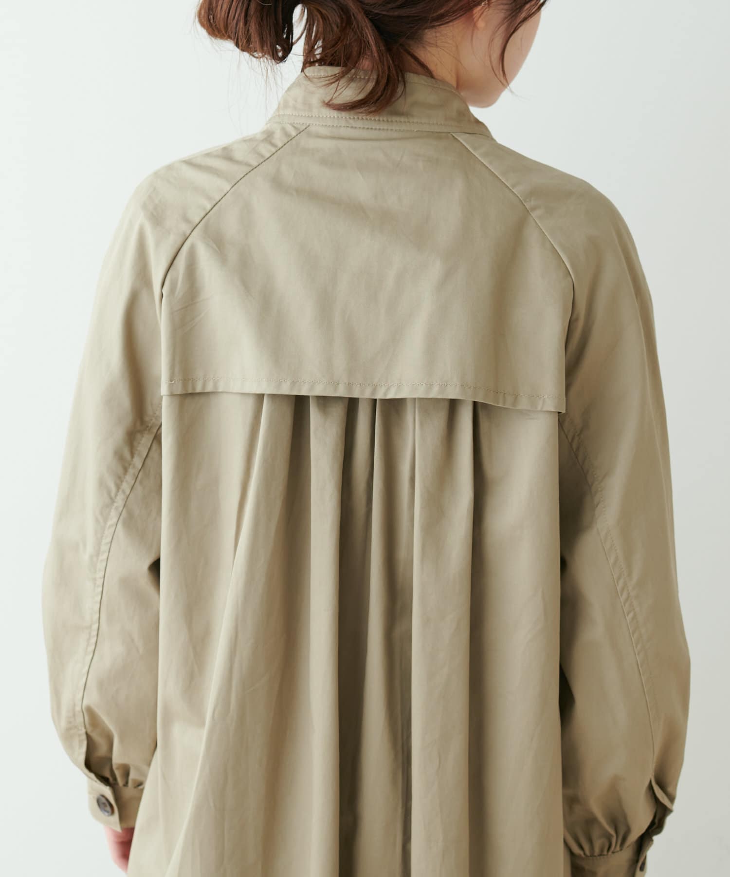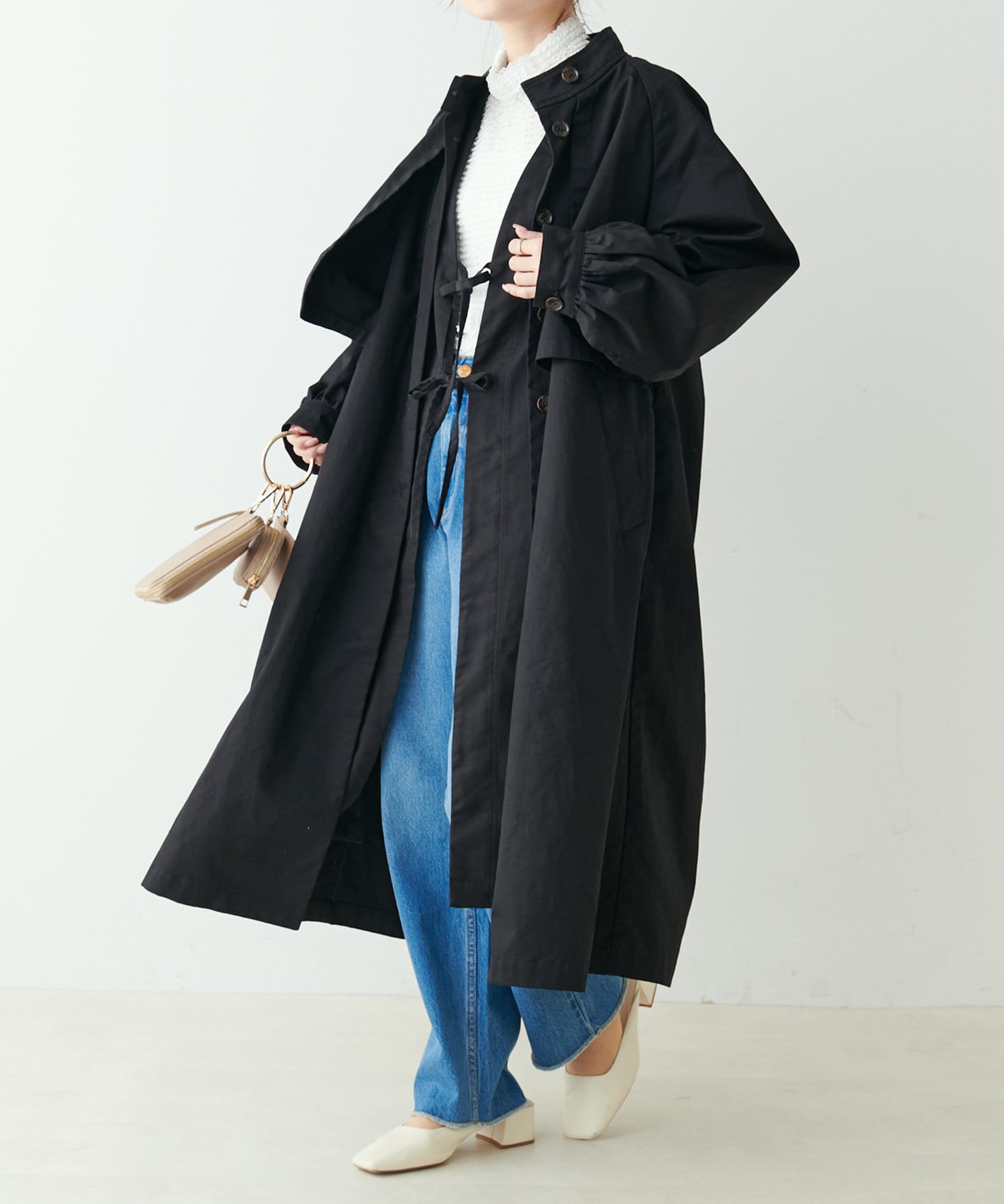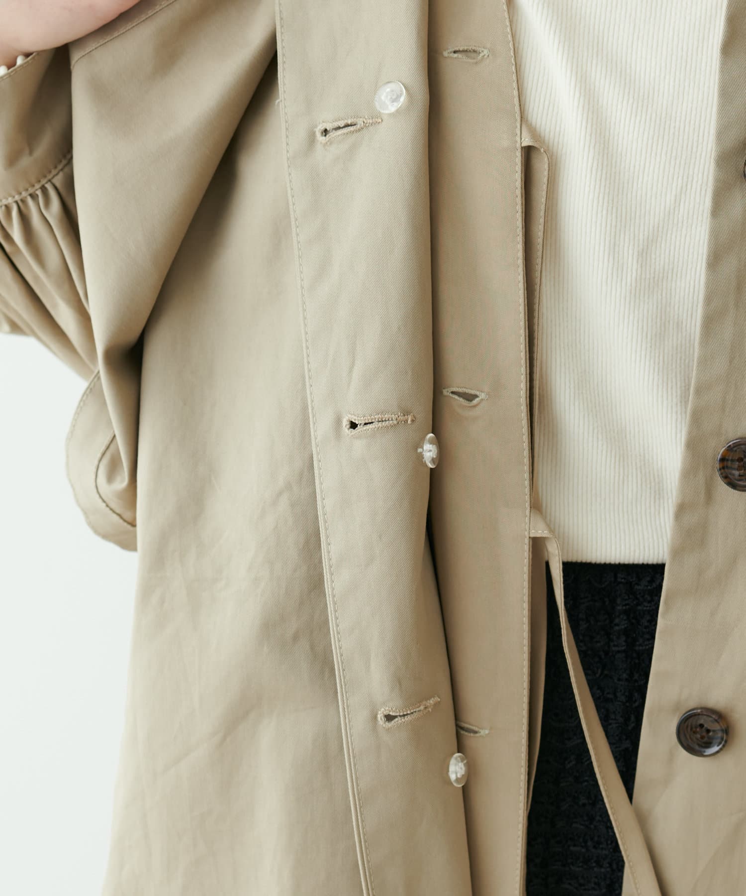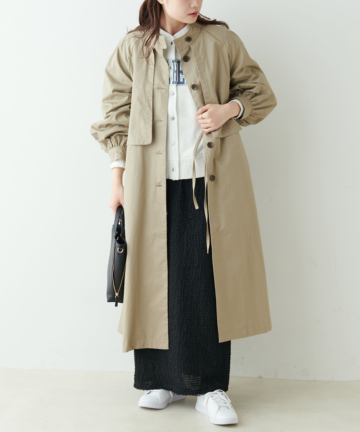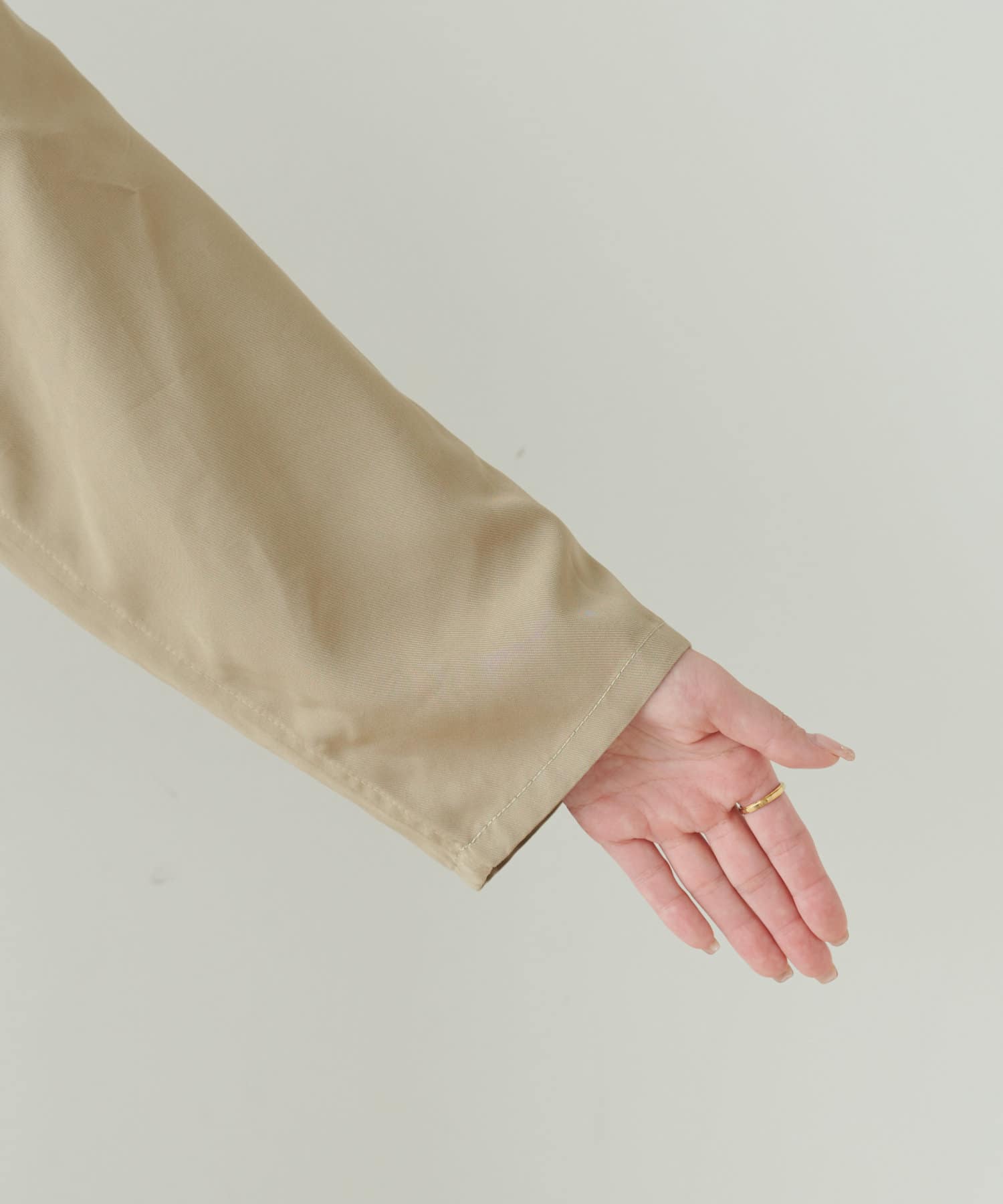 ざっくり羽織るだけでも様になりますが、ボタンを全部閉めるとスタンドカラーになり、また違った印象で楽しめます。
