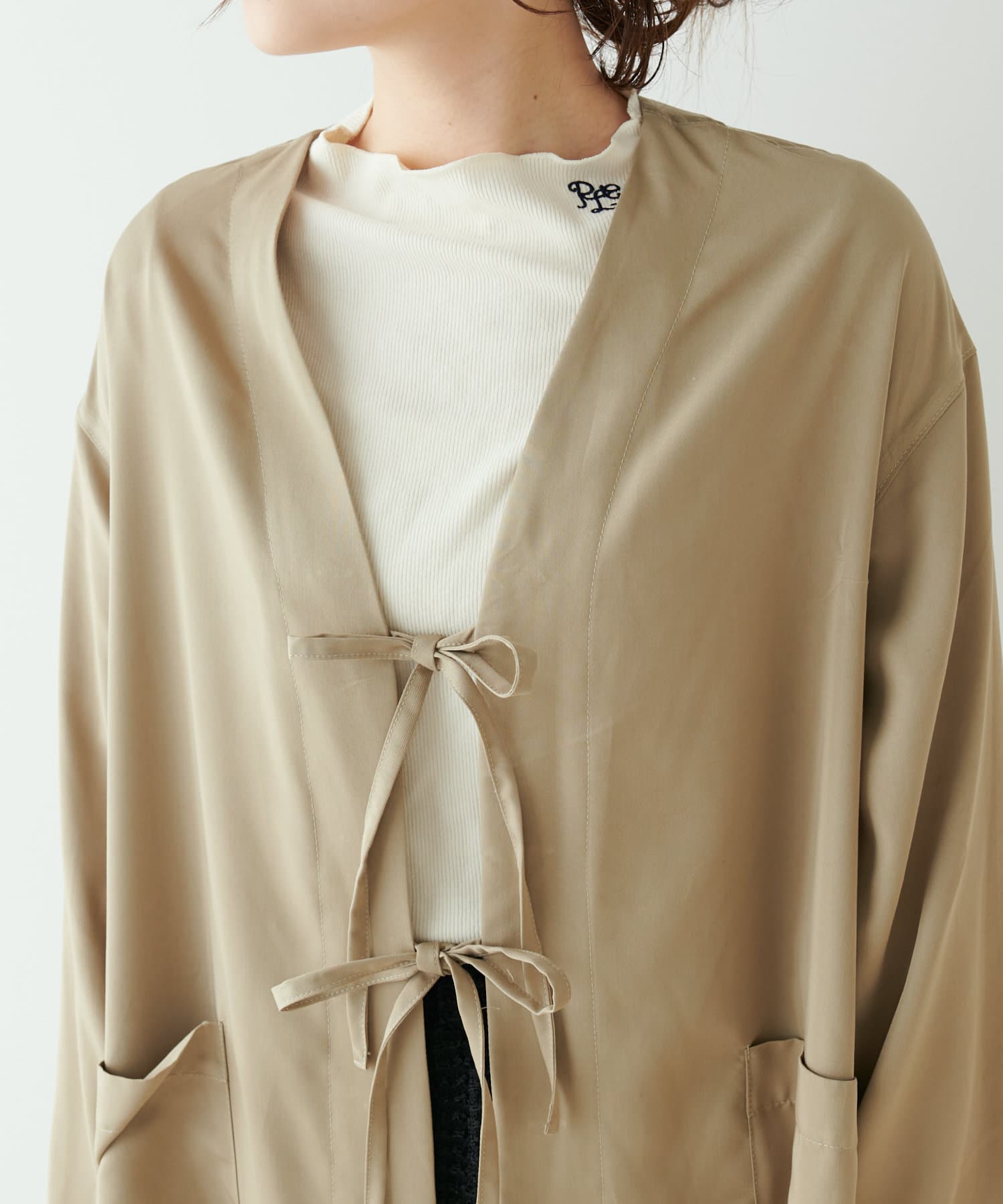 前を開けて着た時には、ライナーのリボンが見え、レイヤードスタイルが楽しめます。