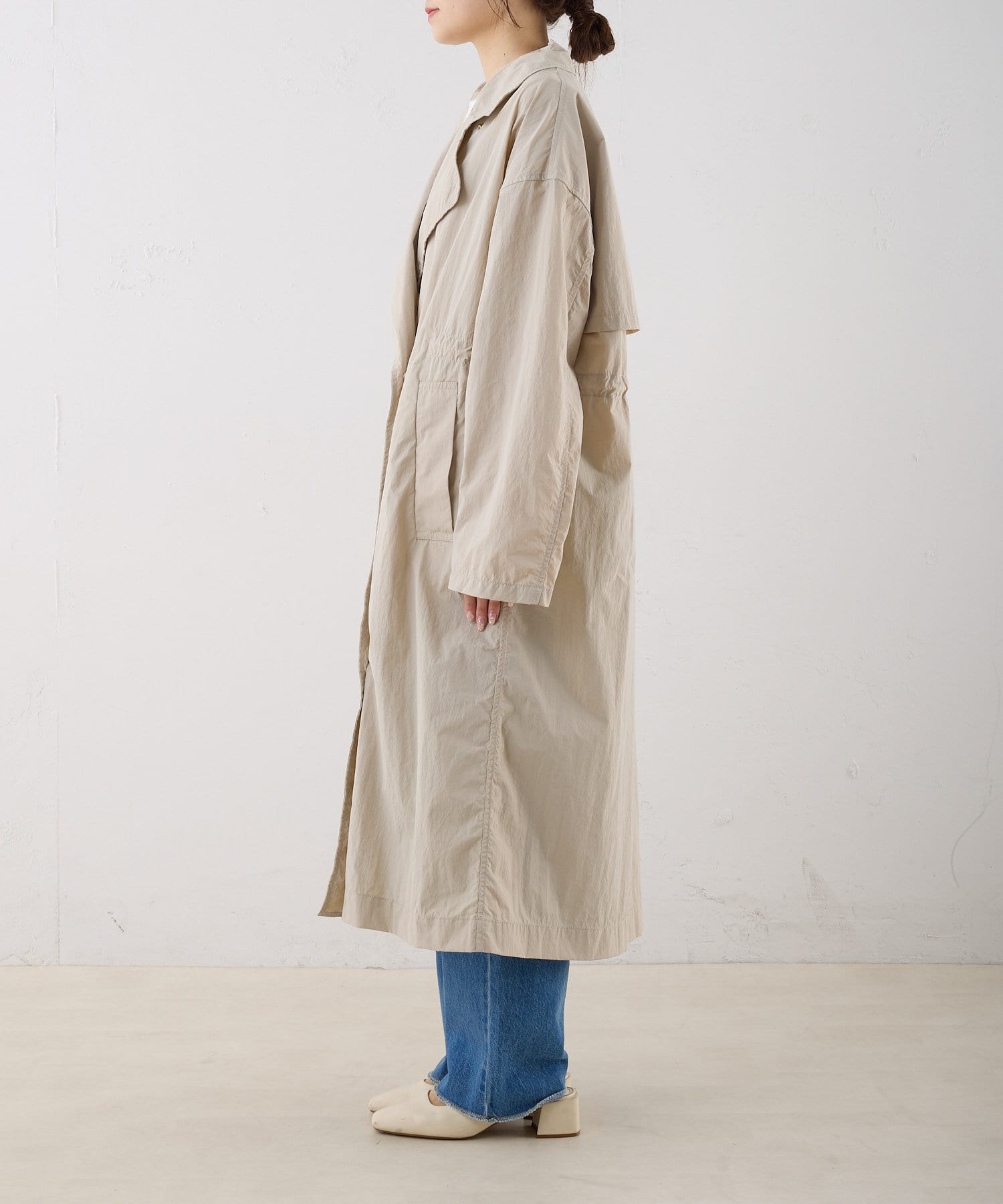 撥水加工されたナイロン生地を使用したカジュアルからキレイめにも馴染むチェスター型のナイロンコートの登場です。