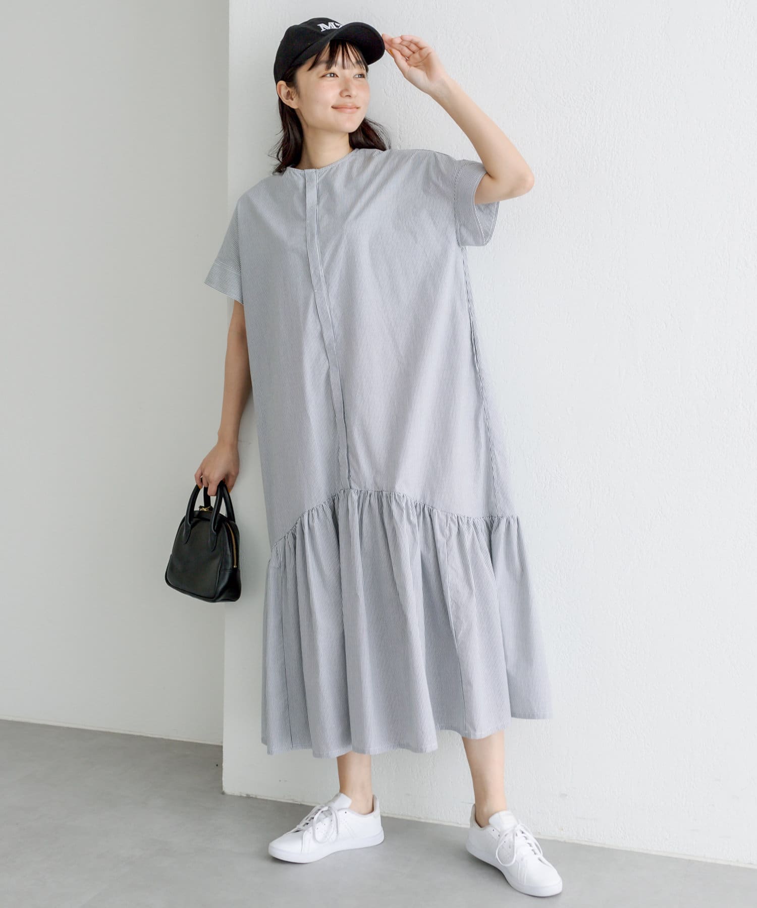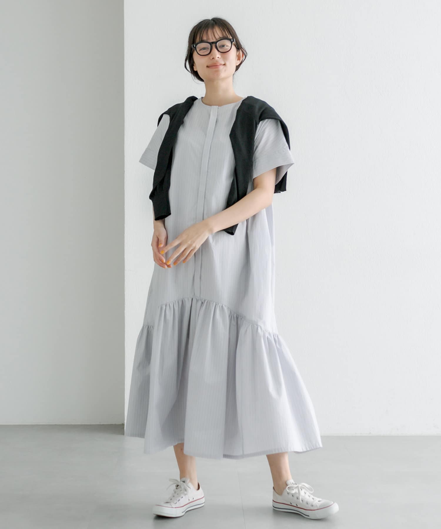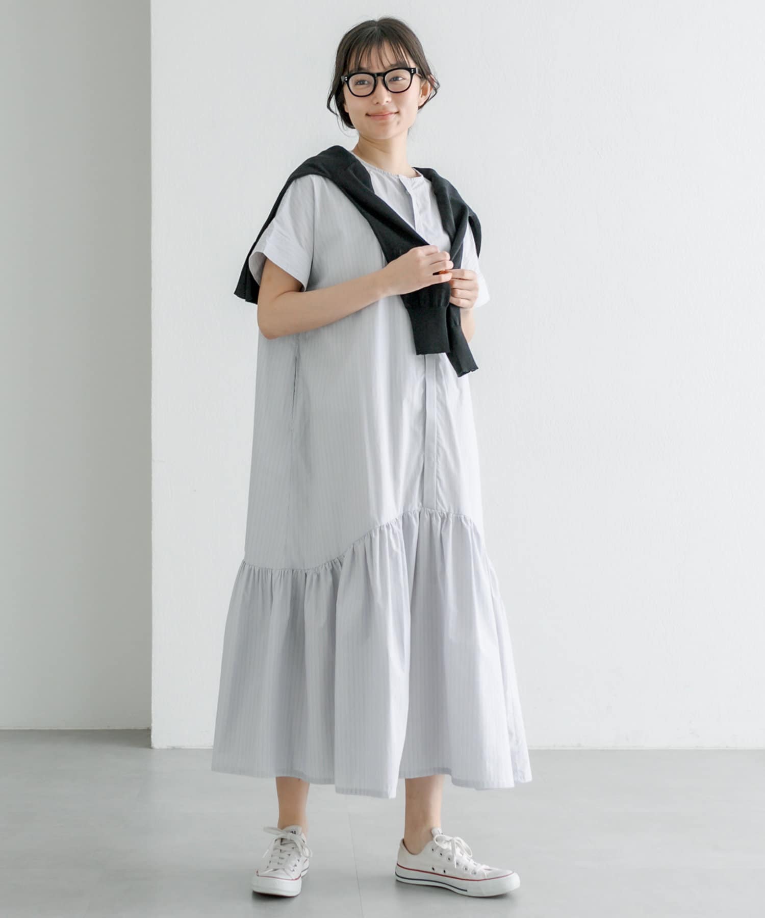 春先はカーディガンや軽アウター合わせで、夏は一枚で主役になるワンピースです。