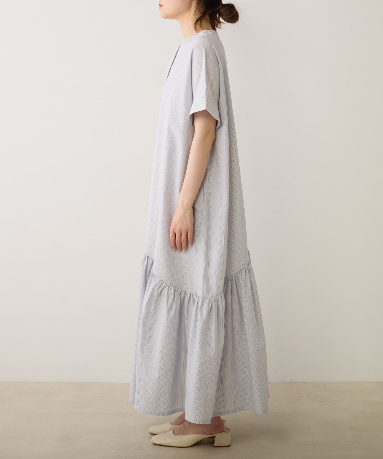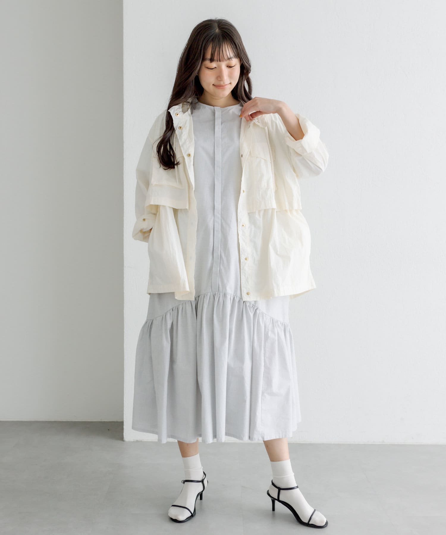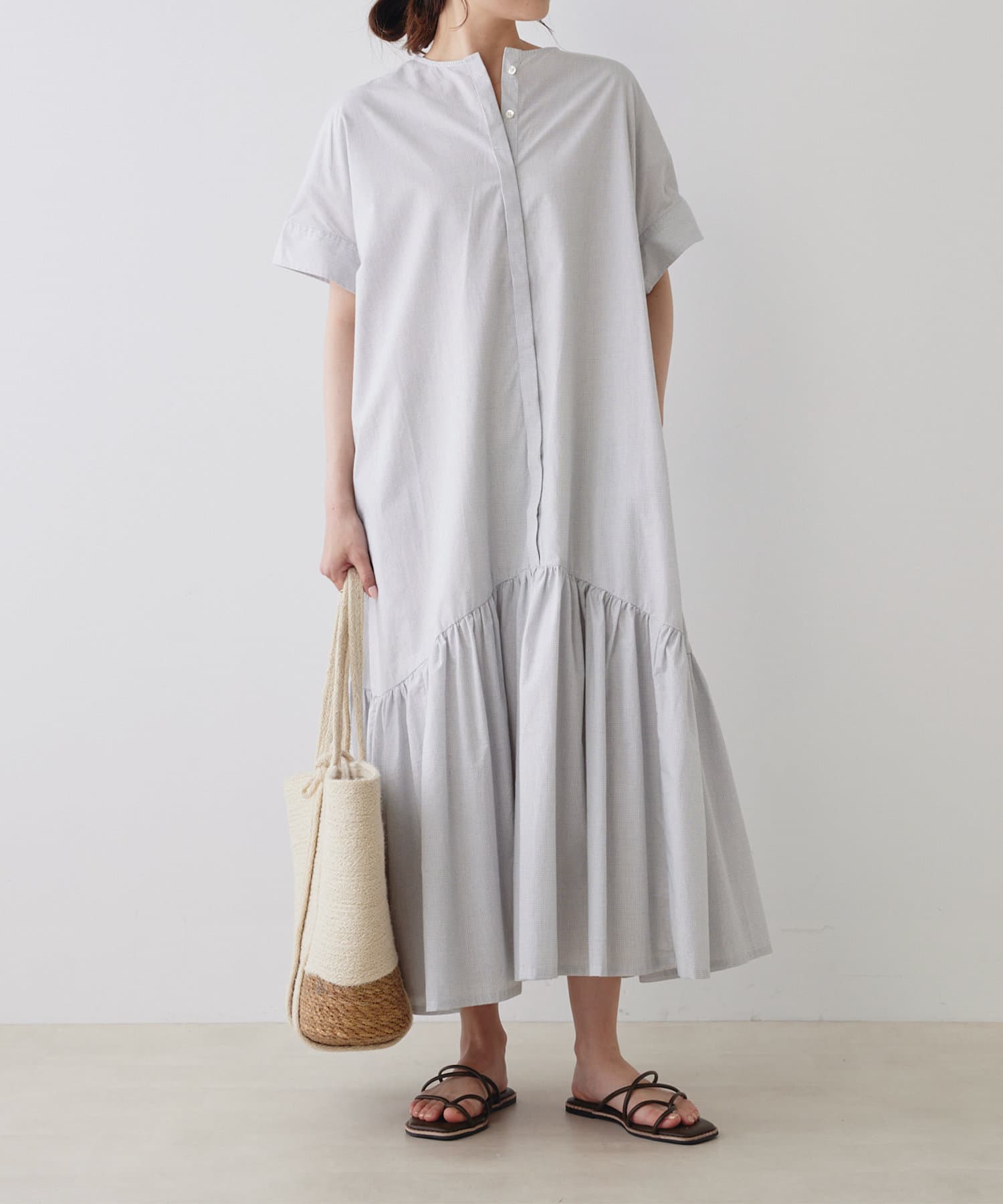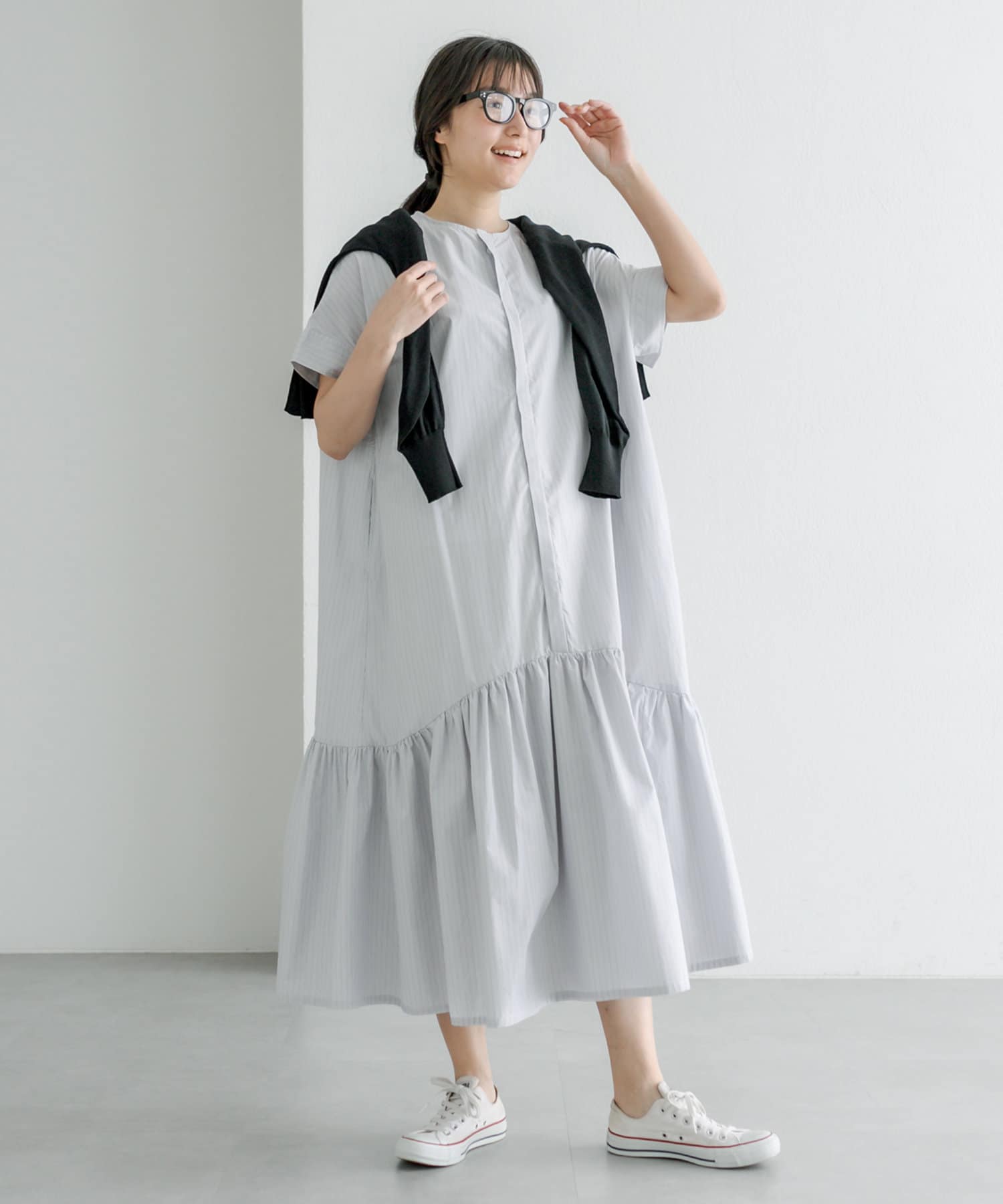 春先はカーディガンや軽アウター合わせで、夏は一枚で主役になるワンピースです。