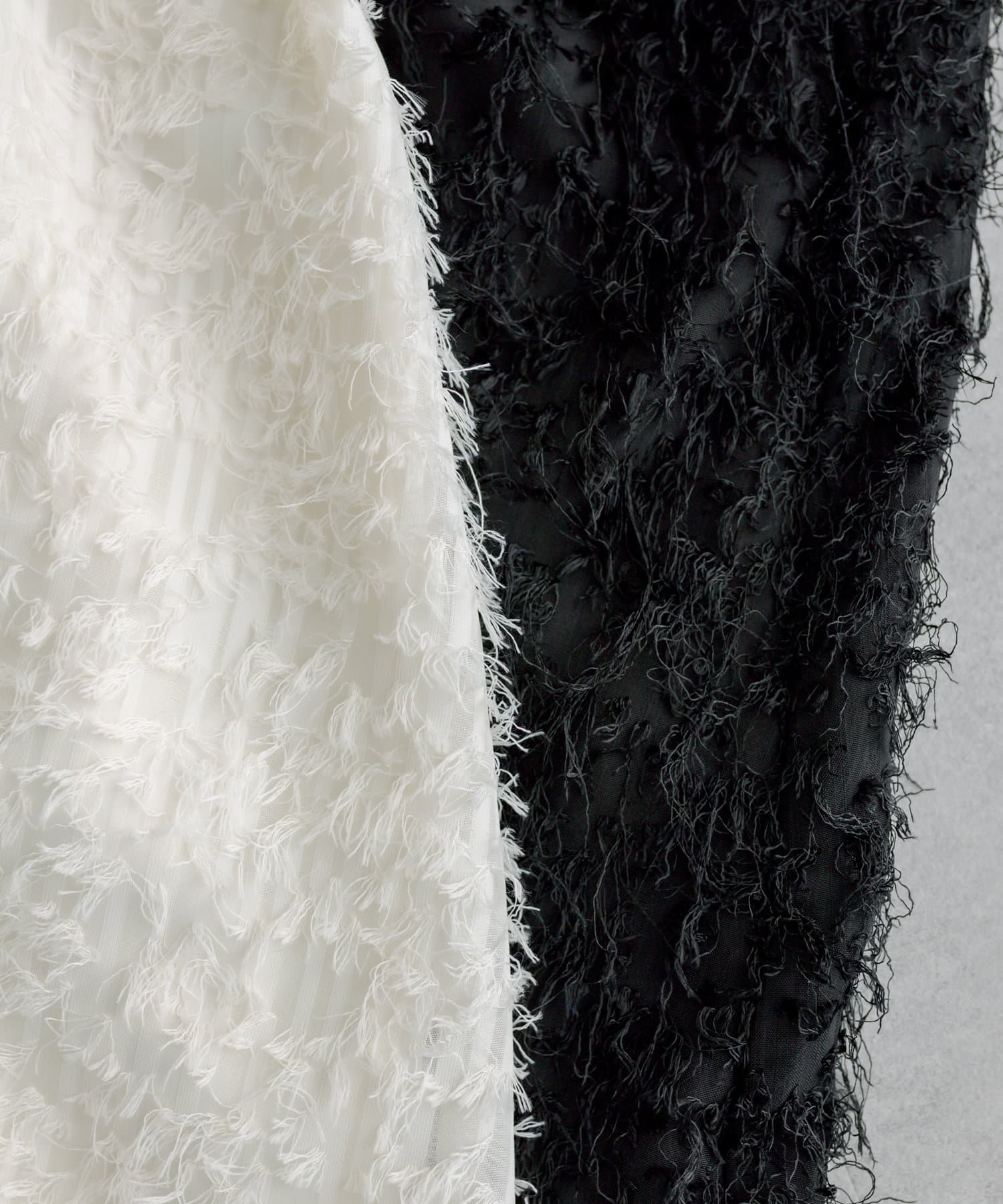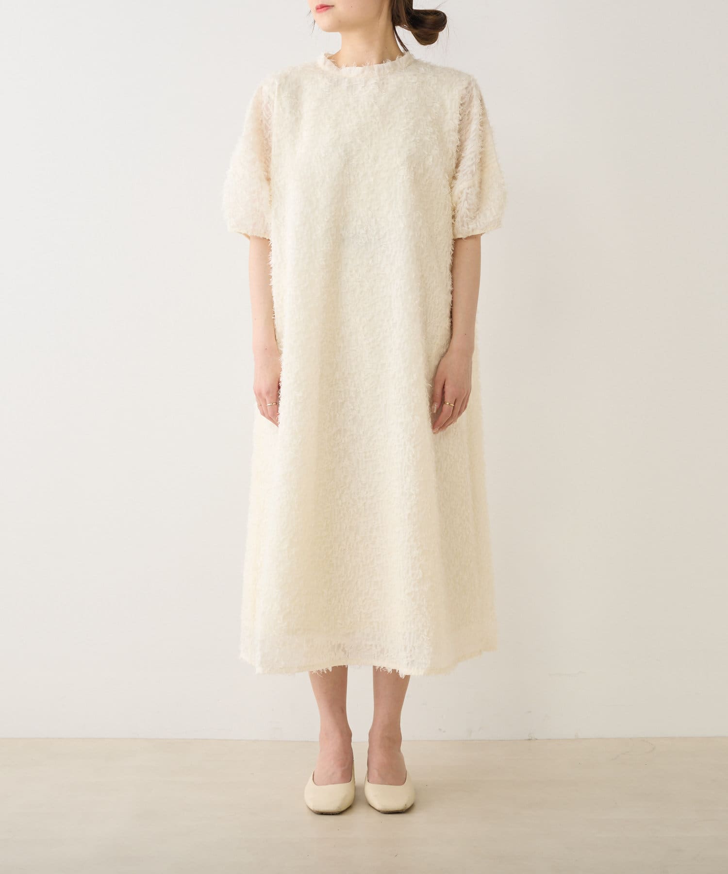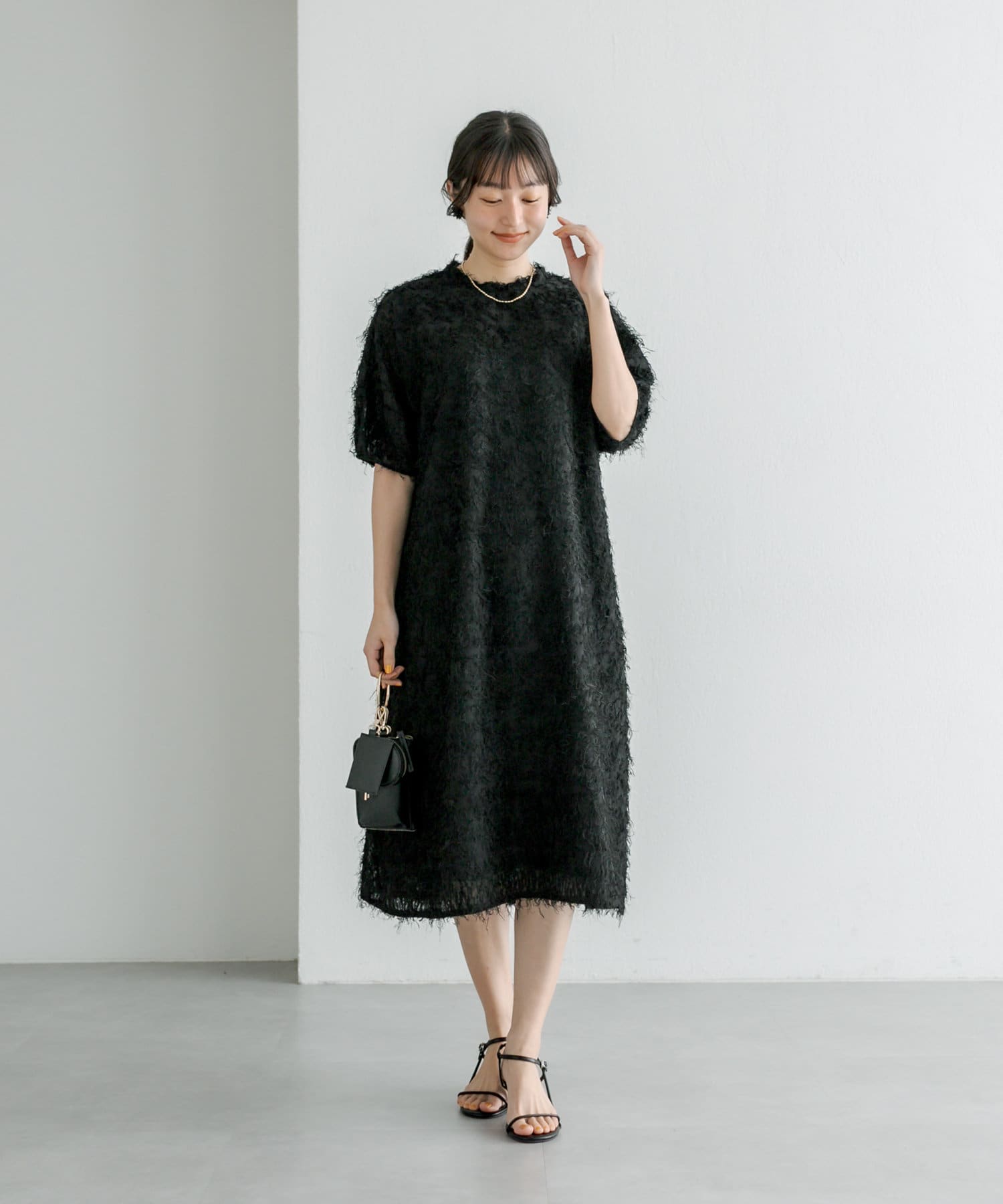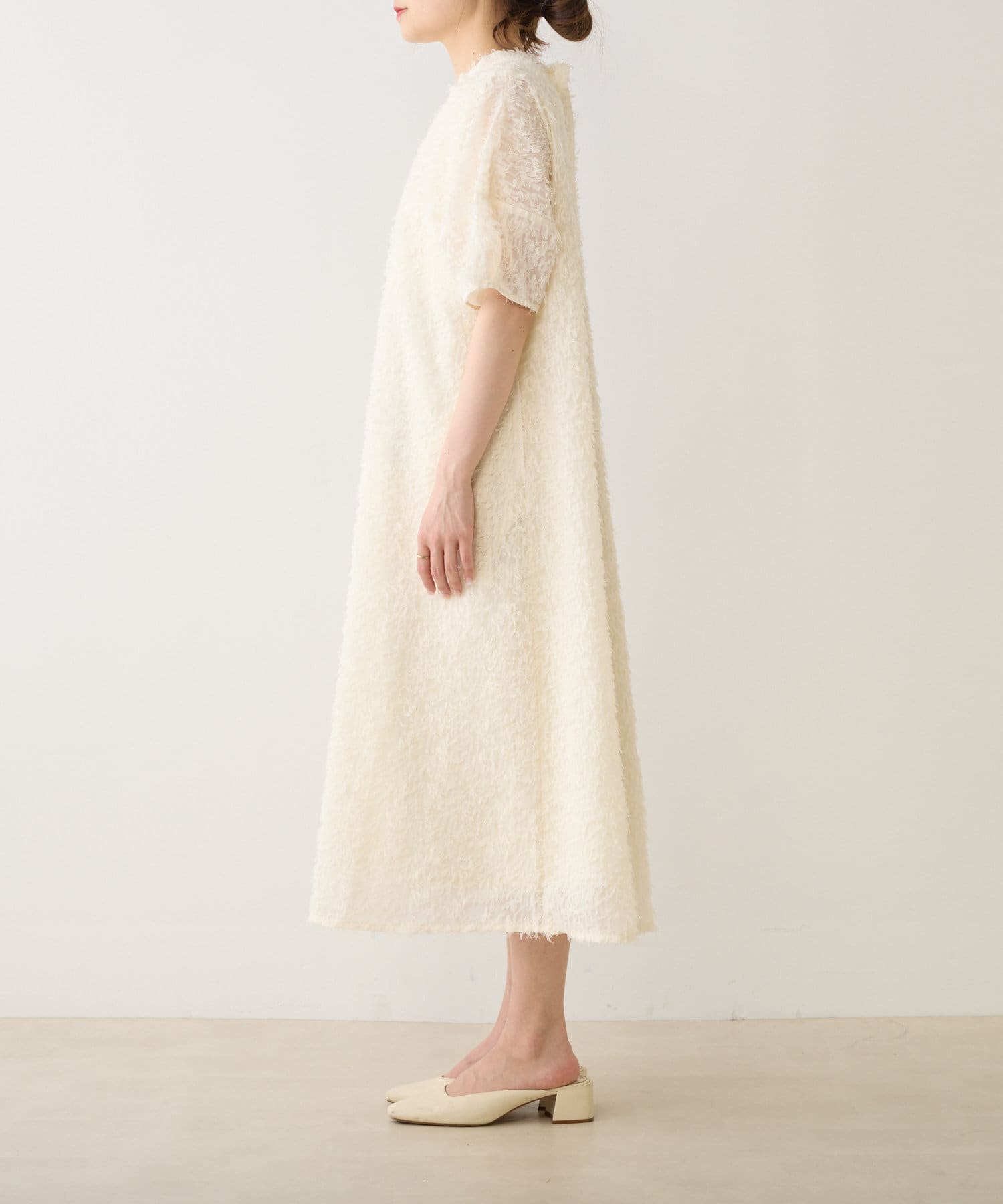 ふわふわとしたフリンジが華やかな印象のジャガードワンピース。
