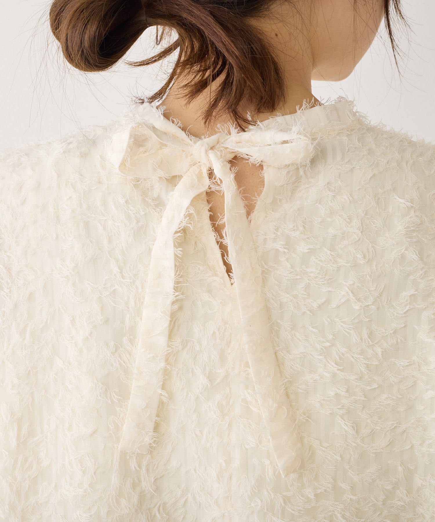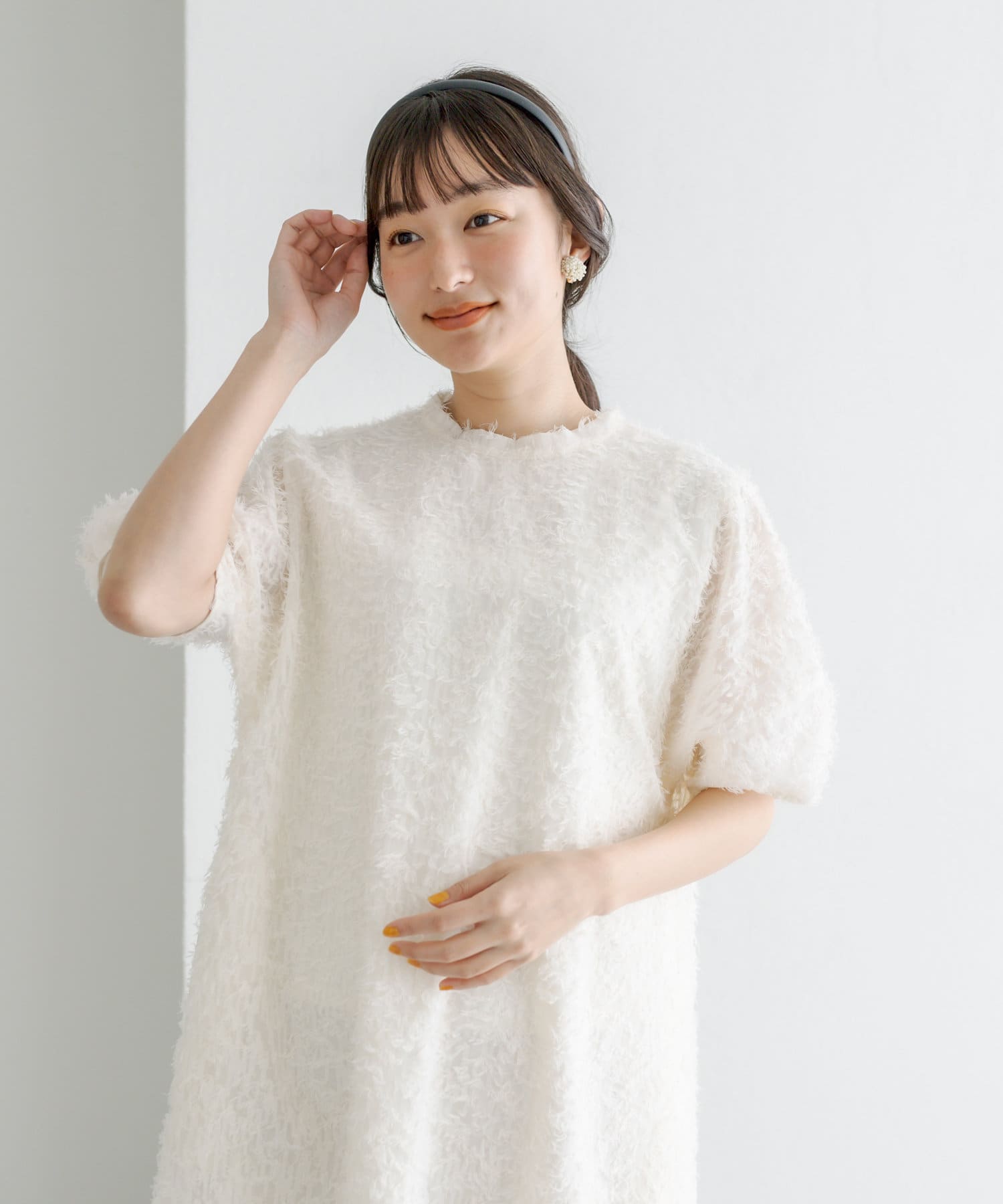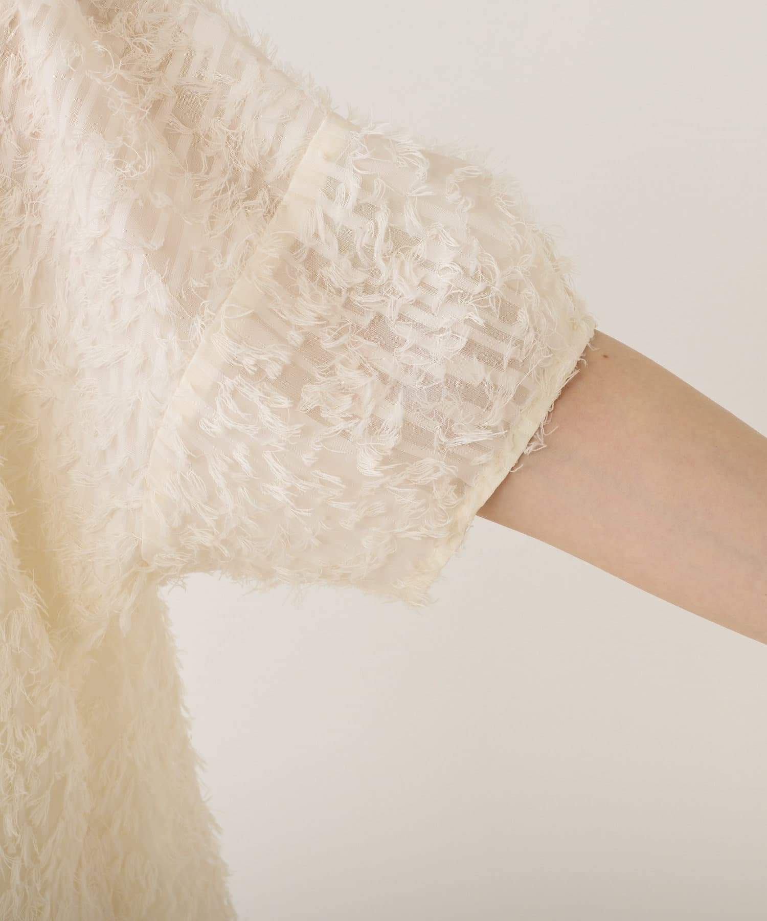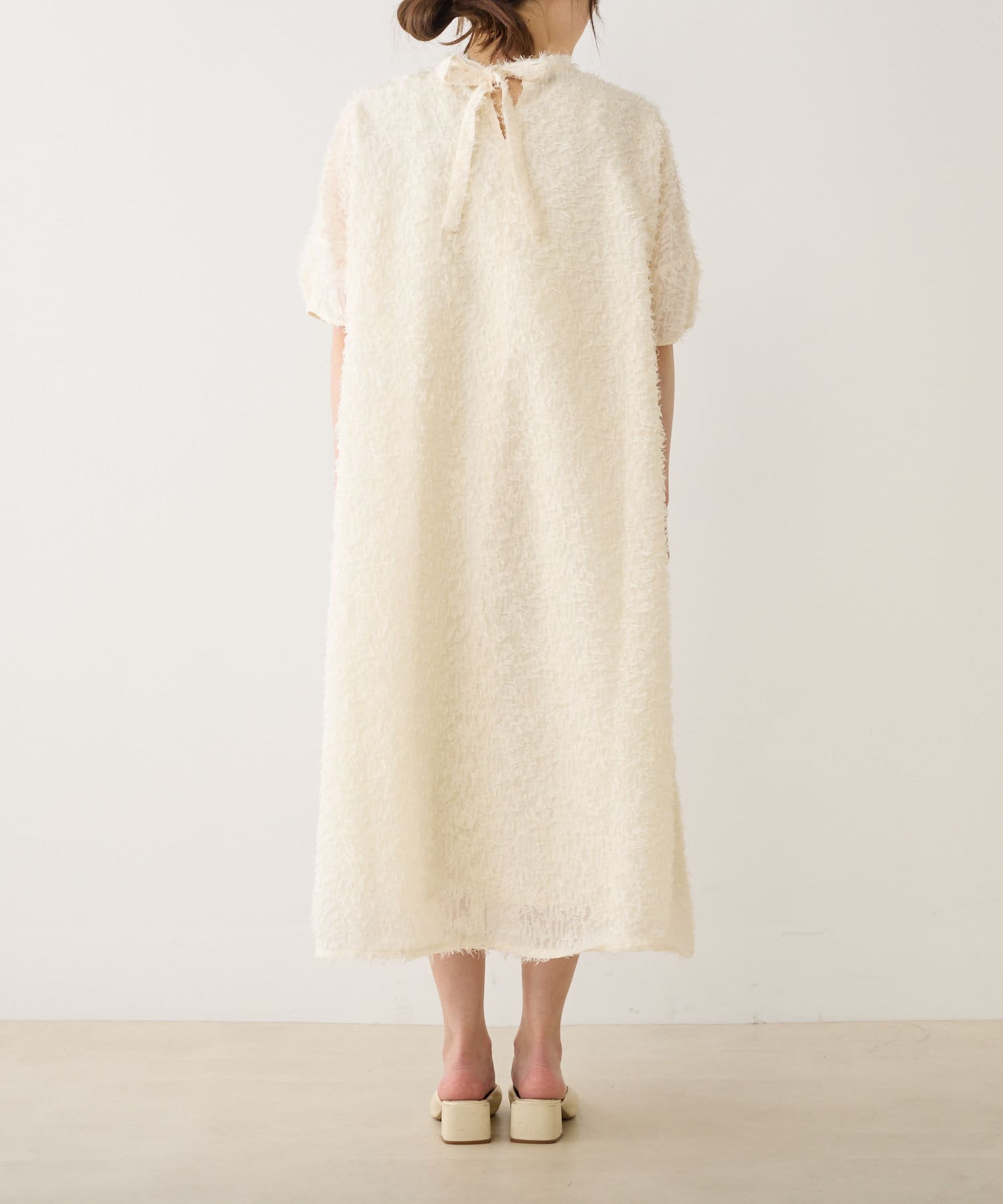 ふわふわとしたフリンジが華やかな印象のジャガードワンピース。