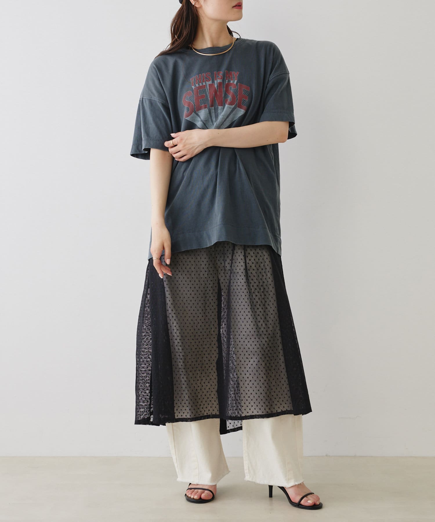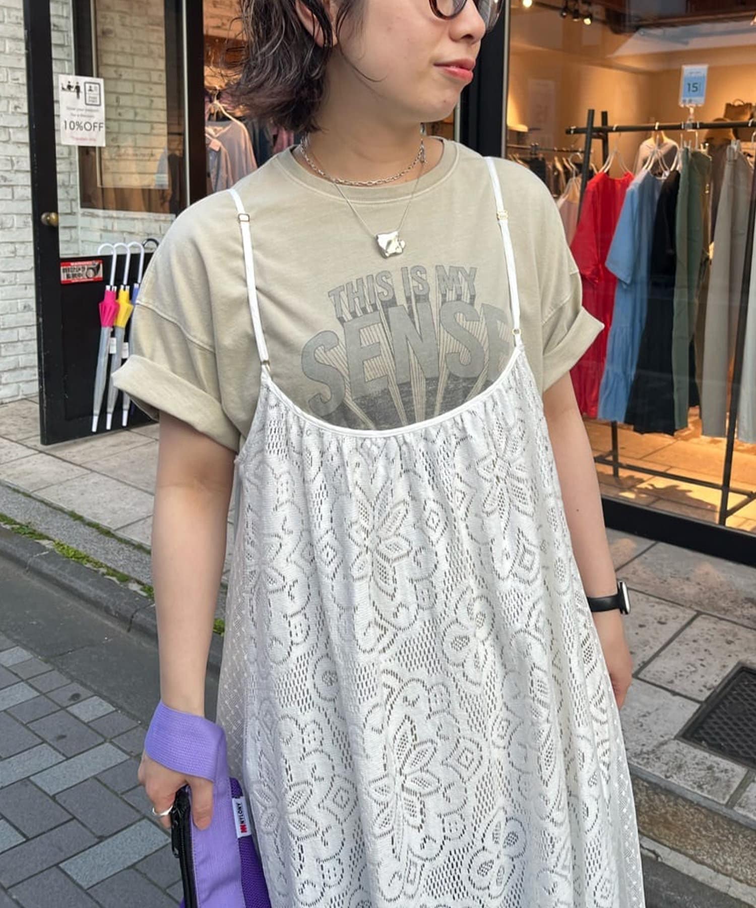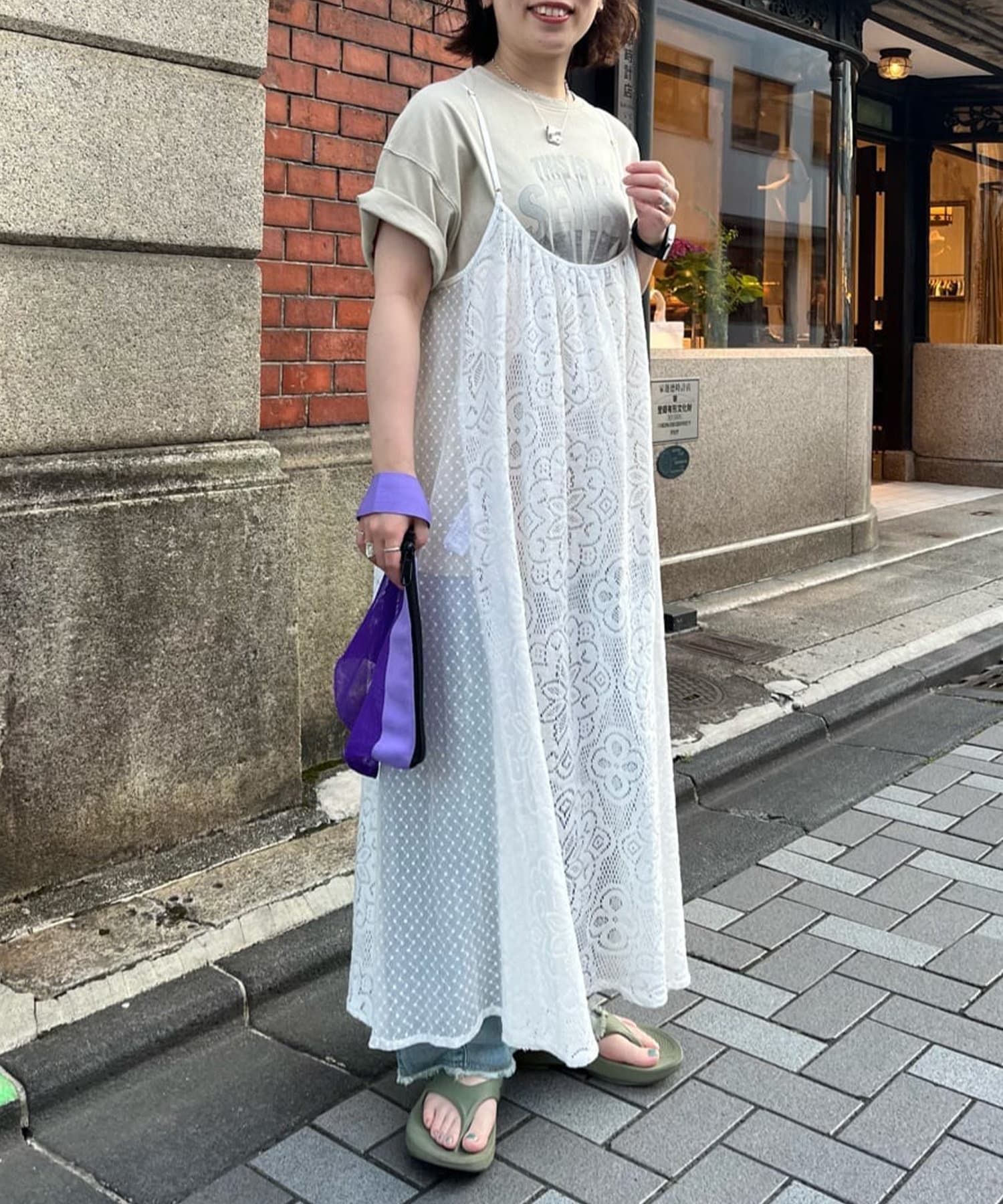 トップスをあえて上に重ねてドッキングワンピースのような着こなしもオススメです。