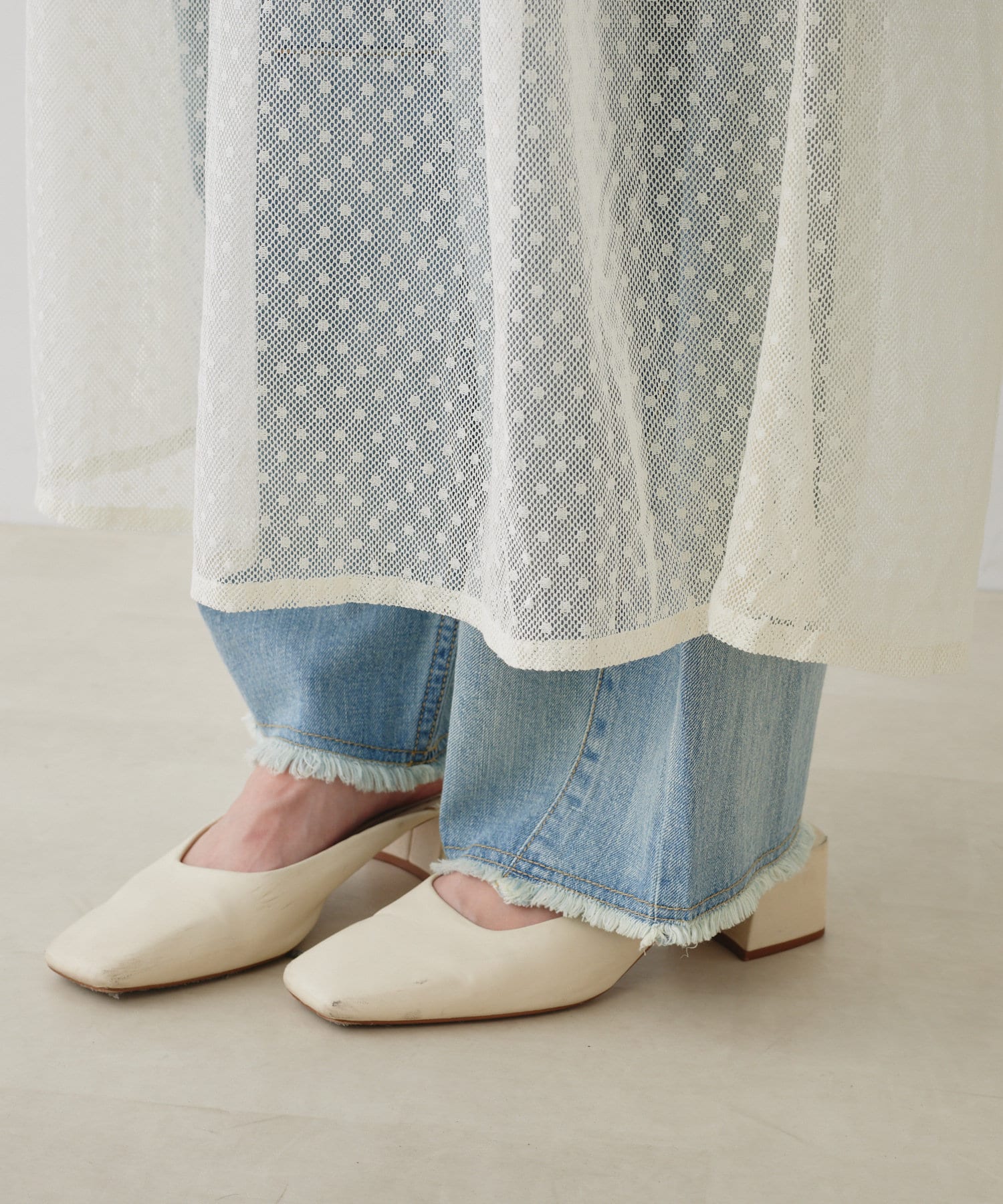 軽やかな素材感で動くたびにふんわりと広がり、女性らしさを底上げします。