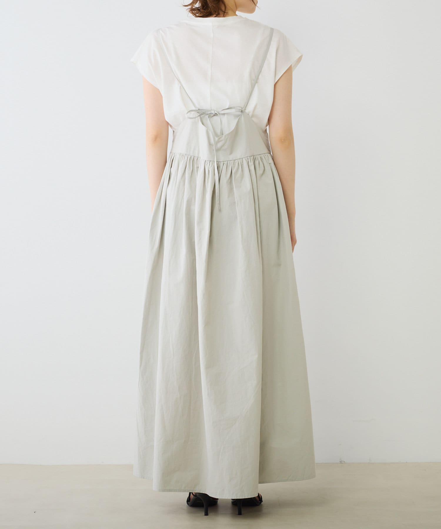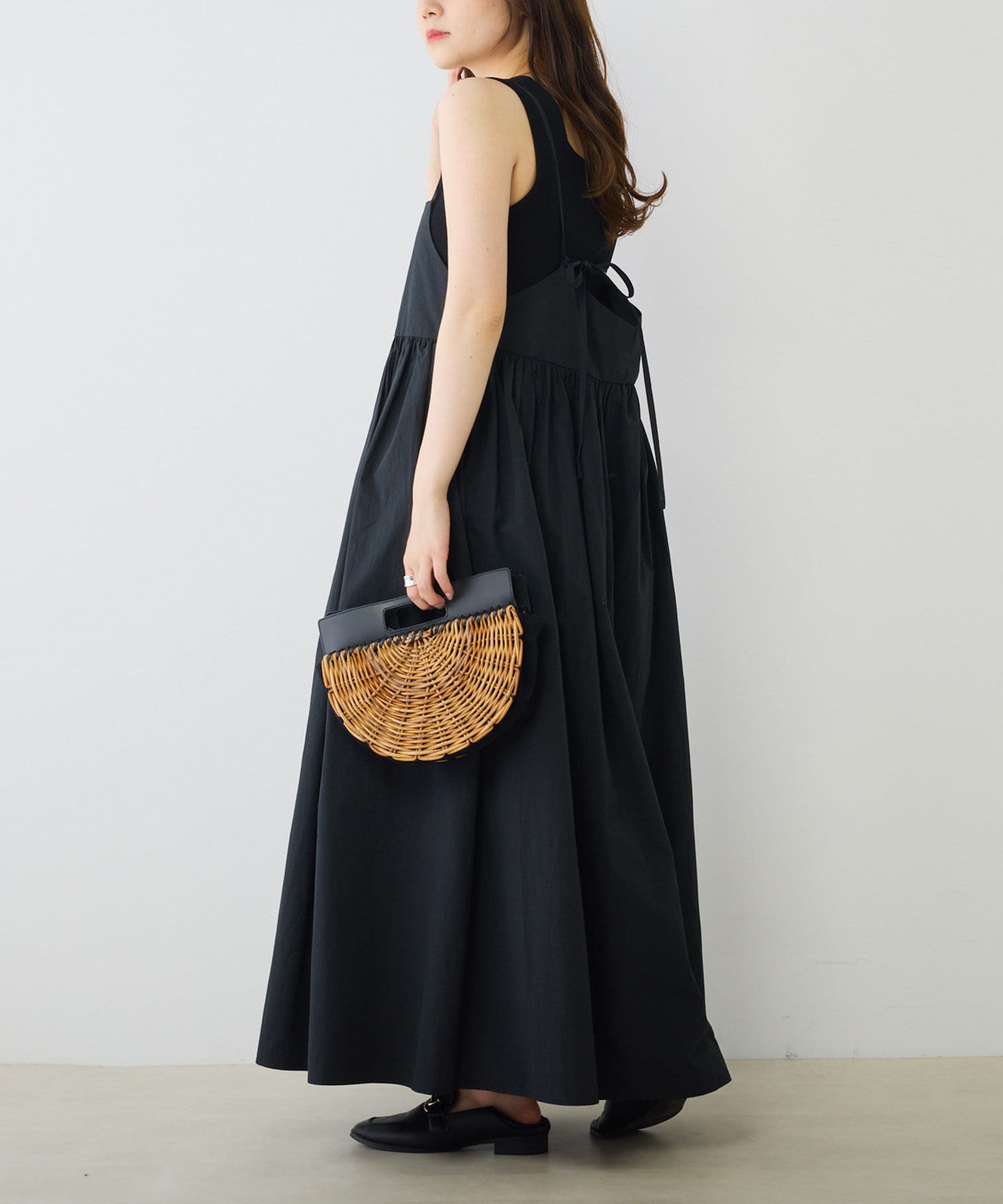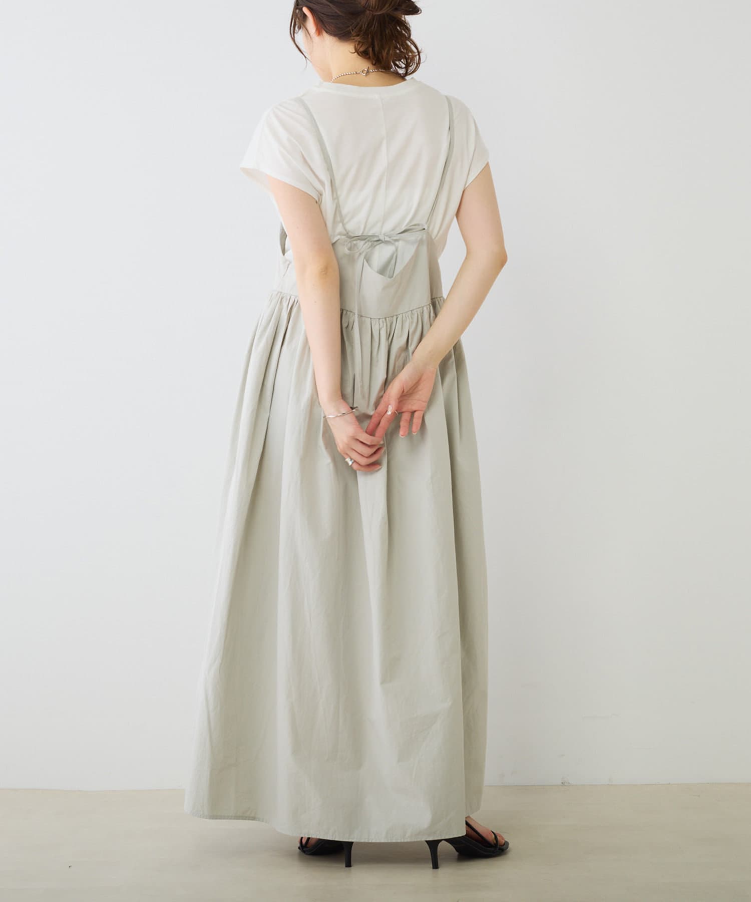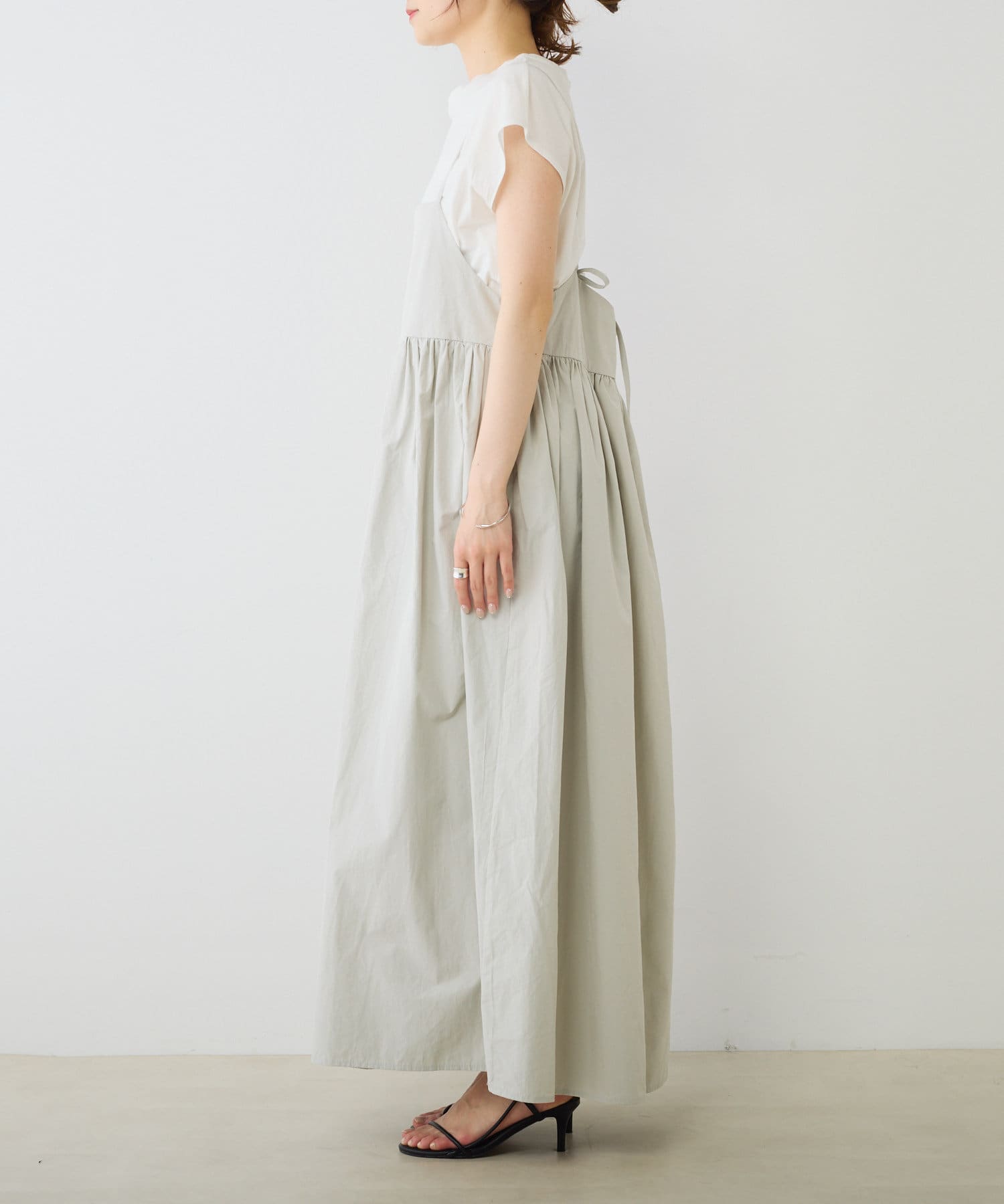 着丈は肩紐で調節でき、身長問わず着用いただけます。