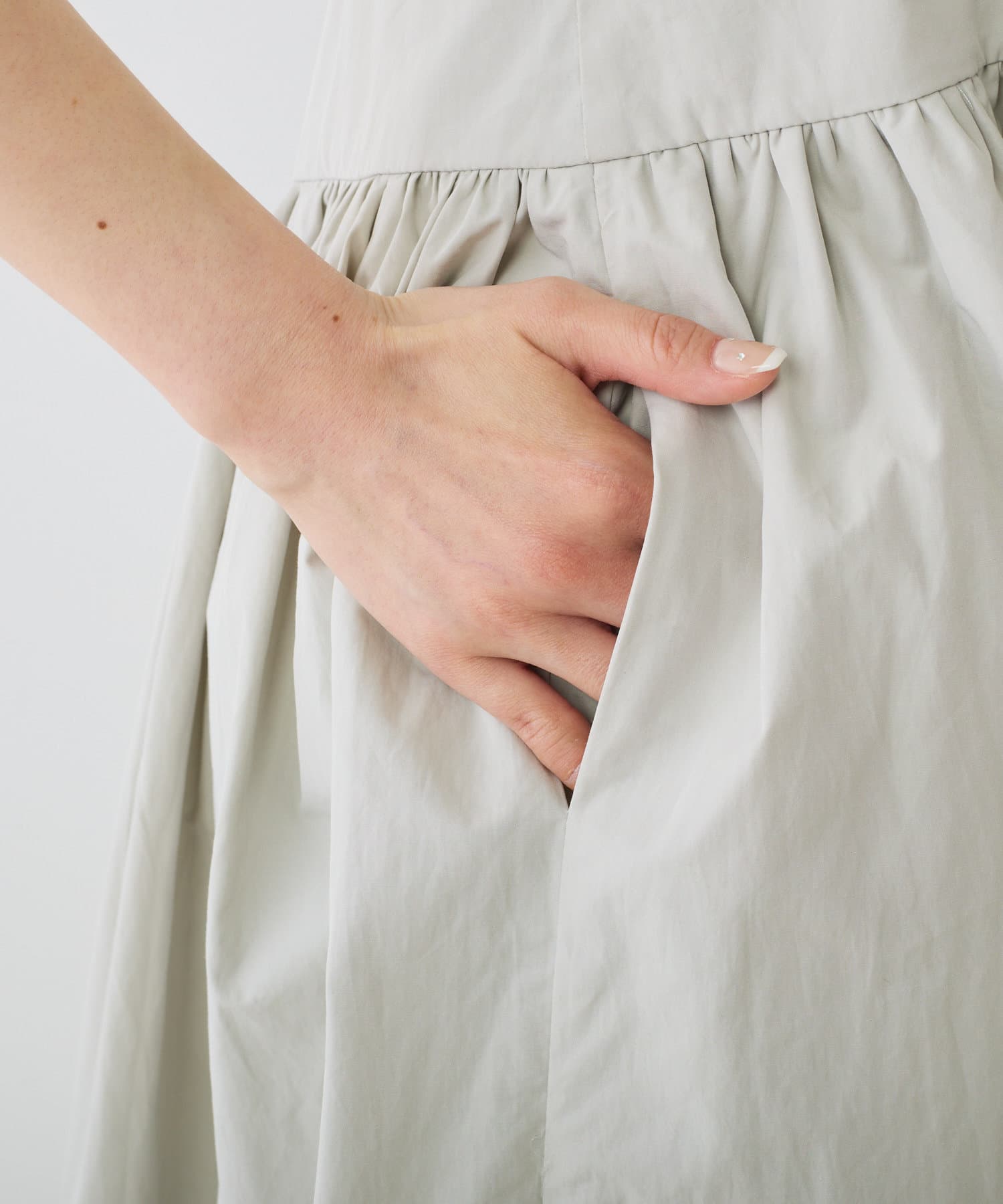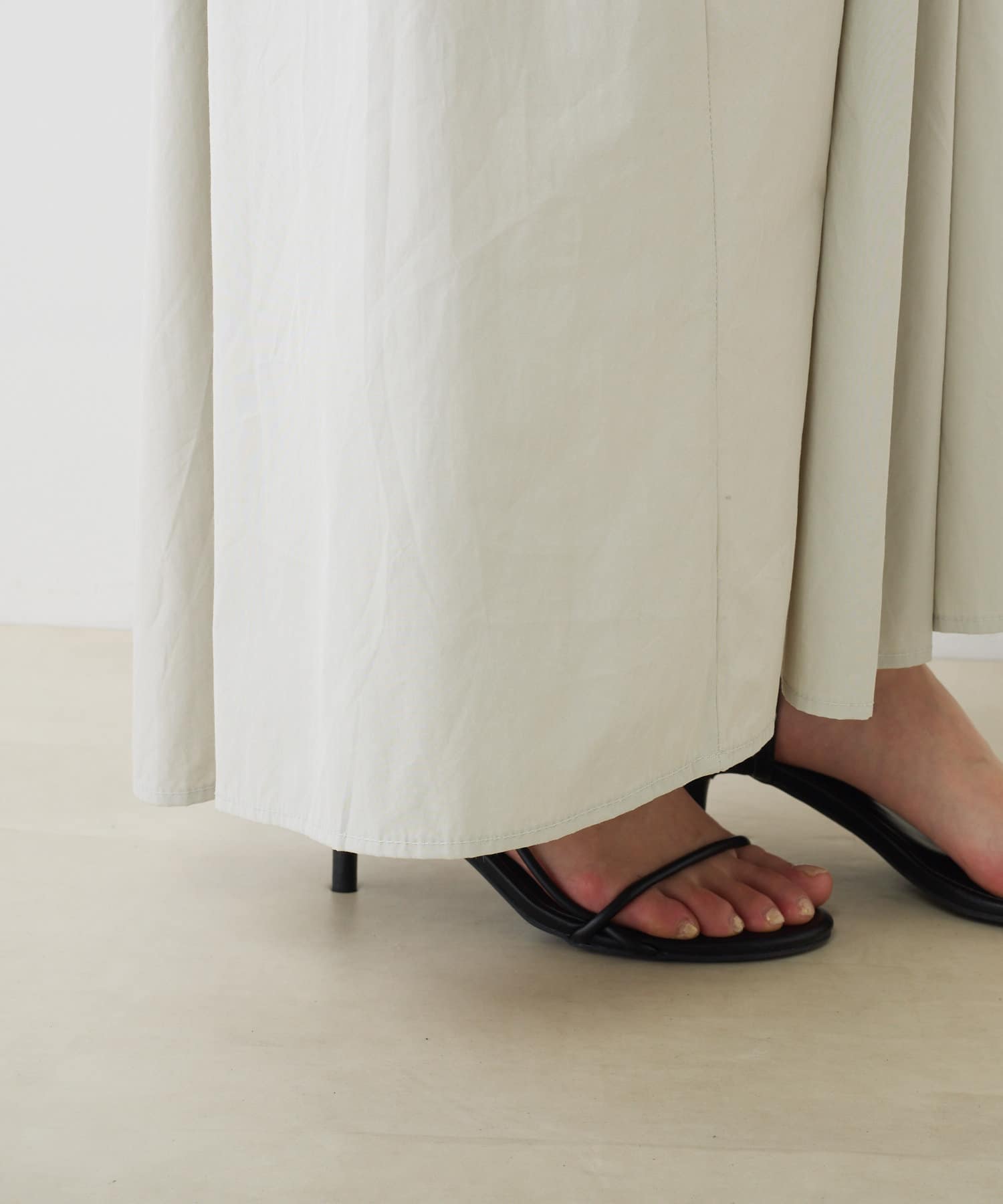 フレアなシルエットで甘さがありながらも、ハリのあるコットンナイロン素材を使用しているので