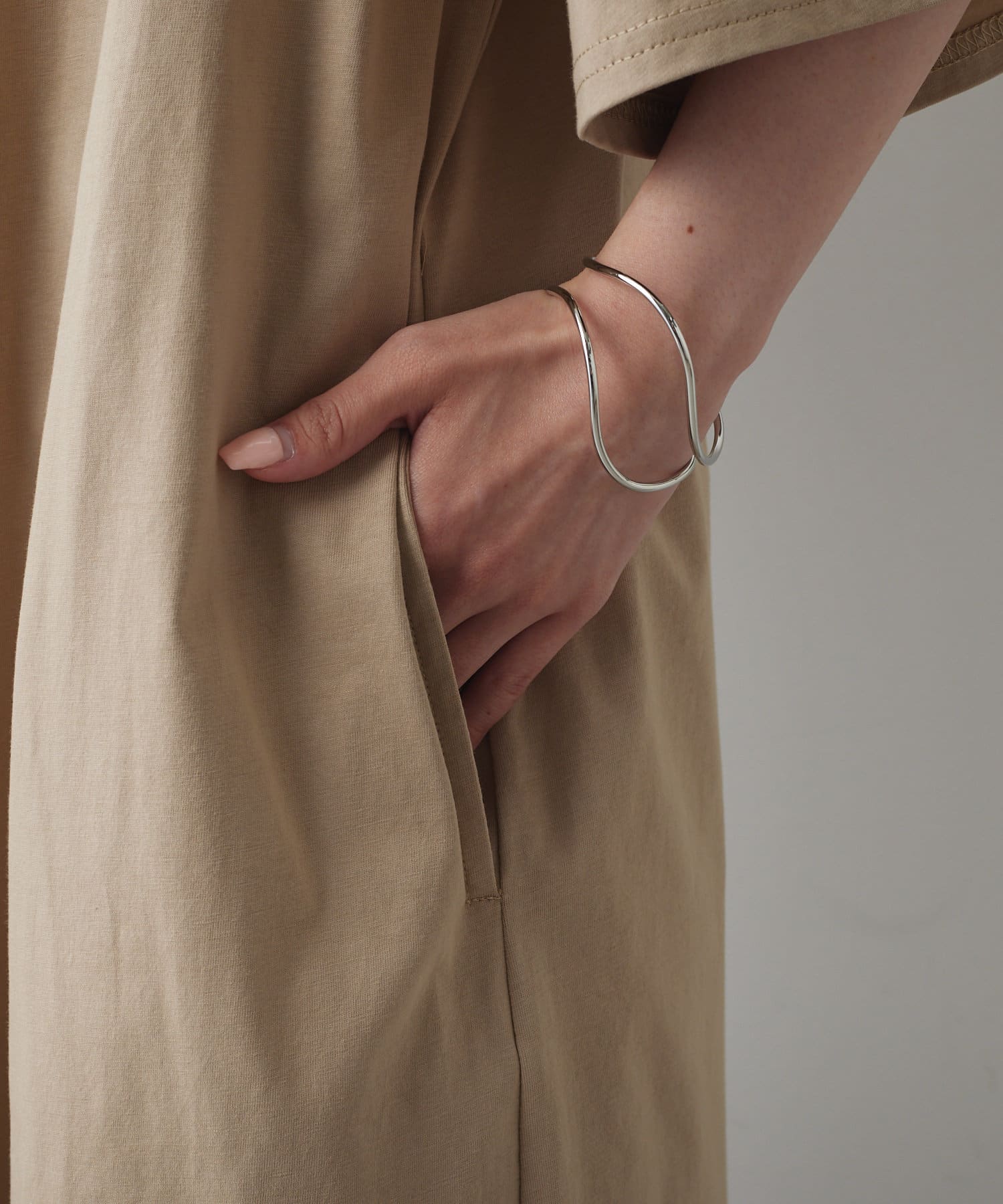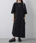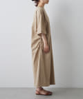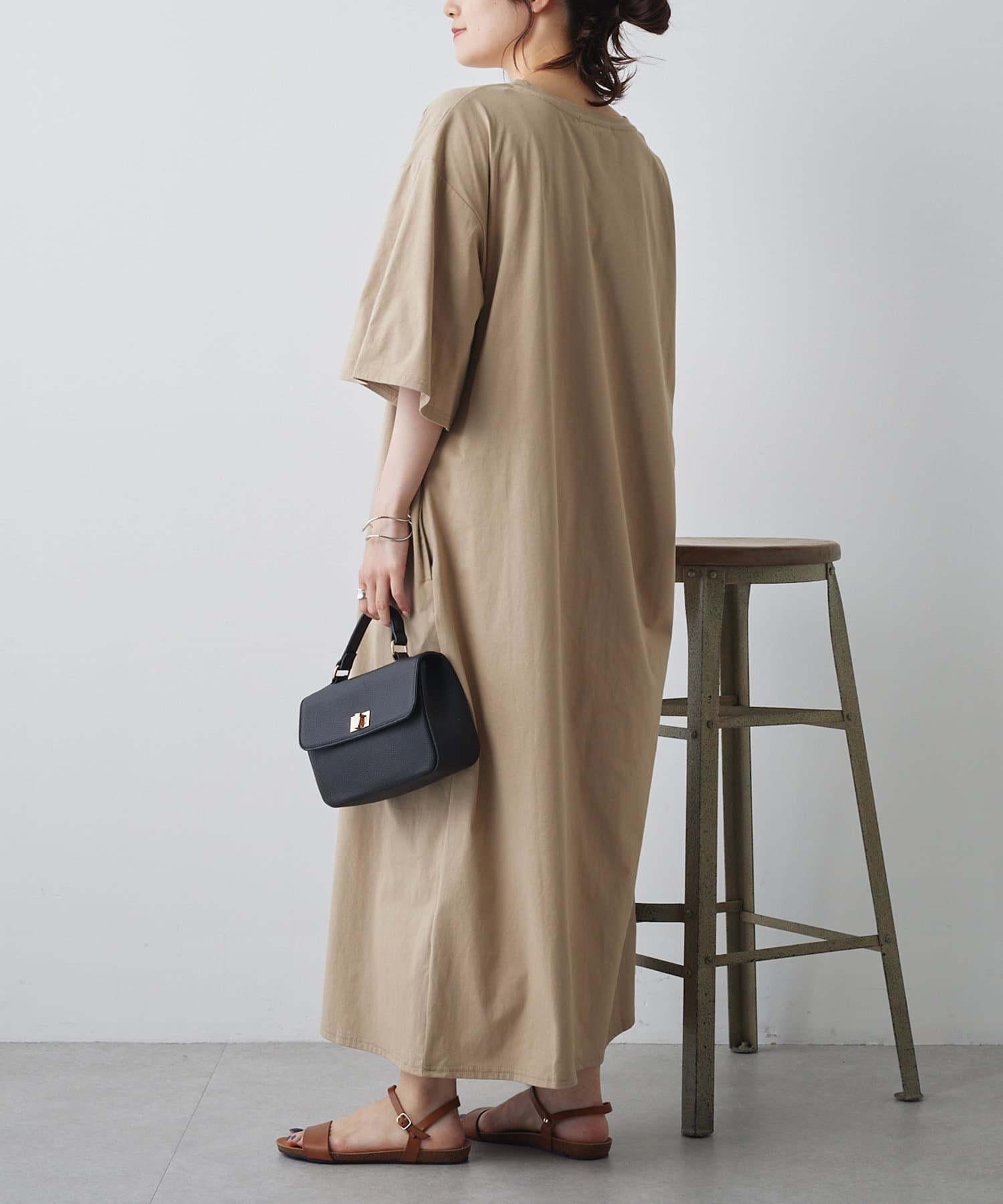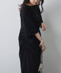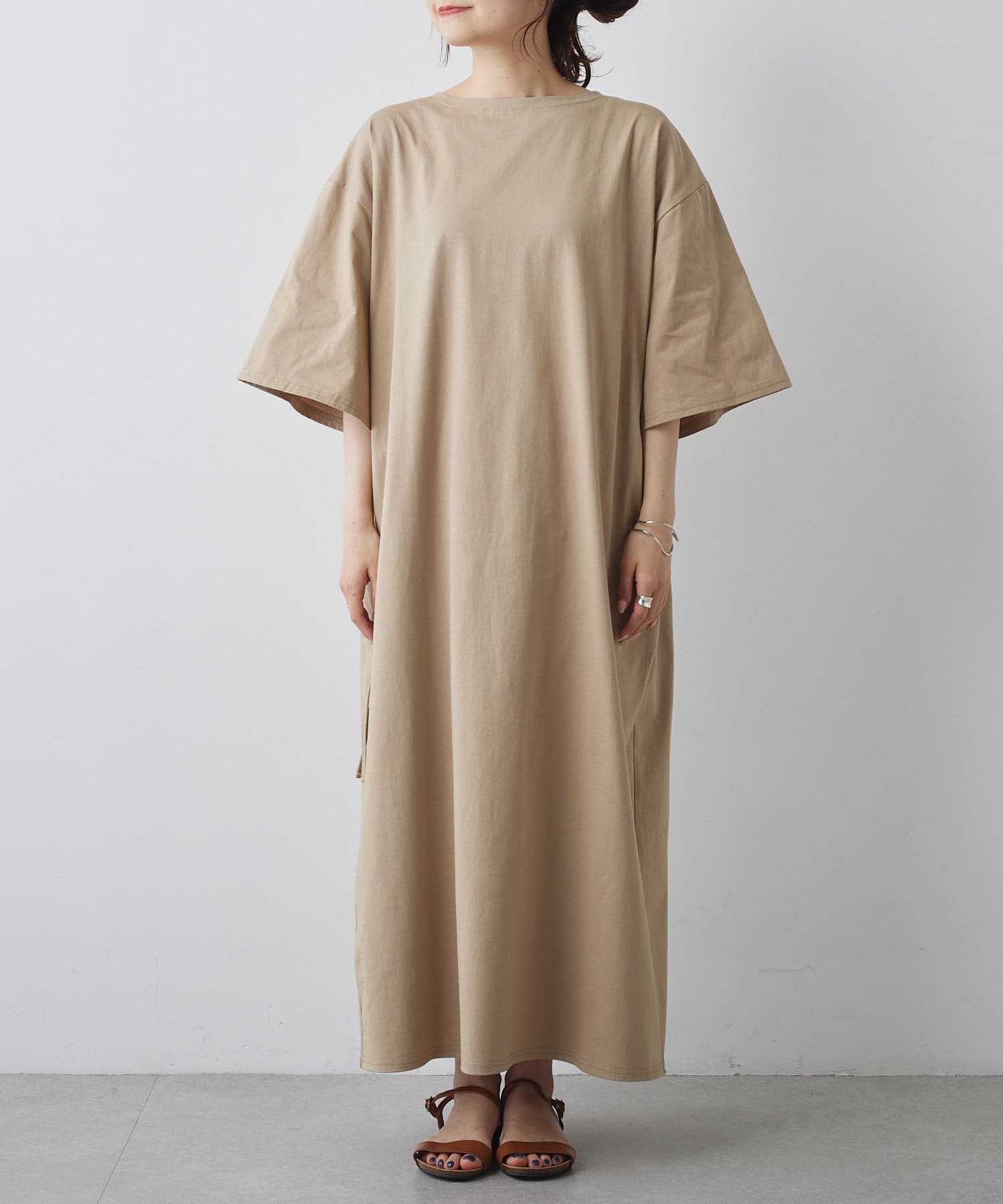 一見シンプルなワンピースに、アジャストデザインがワンポイントになった一枚。