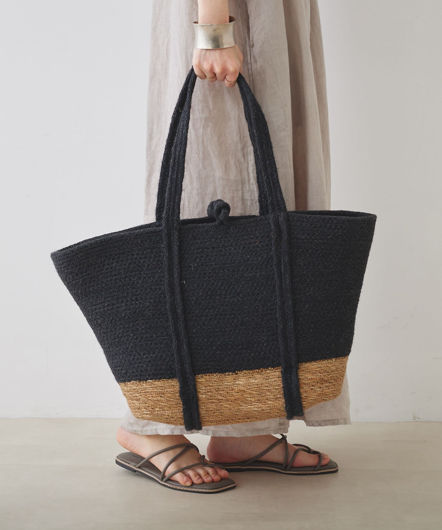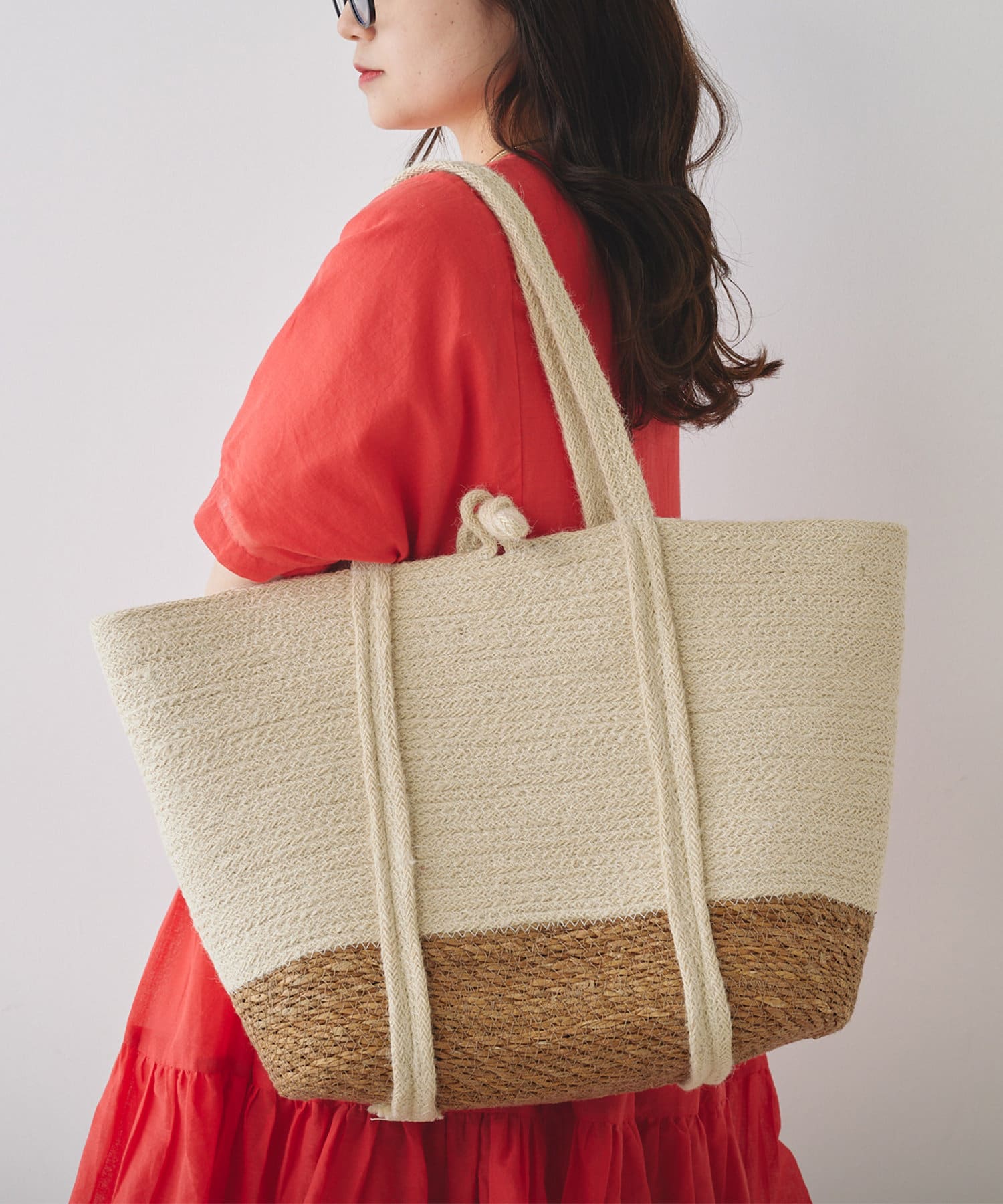 夏のコーディネートにプラスしたいジュートバッグ。