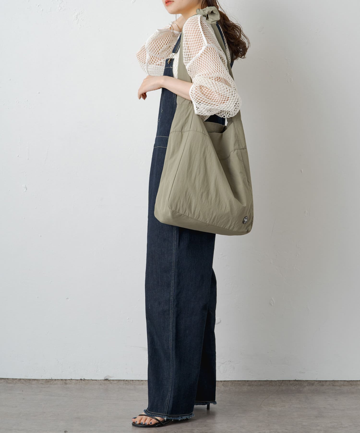 シャカシャカとした柔らかい素材感で、シワになりにくいのも嬉しいポイント◎