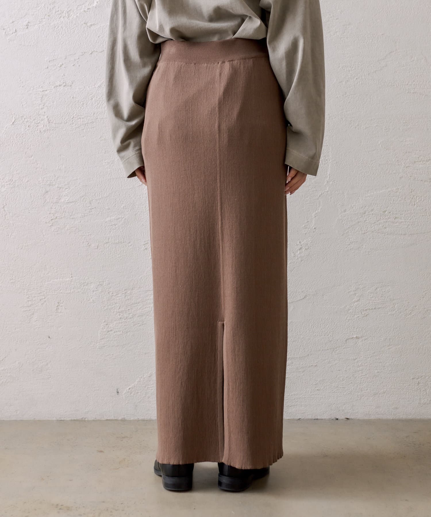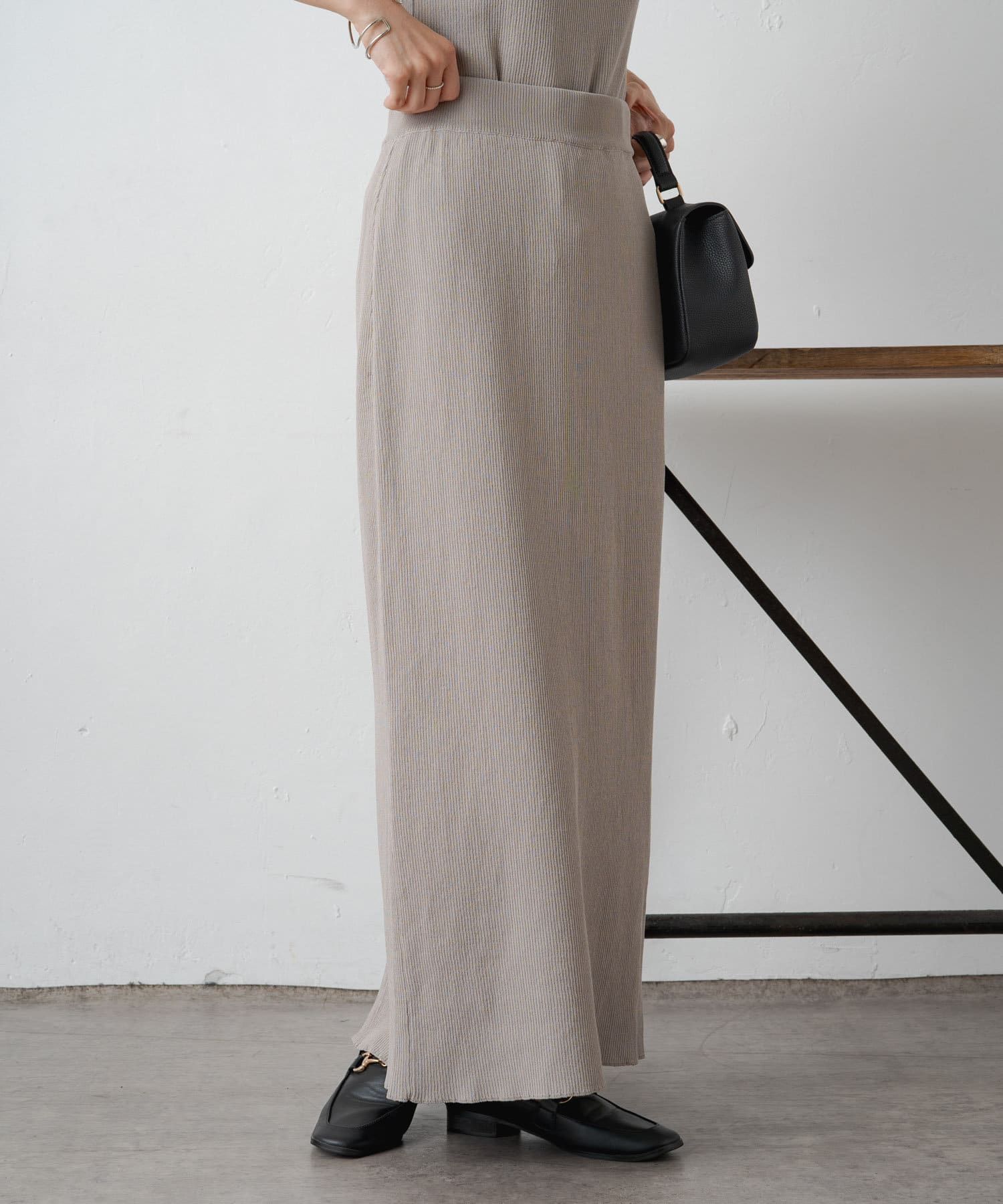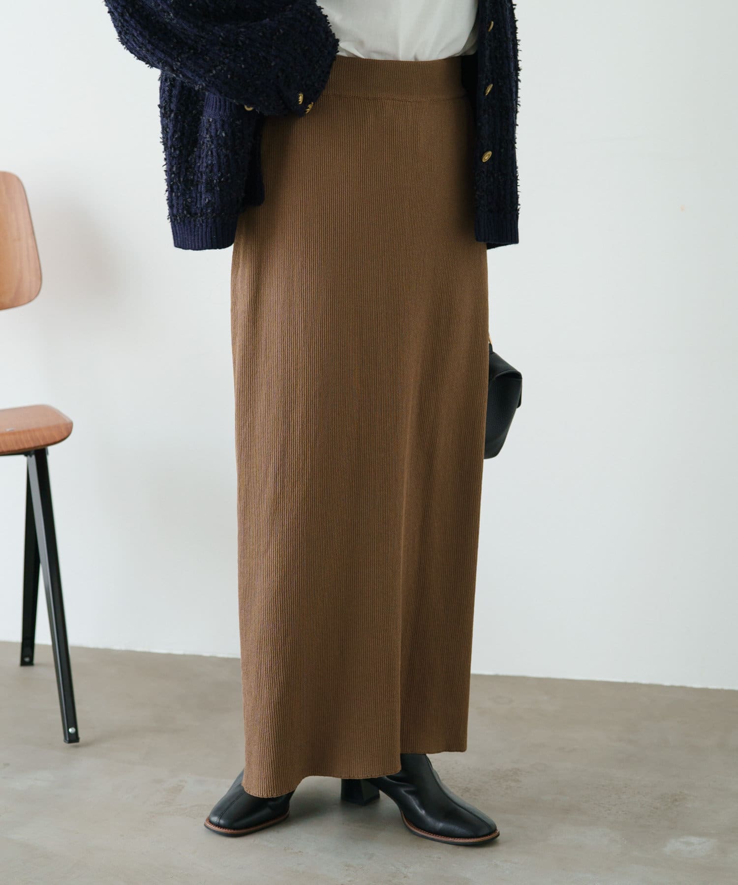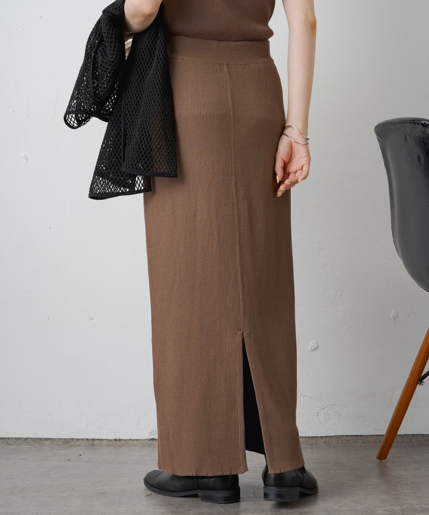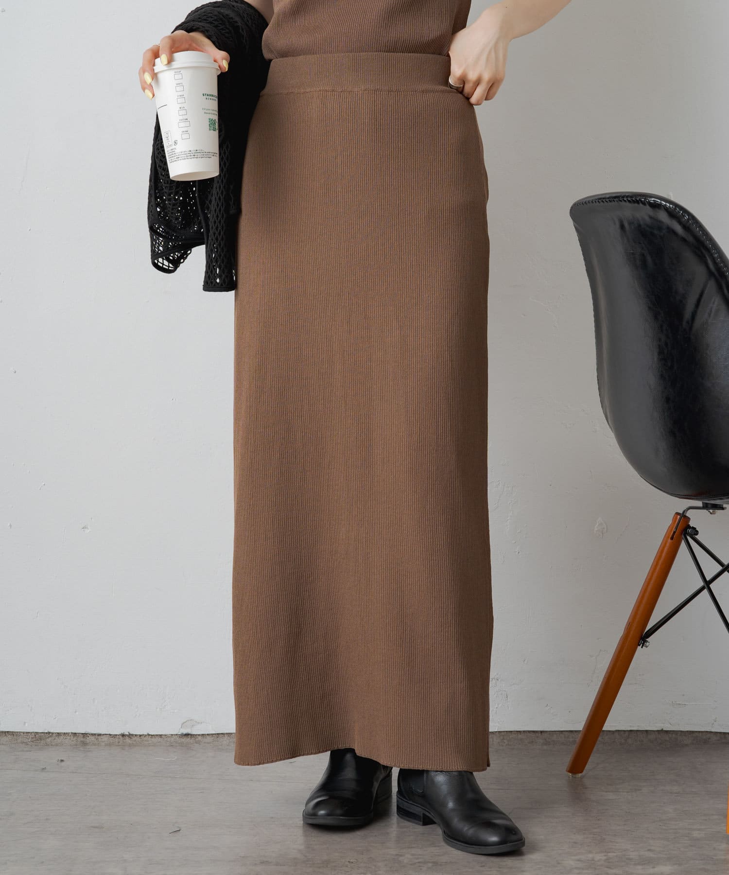 フィットしすぎず体のラインを拾いにくい絶妙なIラインシルエットが魅力のリブスカート。
