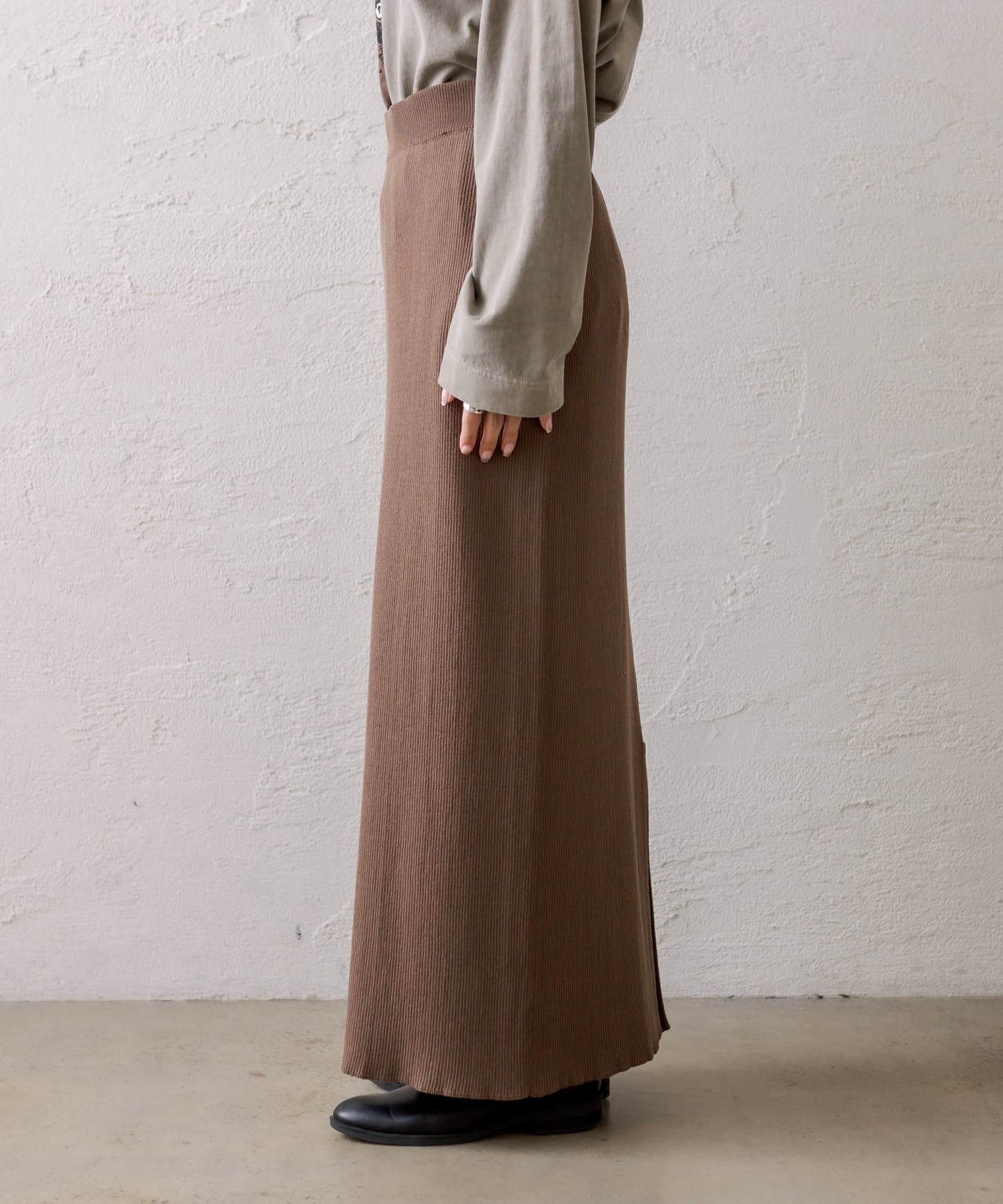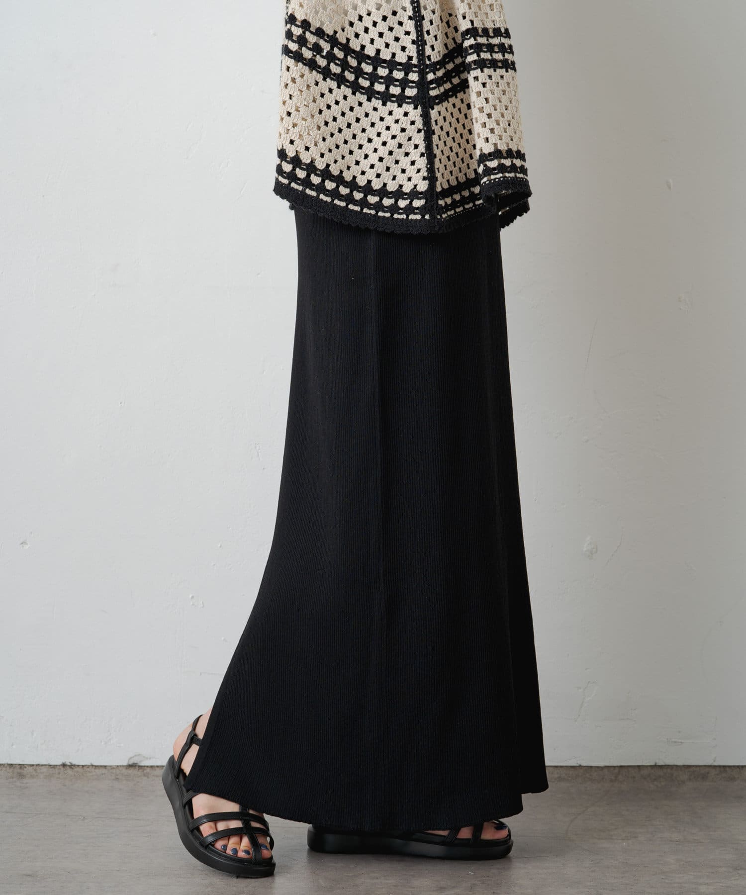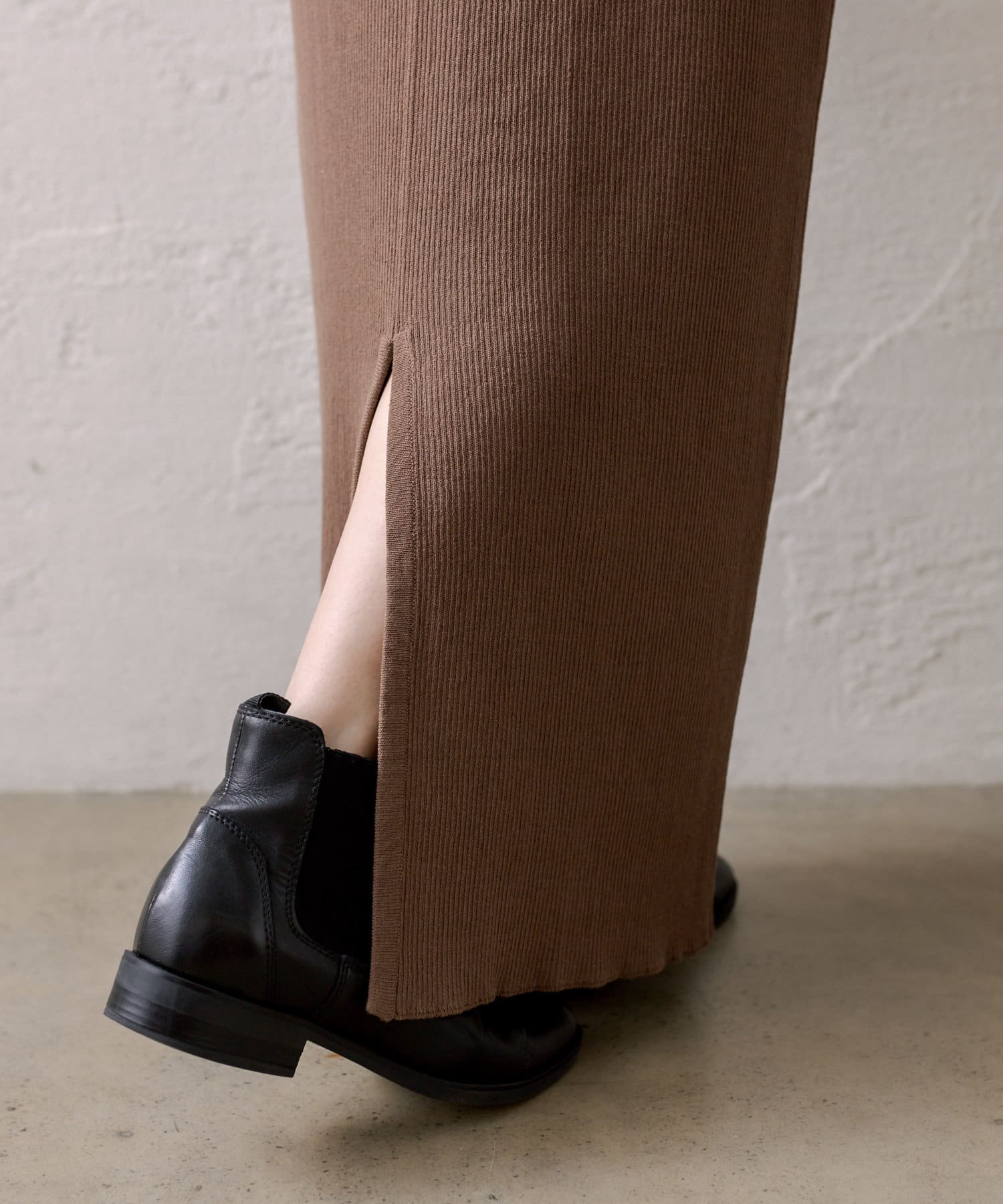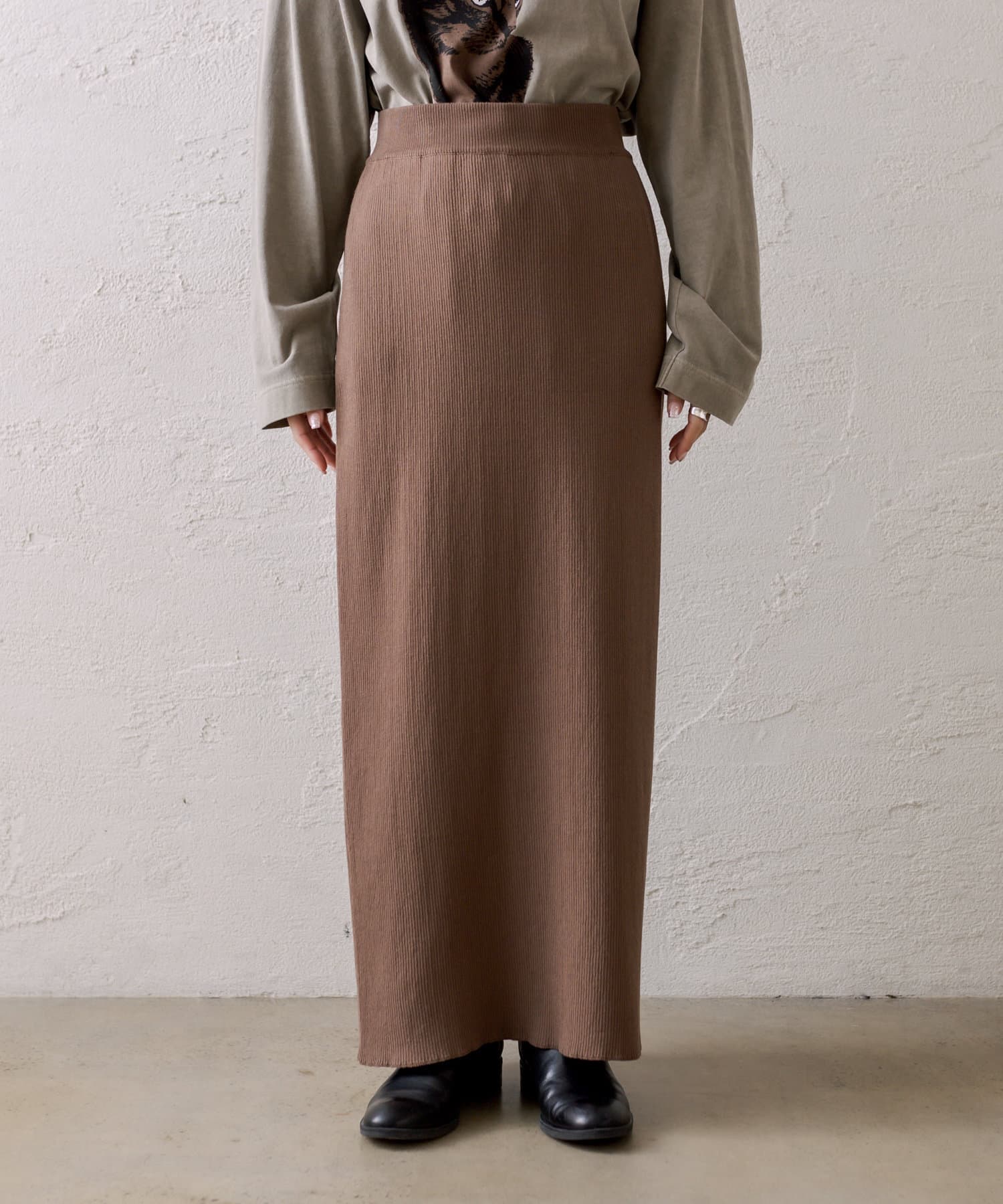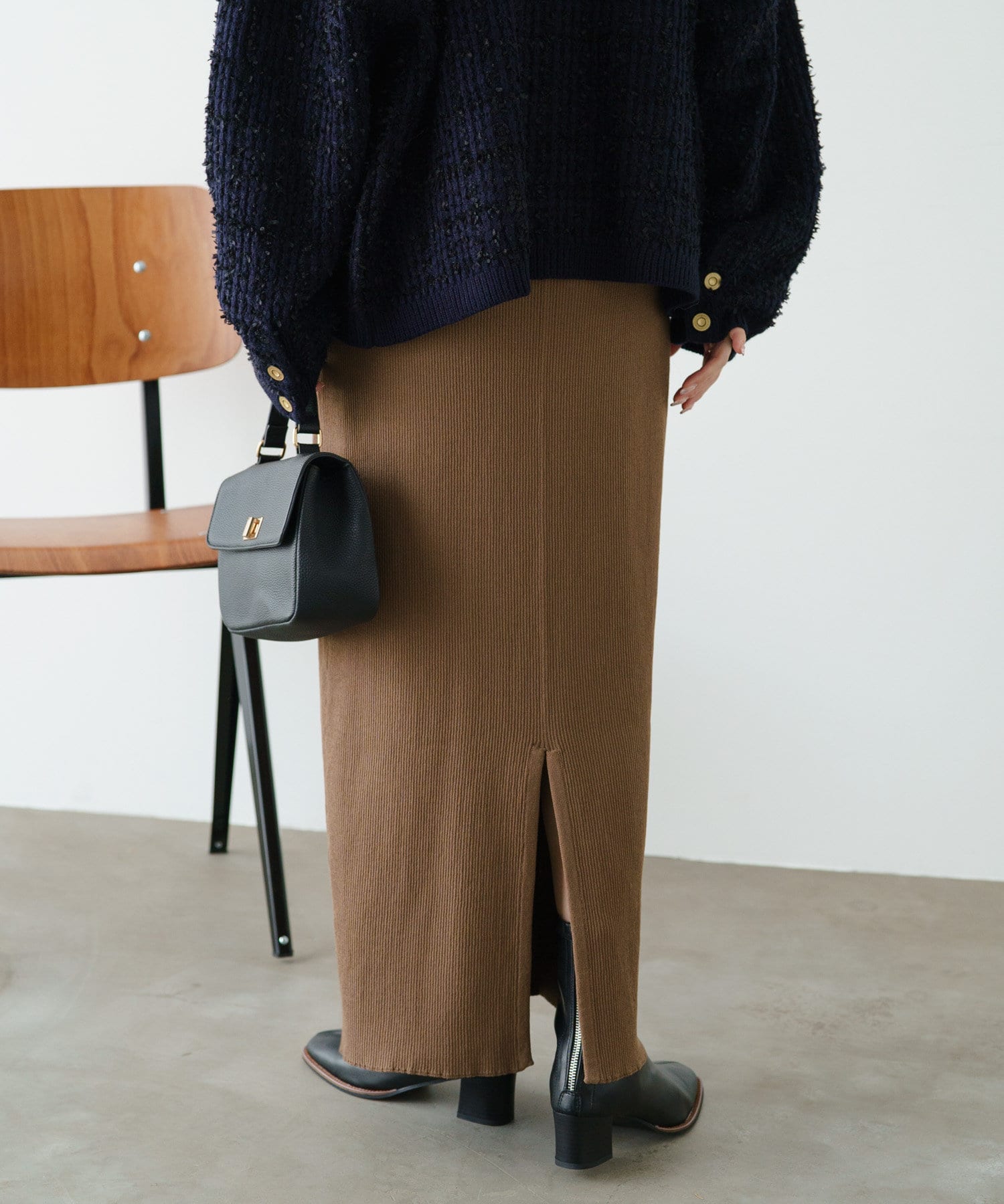 フィットしすぎず体のラインを拾いにくい絶妙なIラインシルエットが魅力のリブスカート。