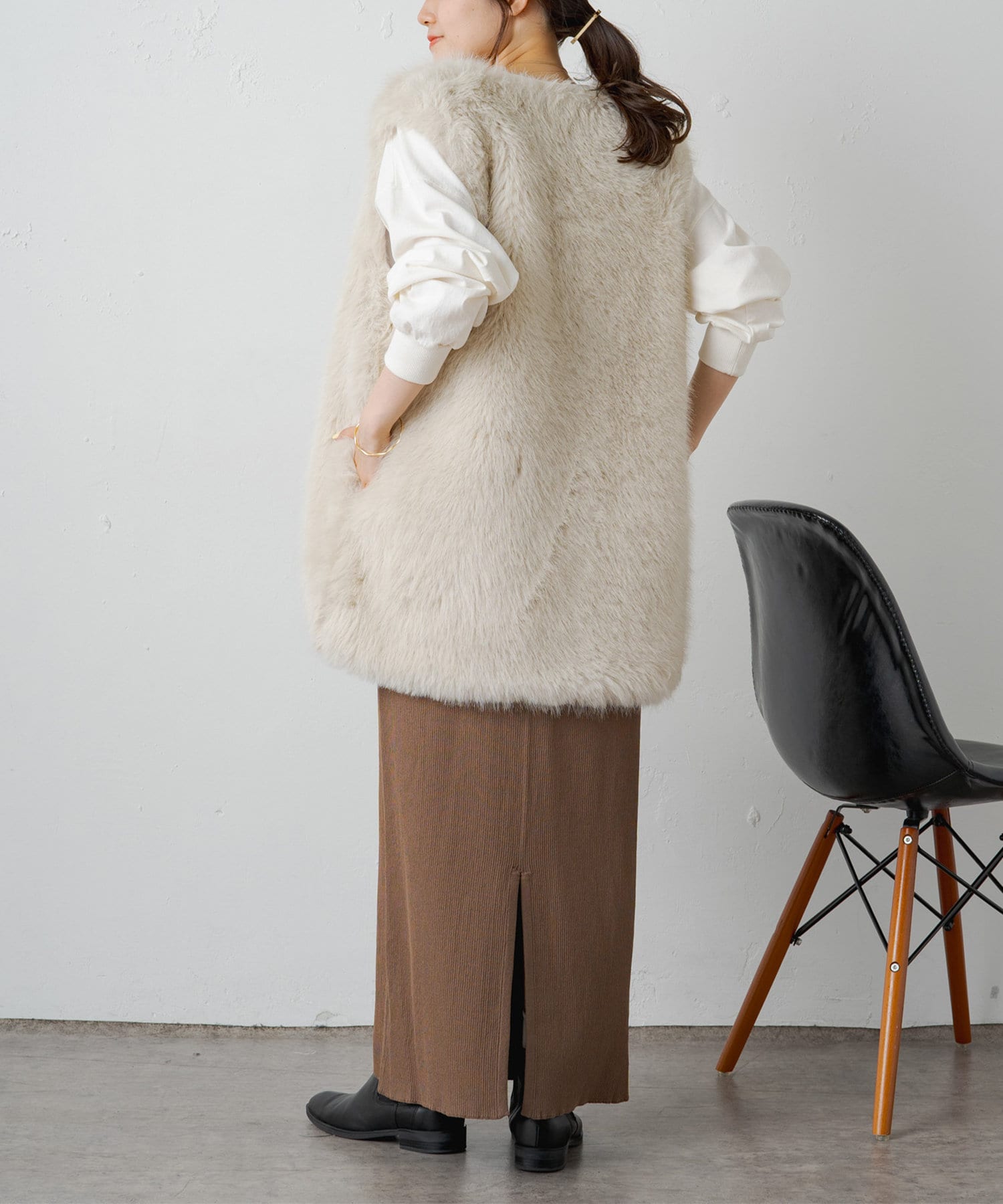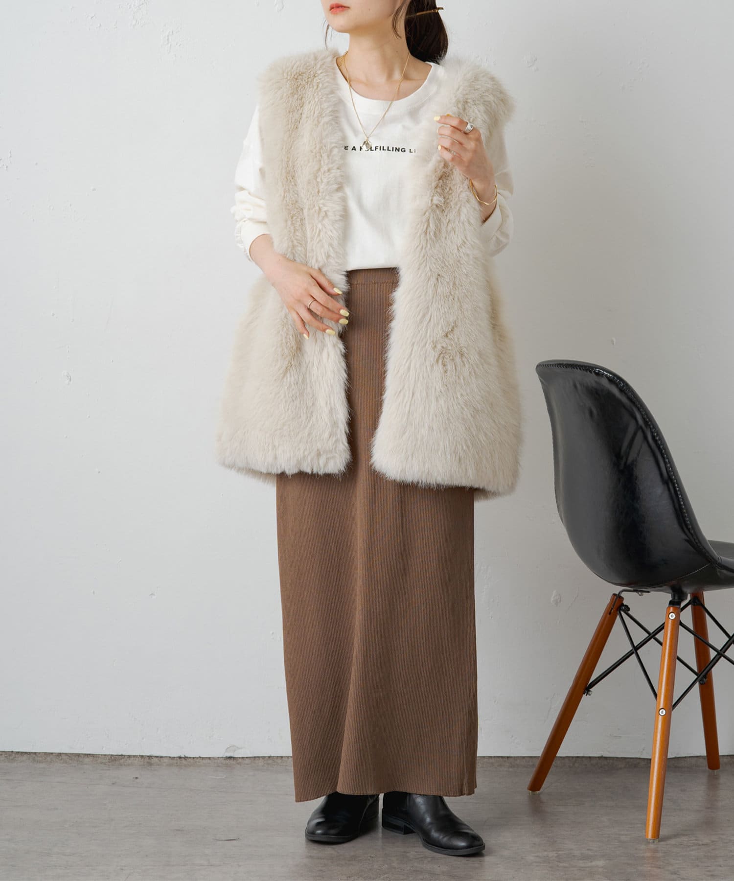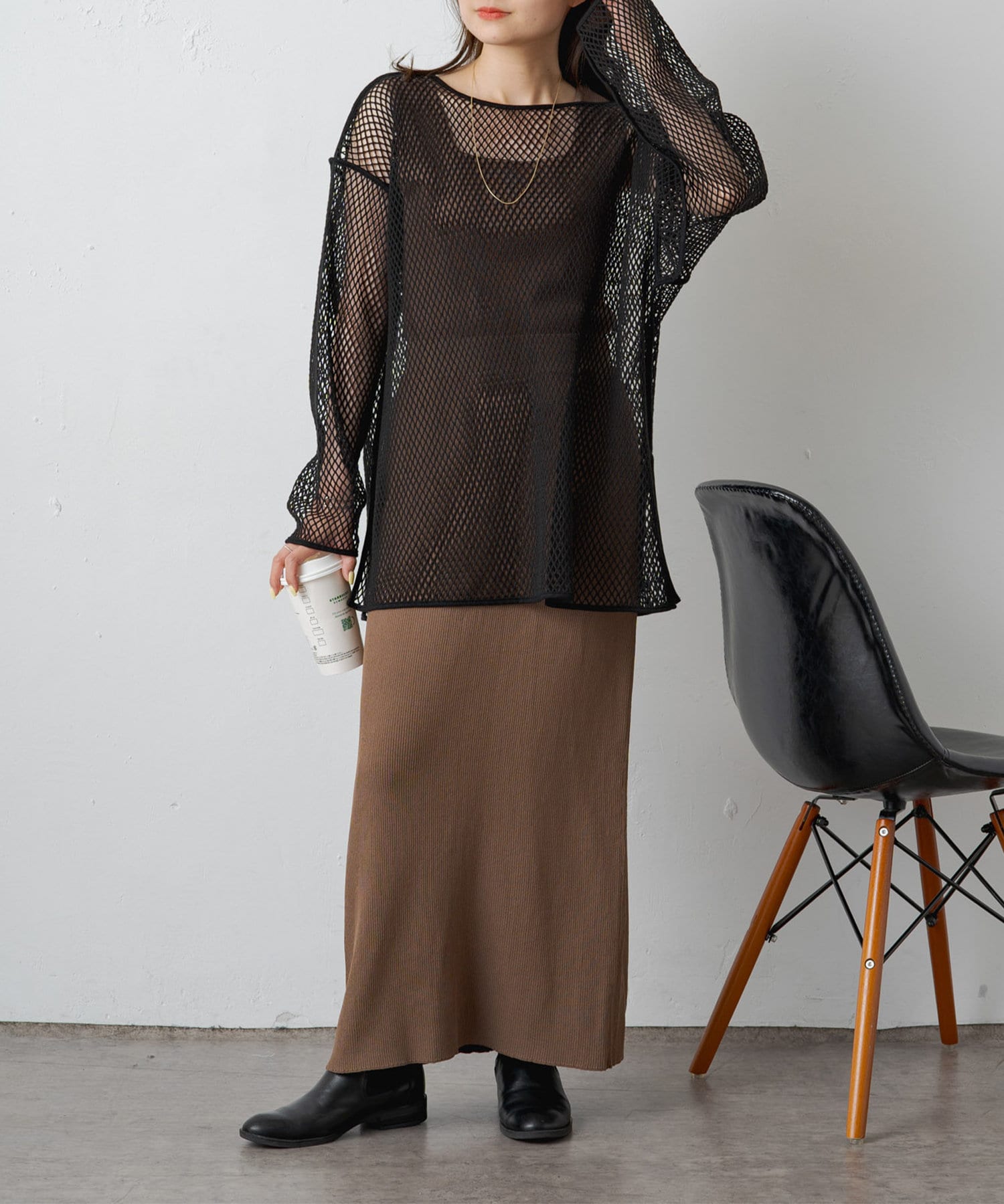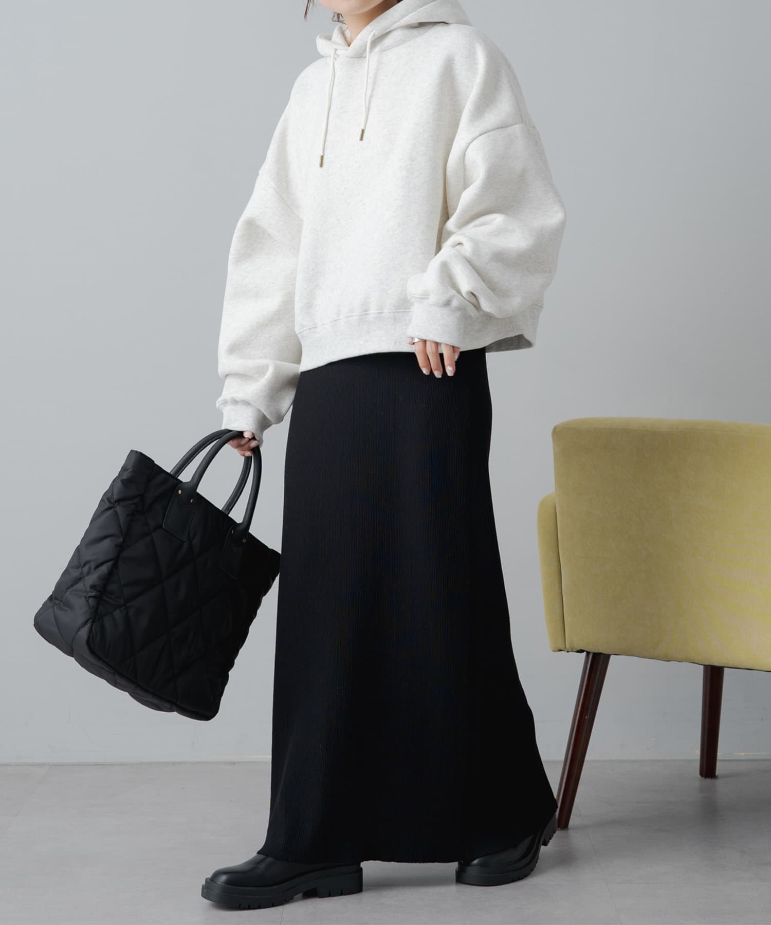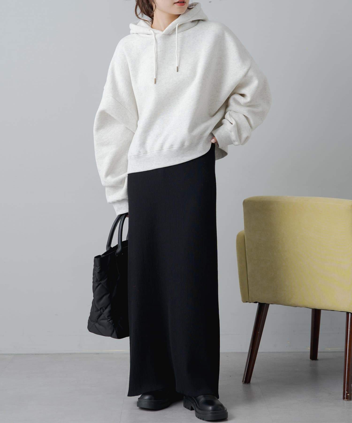 フィットしすぎず体のラインを拾いにくい絶妙なIラインシルエットが魅力のリブスカート。