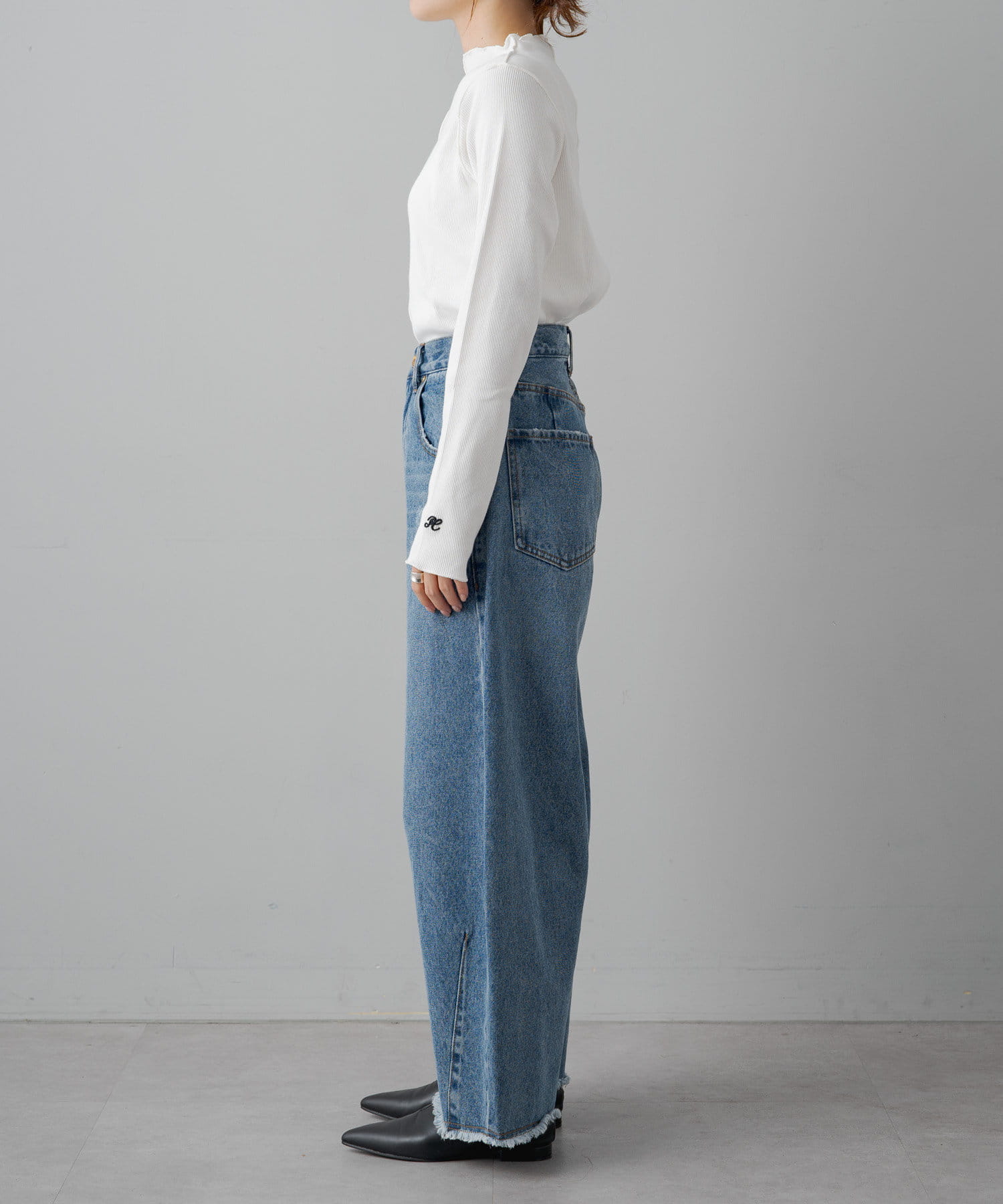 ゆとりのあるサイズ感が脚のラインを気にすることなくお召しいただけます。