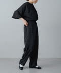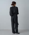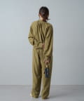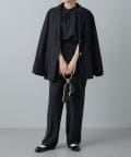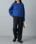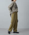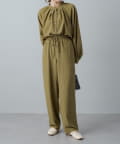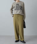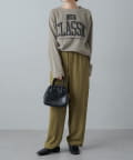 生地の綺麗な落ち感と脚のラインを拾わない程よくワイドなシルエットが抜け感をプラスします。