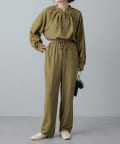 シワになりにくい柔らかな素材なので、ノンストレスで穿けるイージーパンツです。