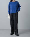 広がりすぎないストレートラインはスッキリとしたシルエットなので、カジュアルなカレッジロゴスウェットからカーディガン、ニットなどに合わせて