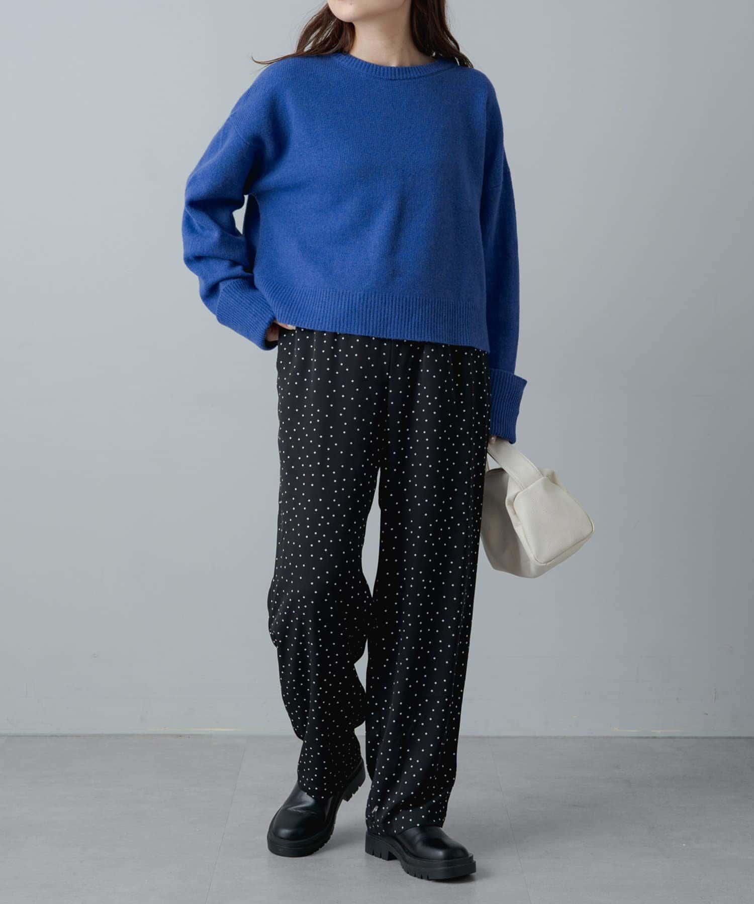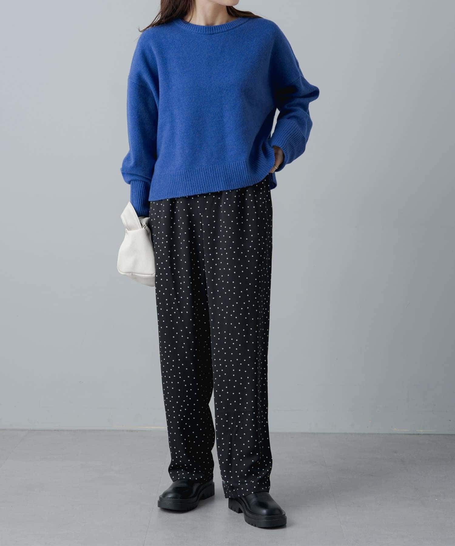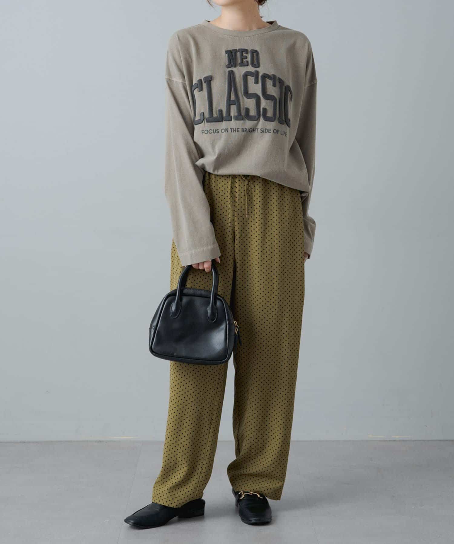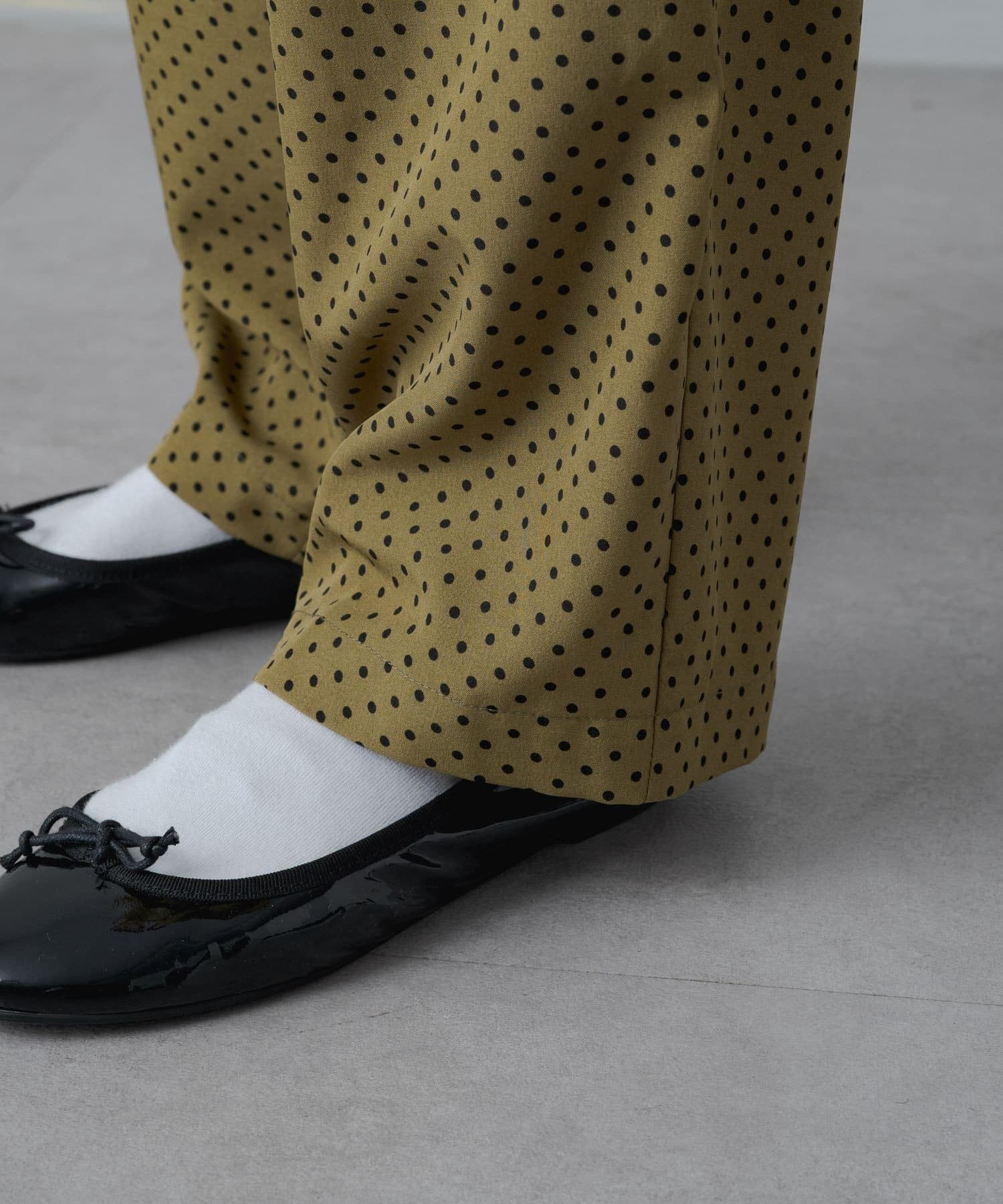 ドット柄パンツはシンプルなトップスと合わせても着映えが叶う優秀ボトム。