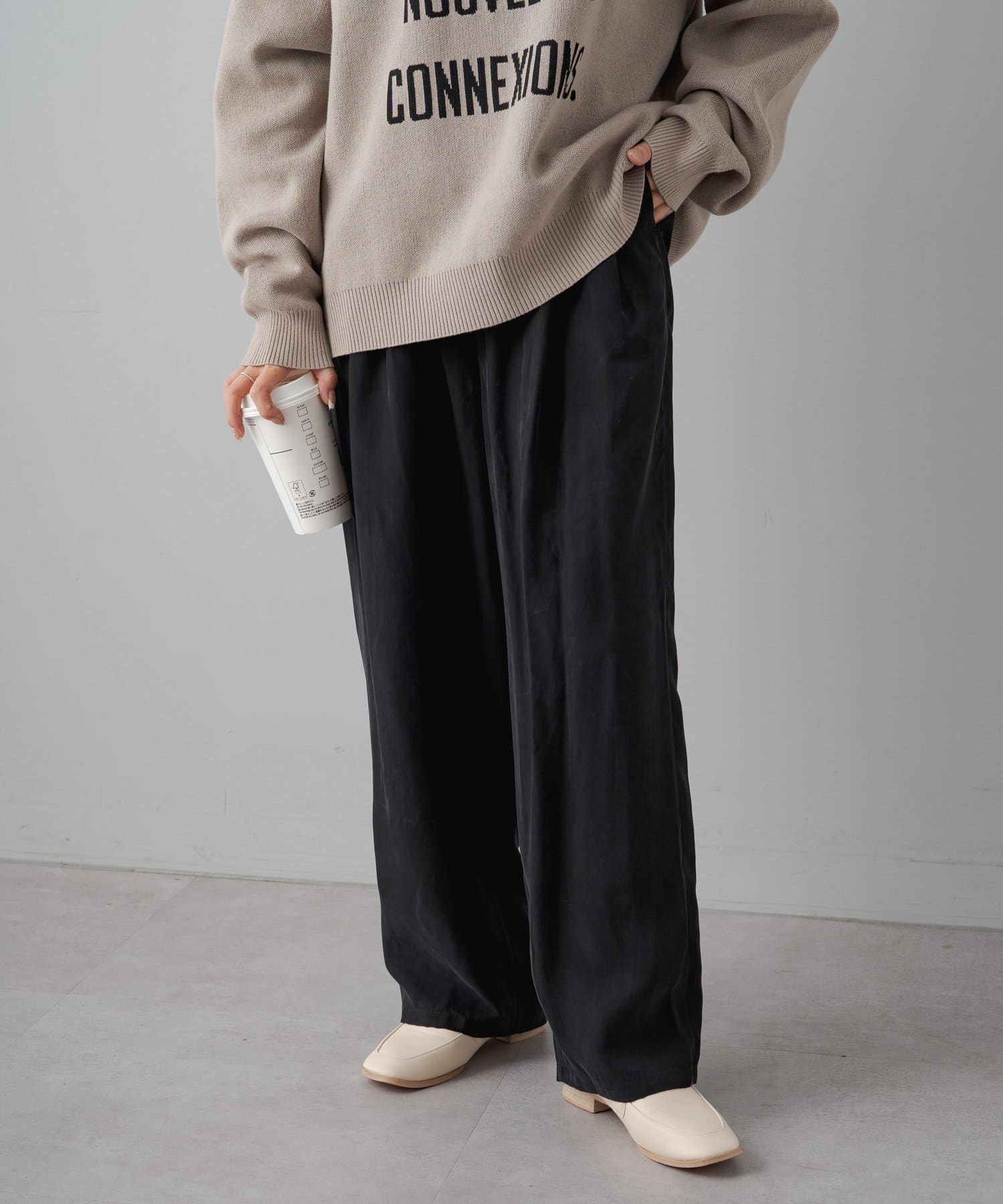 パウダーサテンイージーパンツ