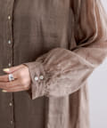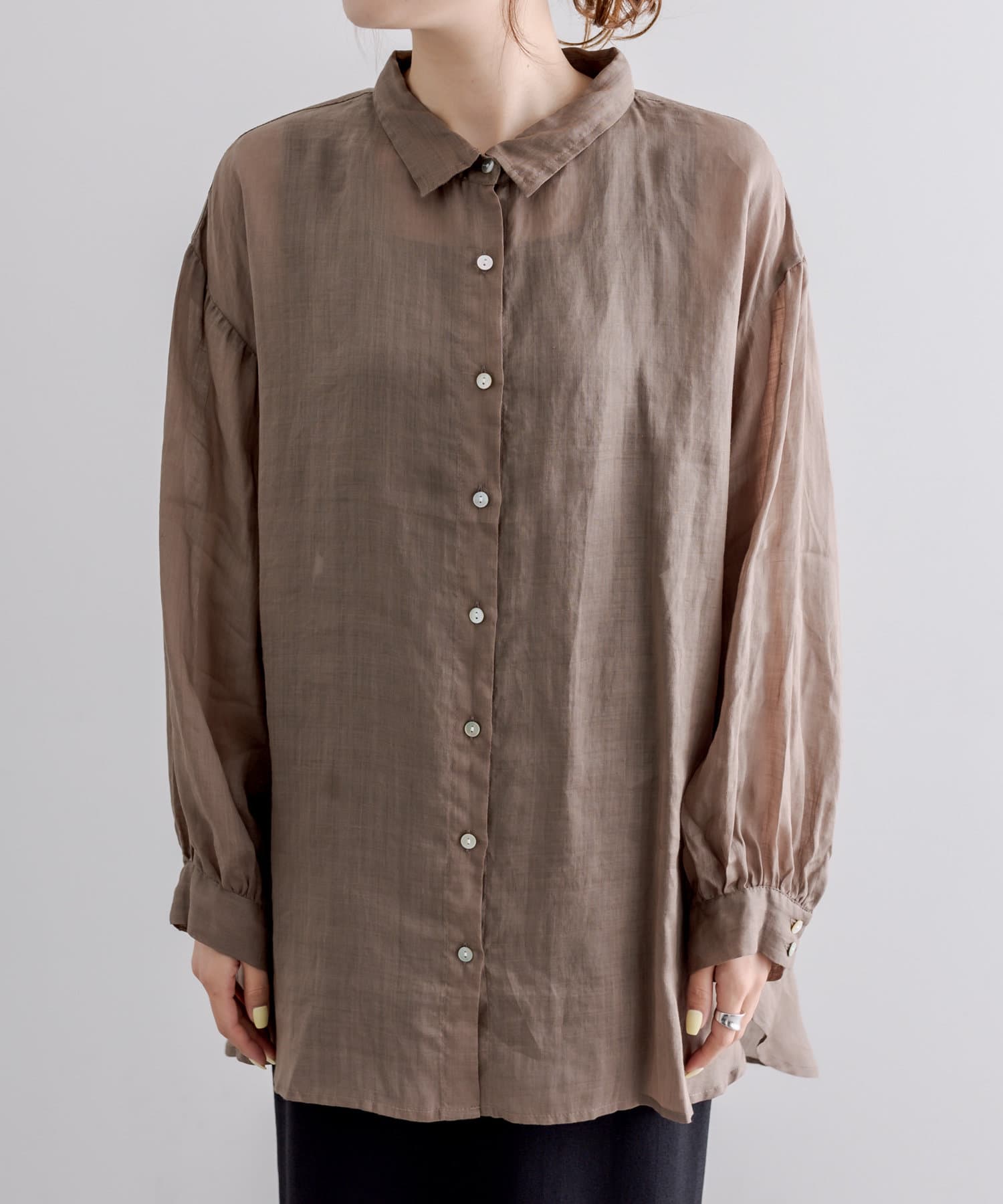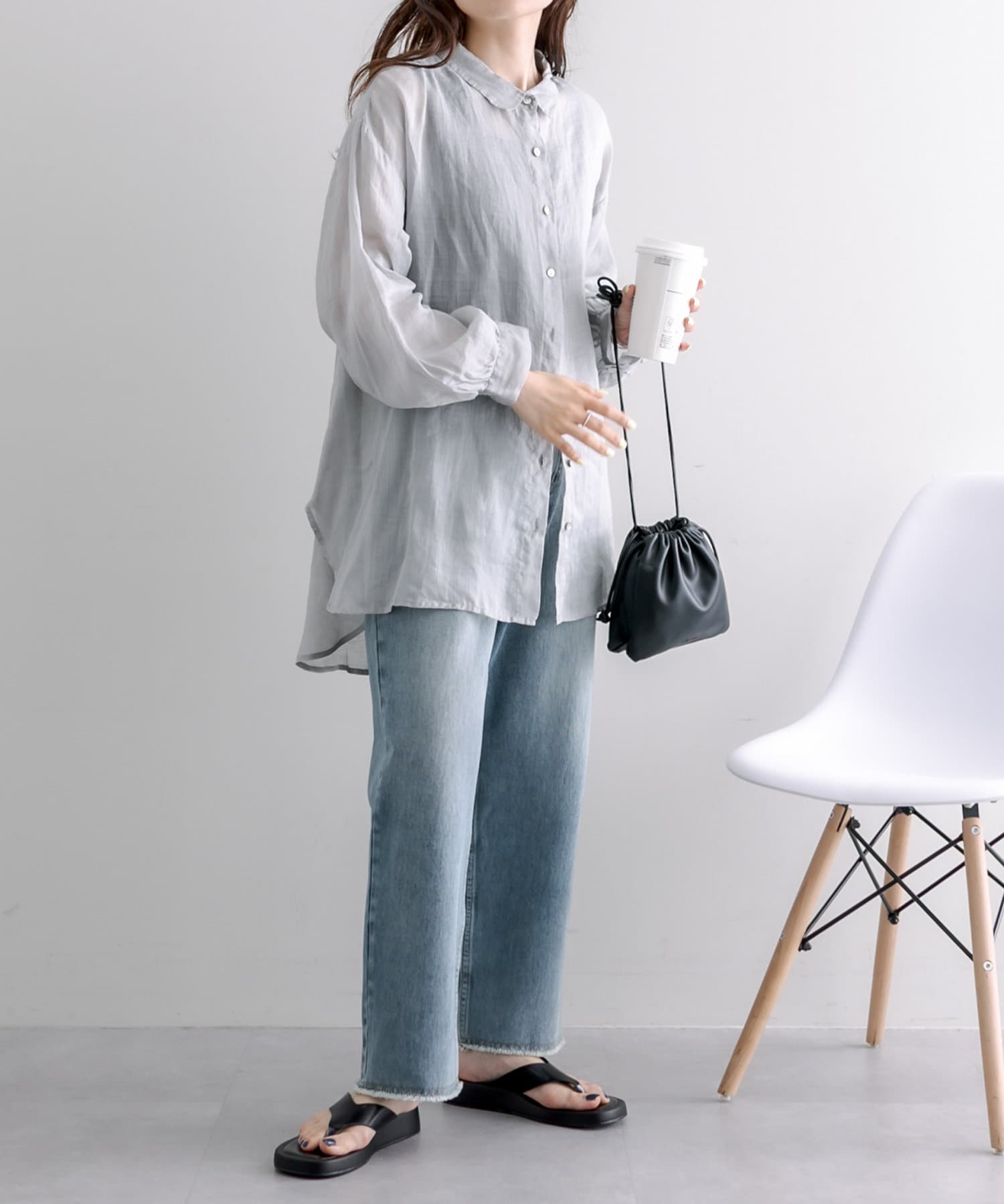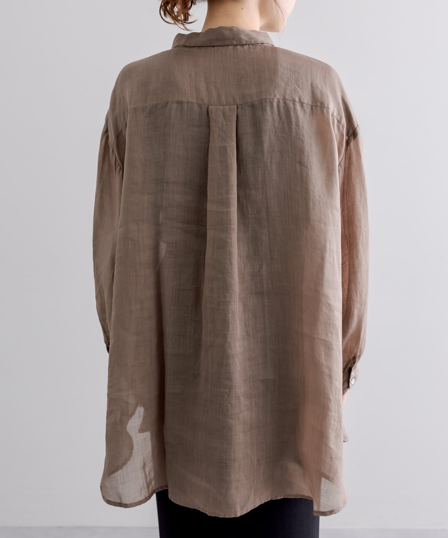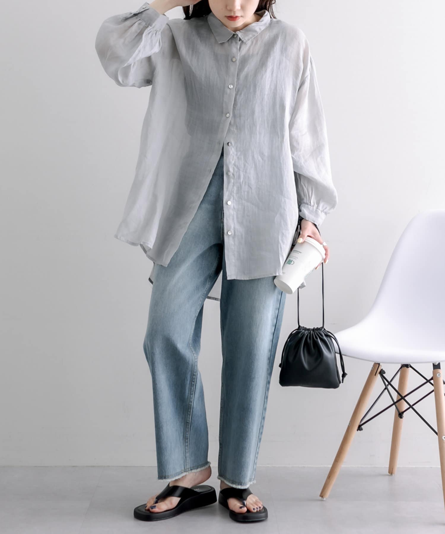 体が泳ぐワイドシルエットにヒップまですっぽり隠れる着丈で、羽織りでも1枚着でも着回しやすいデザインになっています。