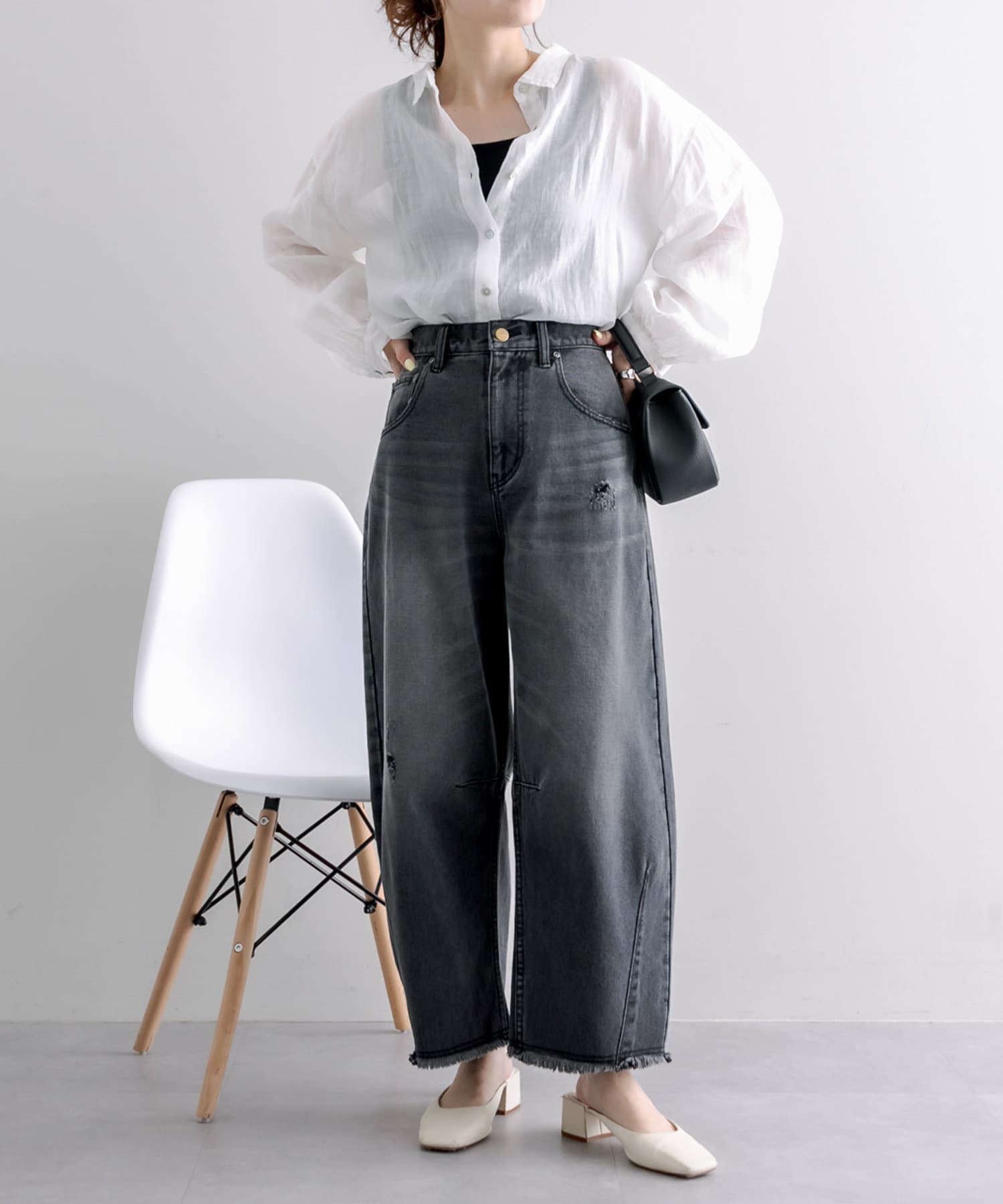 カジュアルなデニムやきれいめなスラックスなどボトムを選ばず着回し抜群。
