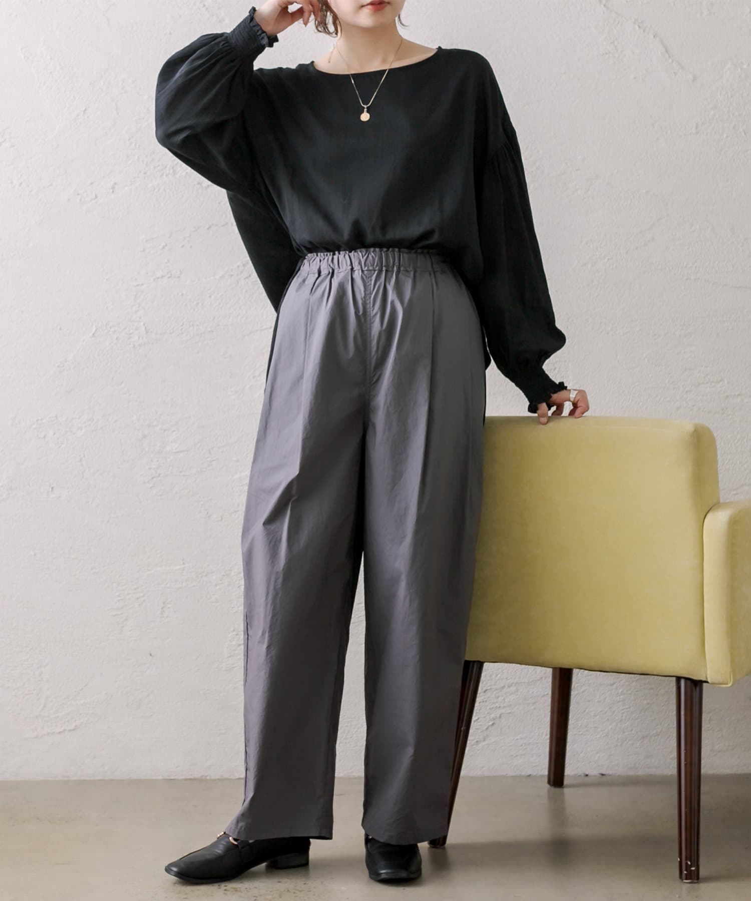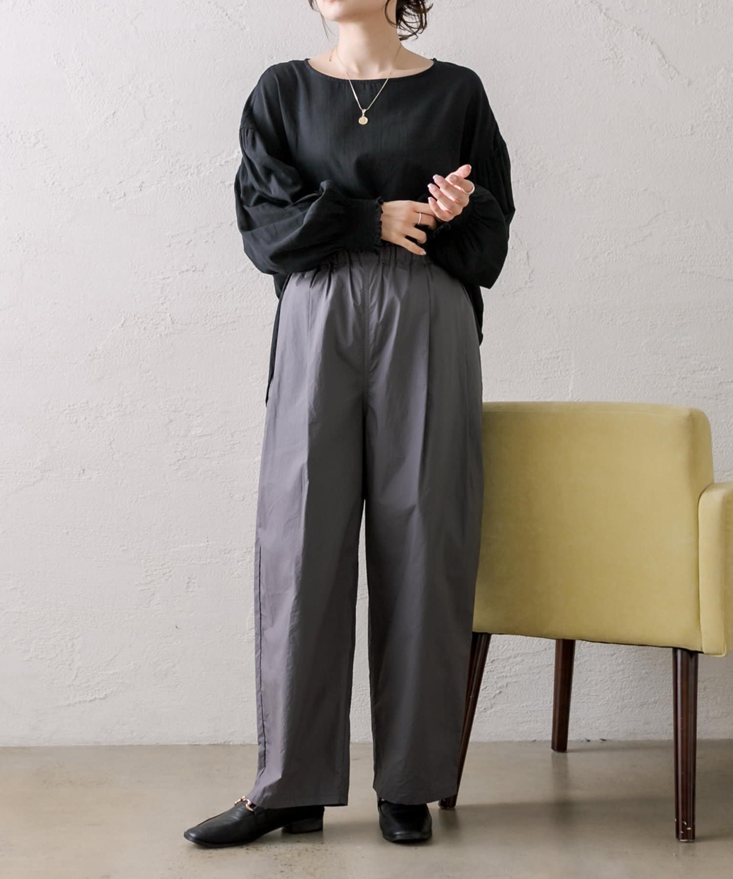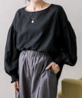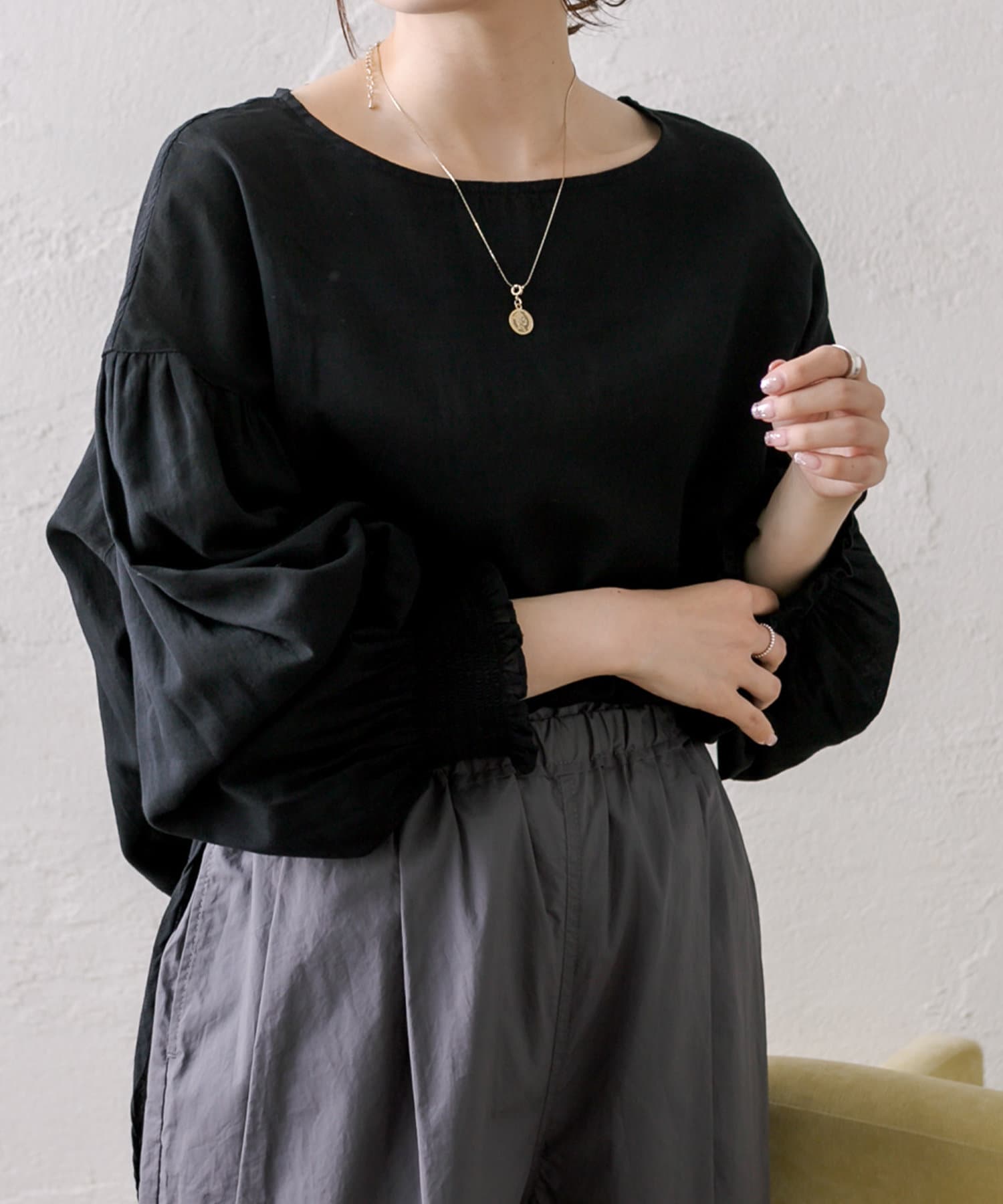 ギャザーが施されたふんわりボリューム袖がフェミニンな印象ですが