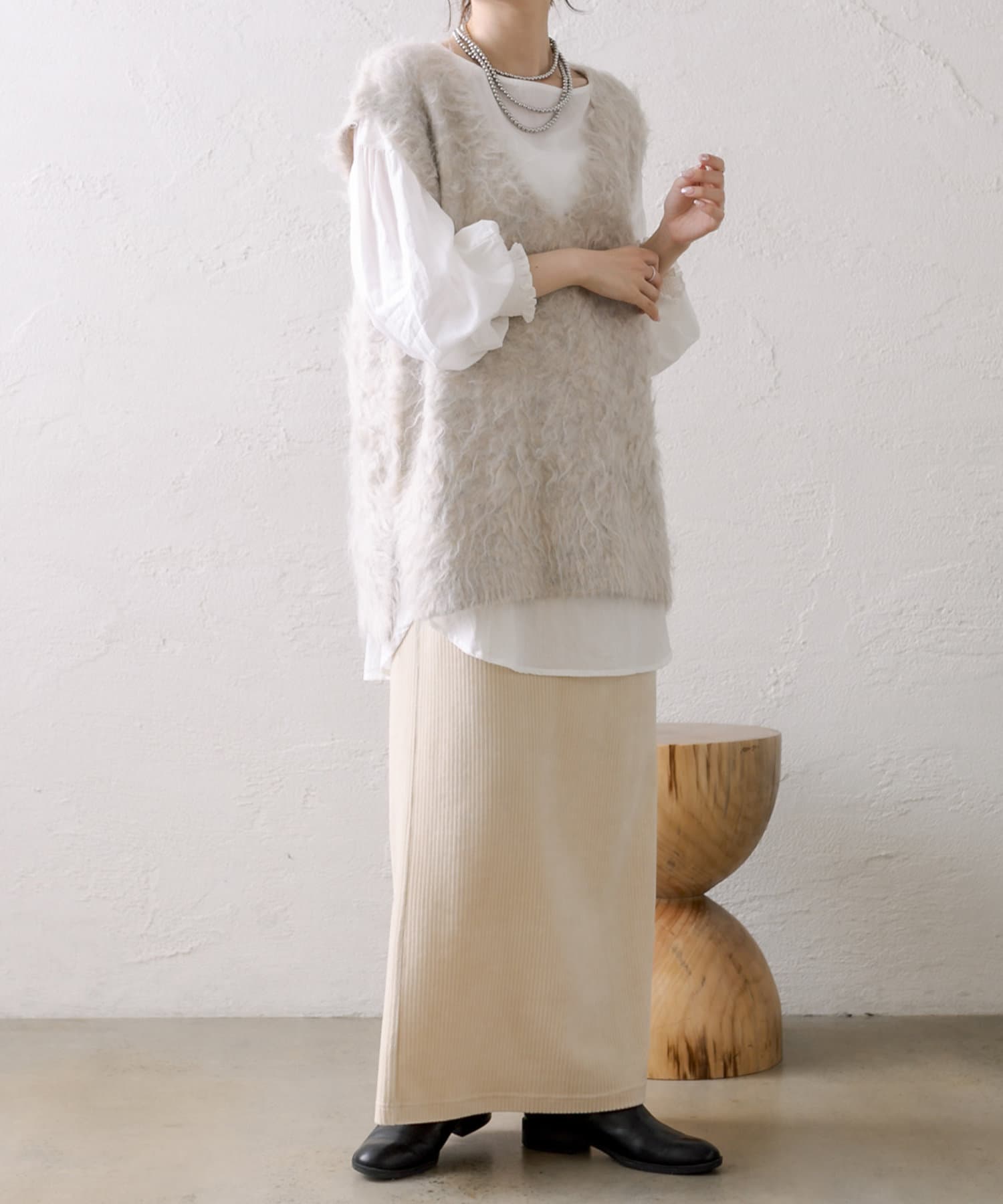 ニットやベストはもちろん、カットソーなどシーズン問わず活躍してくれる万能アイテムです。