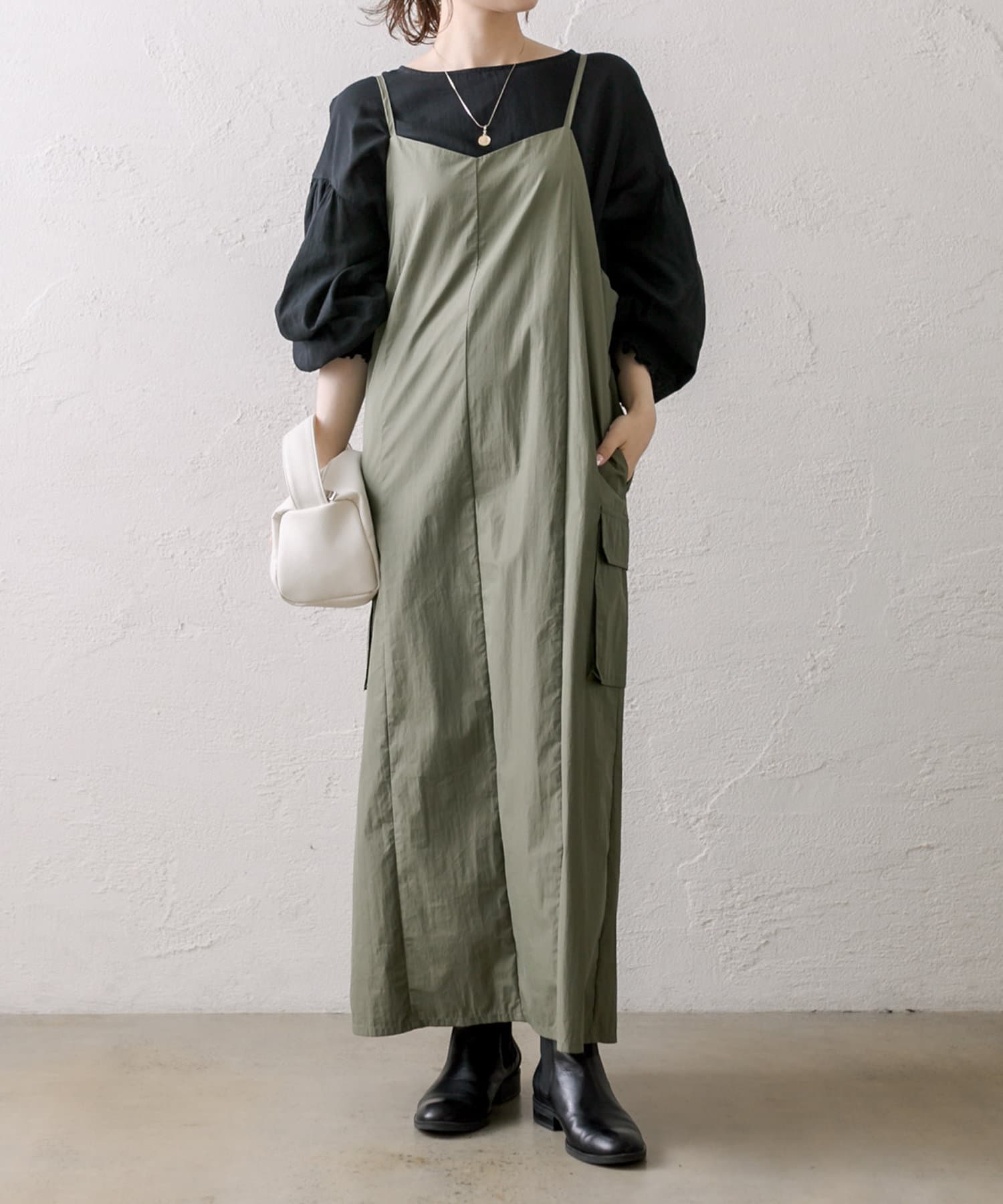 カットソーやベスト、サロペットなどレイヤードが楽しめるのはもちろん、1枚でさらっと着こなすこともできます。