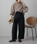 ボトムにはカジュアルなデニムパンツや、マニッシュなスラックスなどおすすめです。