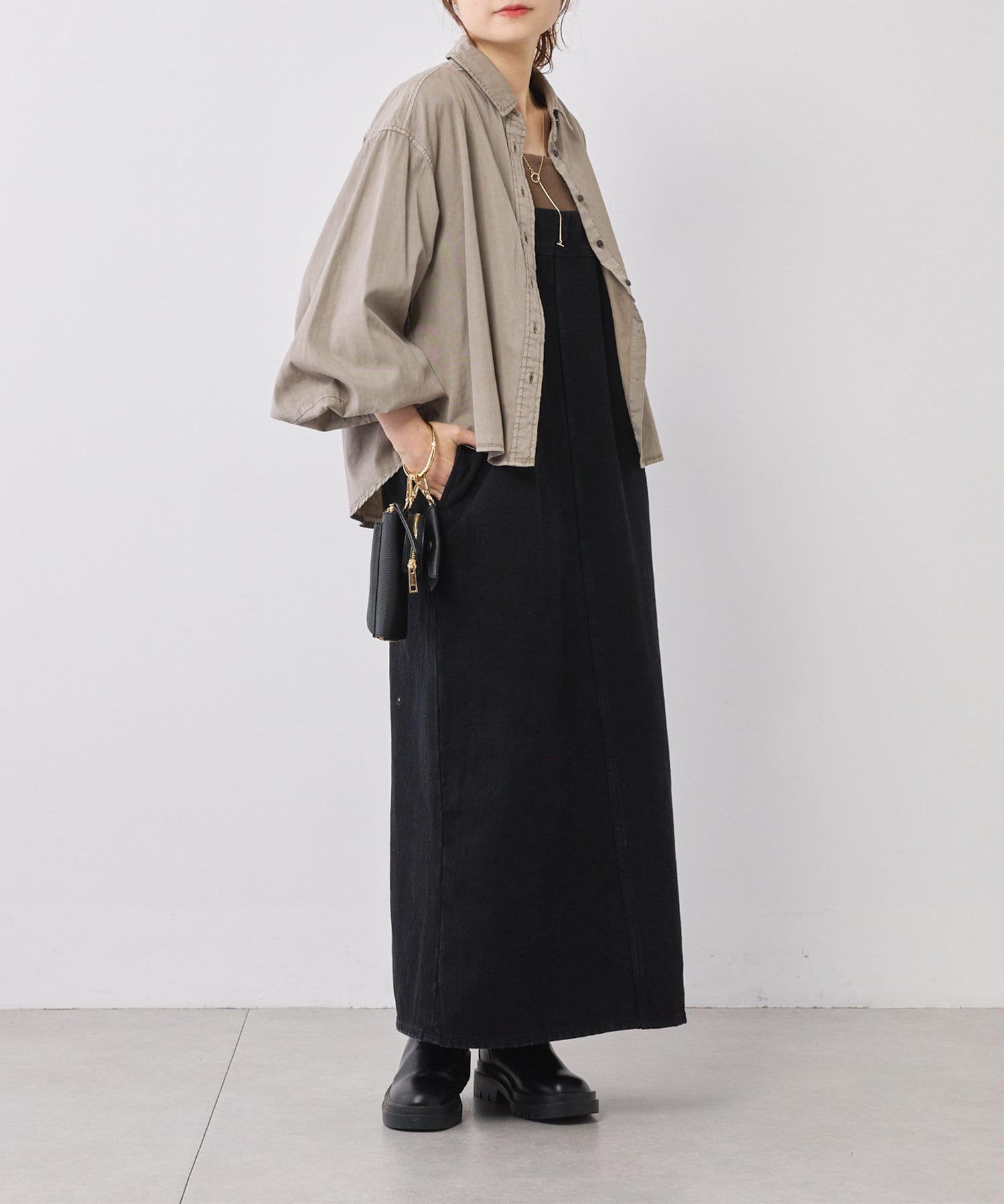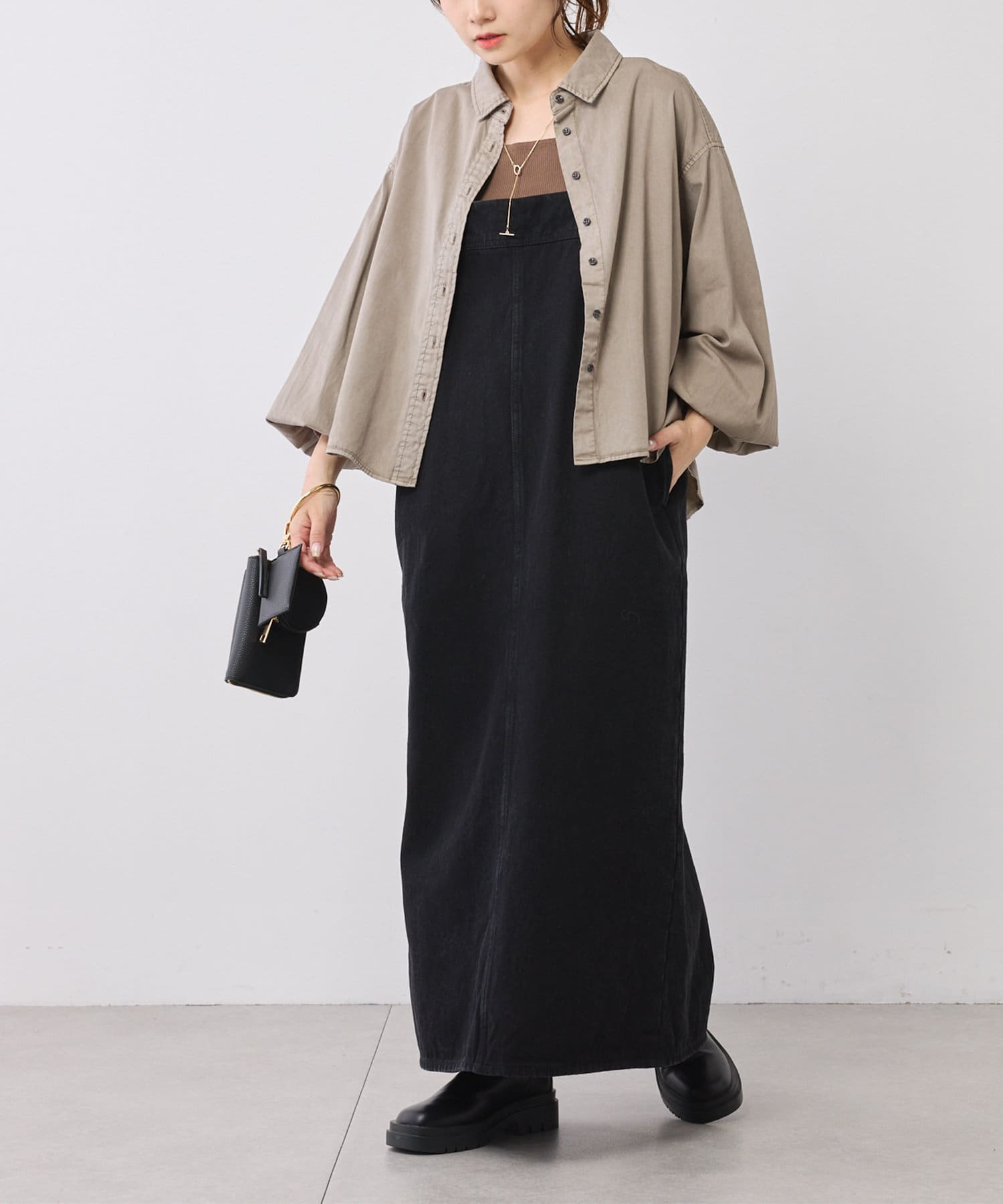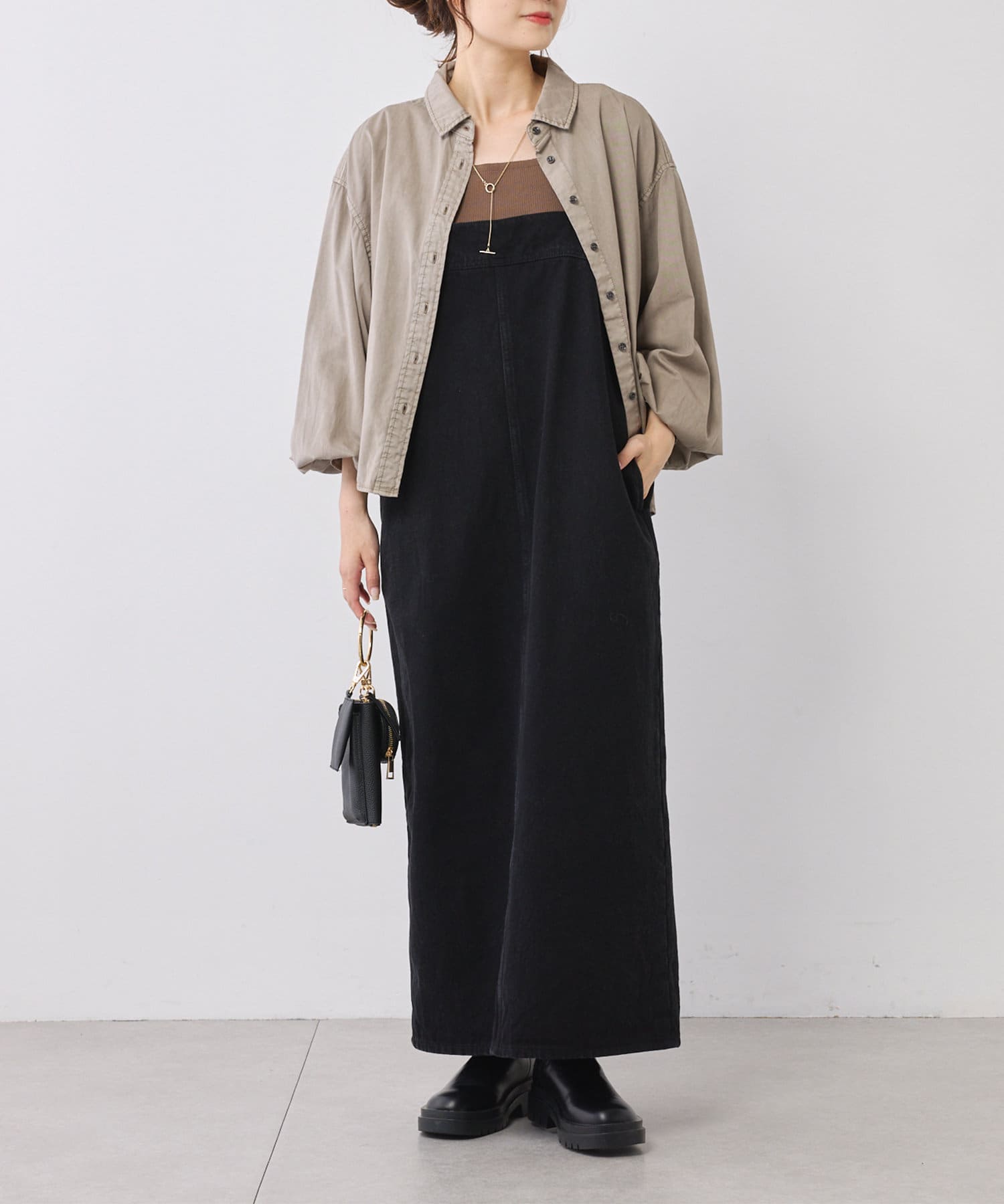 タンクトップやサロペット、キャミワンピースに合わせて羽織として。