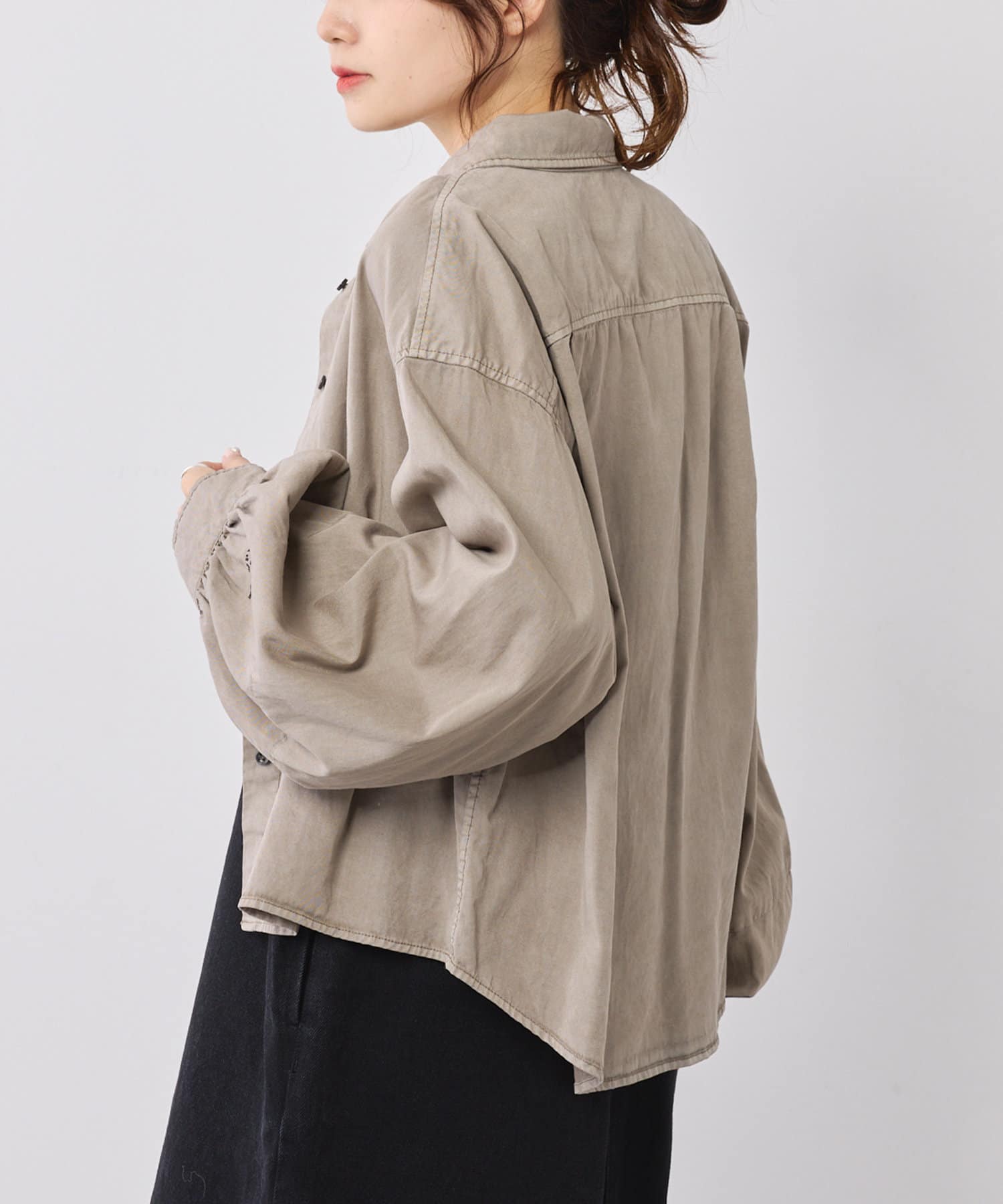 サイズ感:オーバーサイズでラフな着心地。腰丈の短い着丈なのでスタイルアップが叶います。