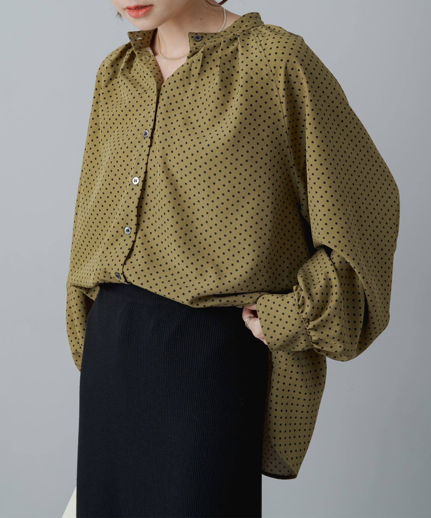 ◇大人可愛い雰囲気を演出するドット柄ブラウス◇