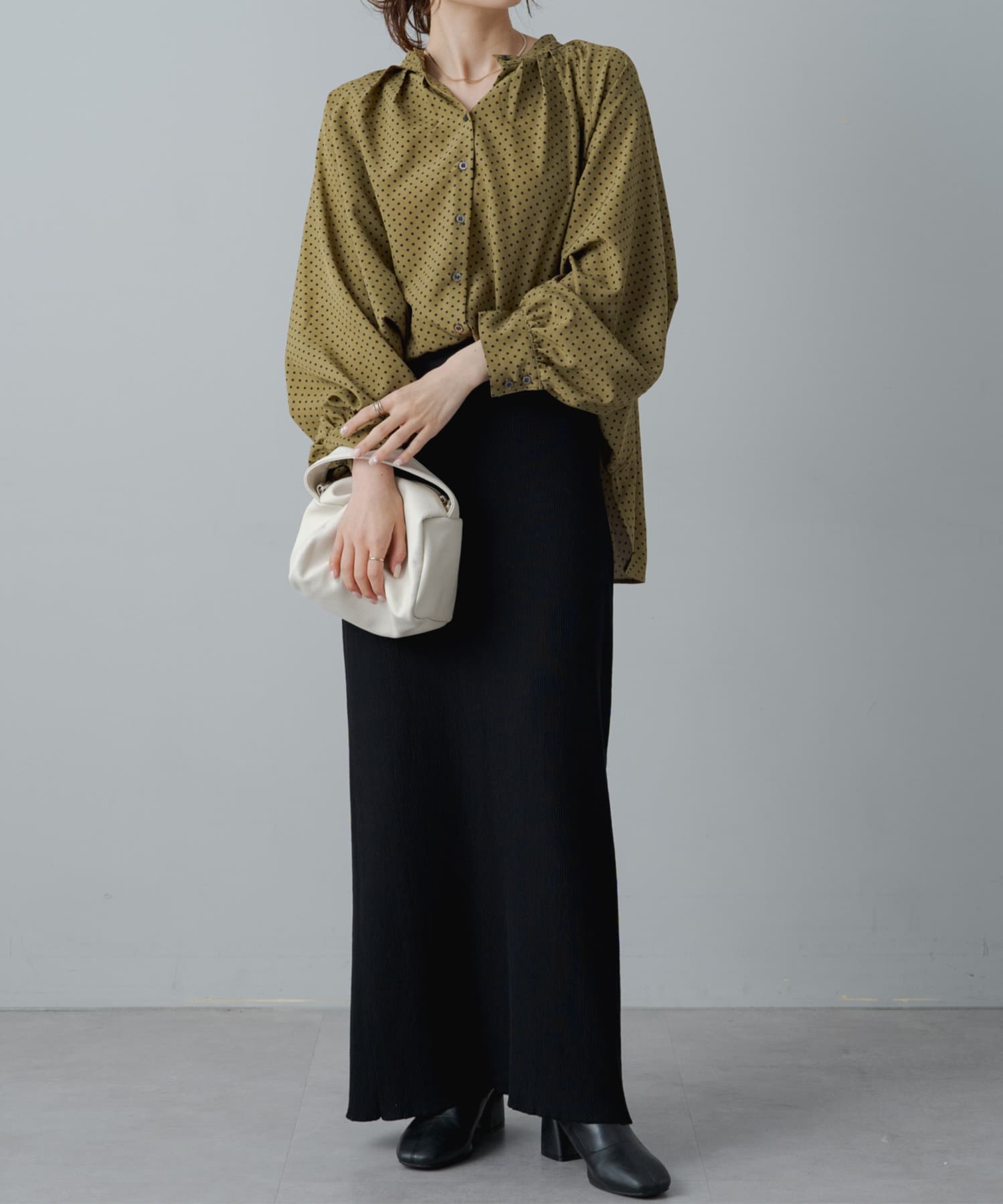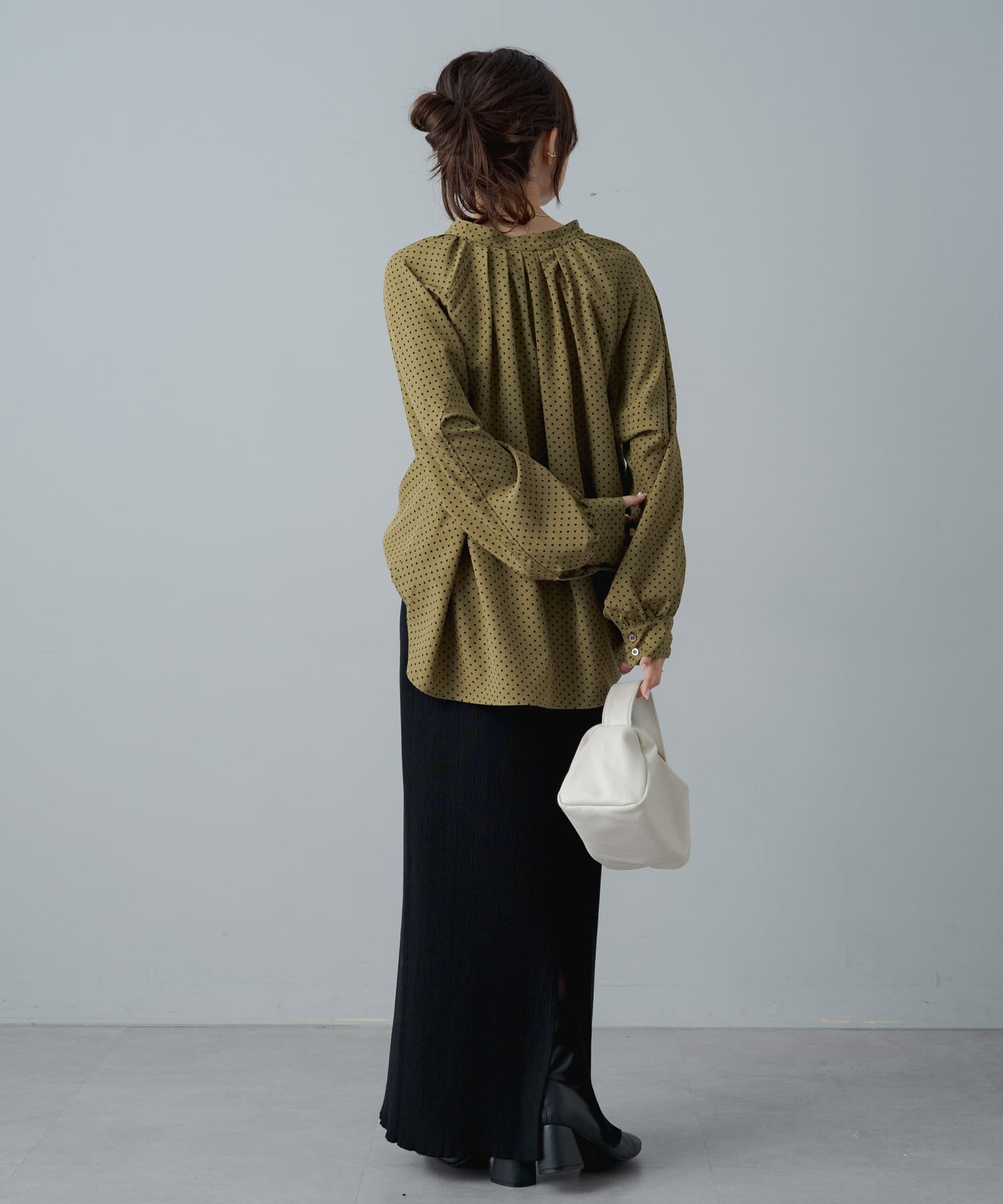 首元に施したタックが立体感のあるシルエットを作り出します。