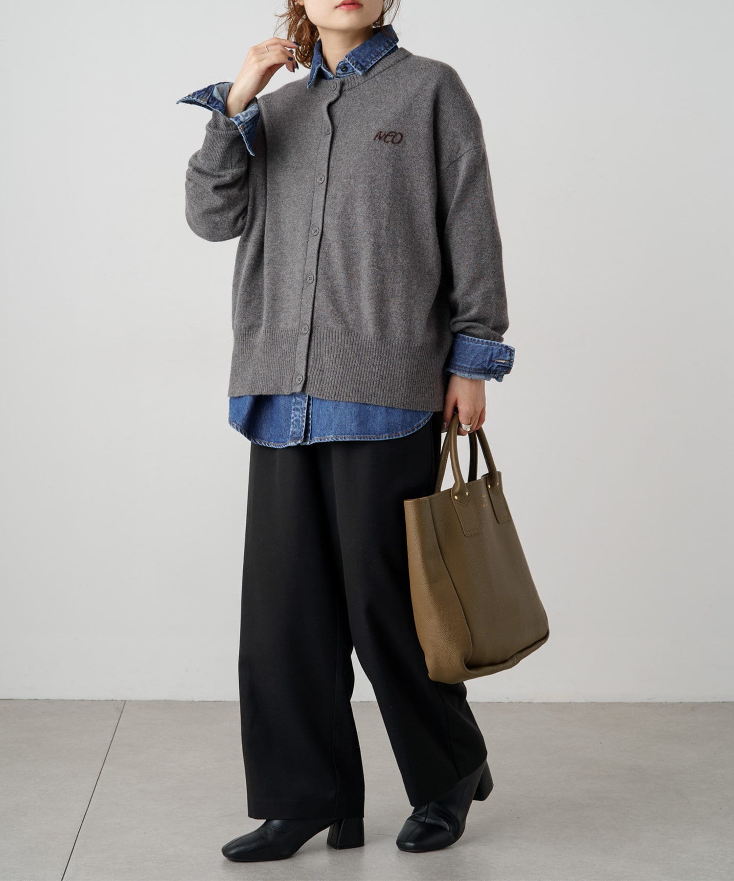 TシャツやロンTの上から羽織ったり、ニットやハイネックトップスレイヤードしたりなど、重ね着にも活躍します。
