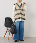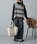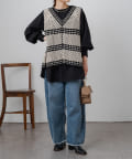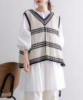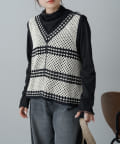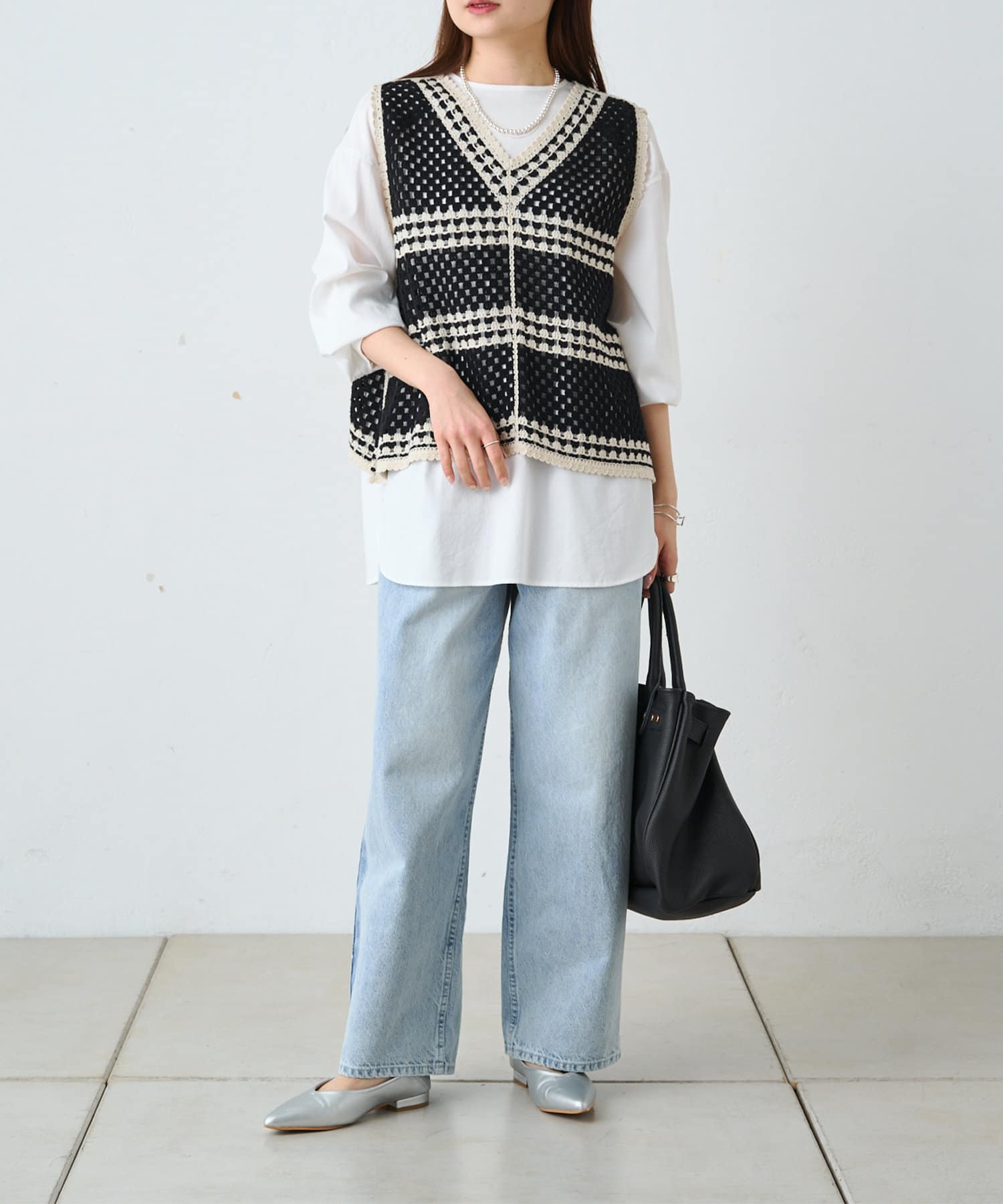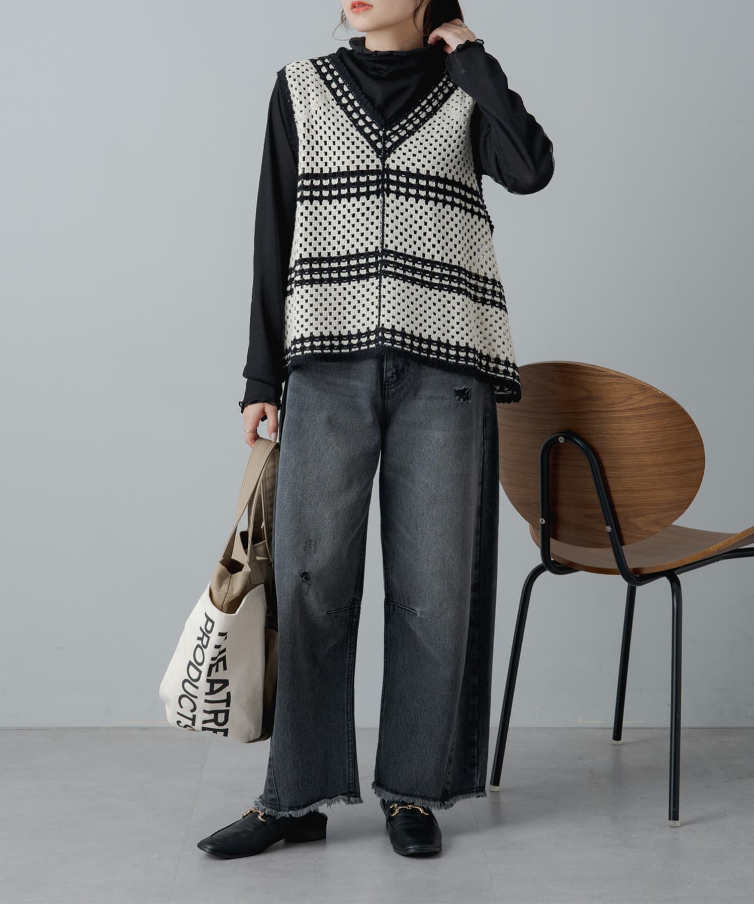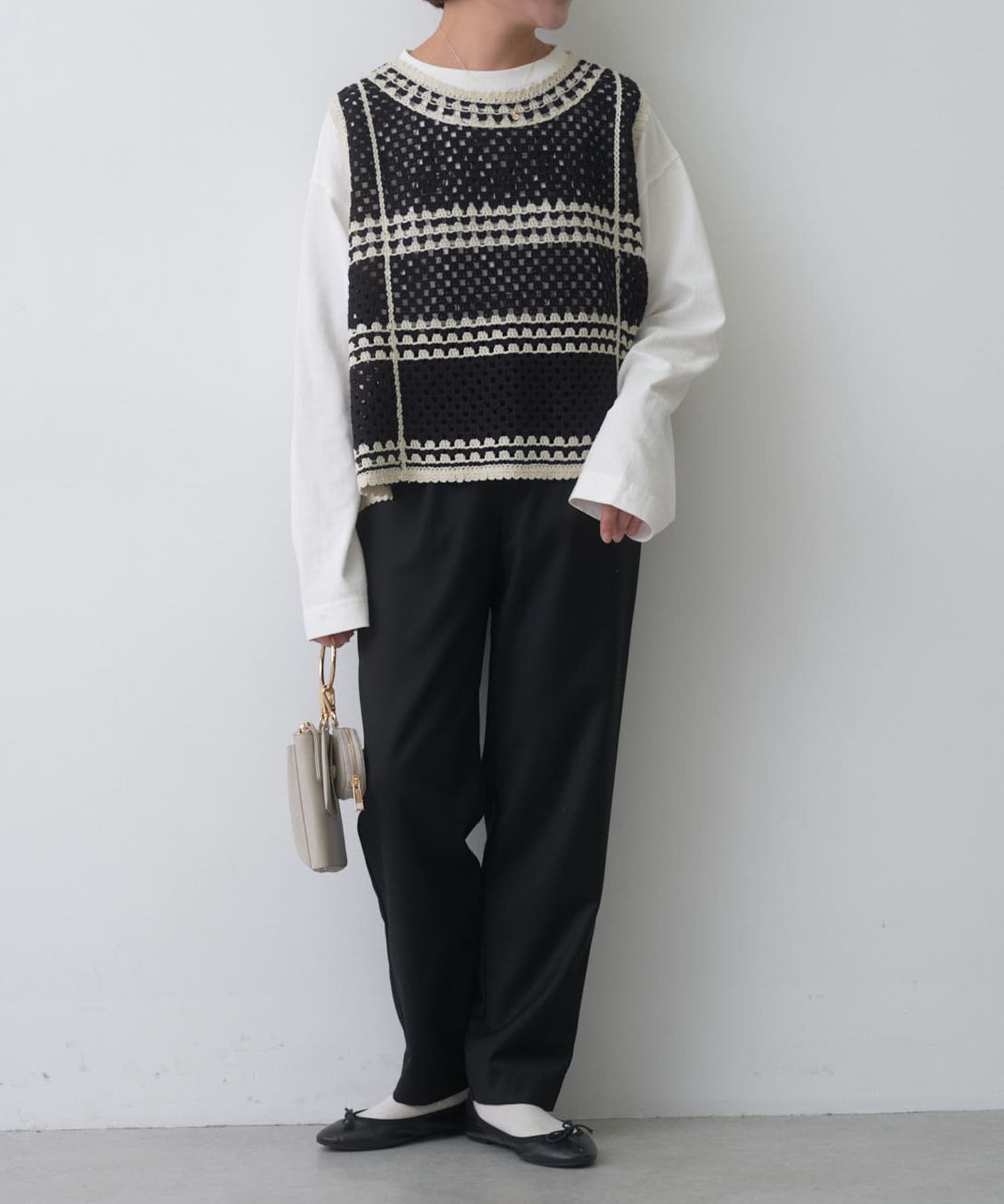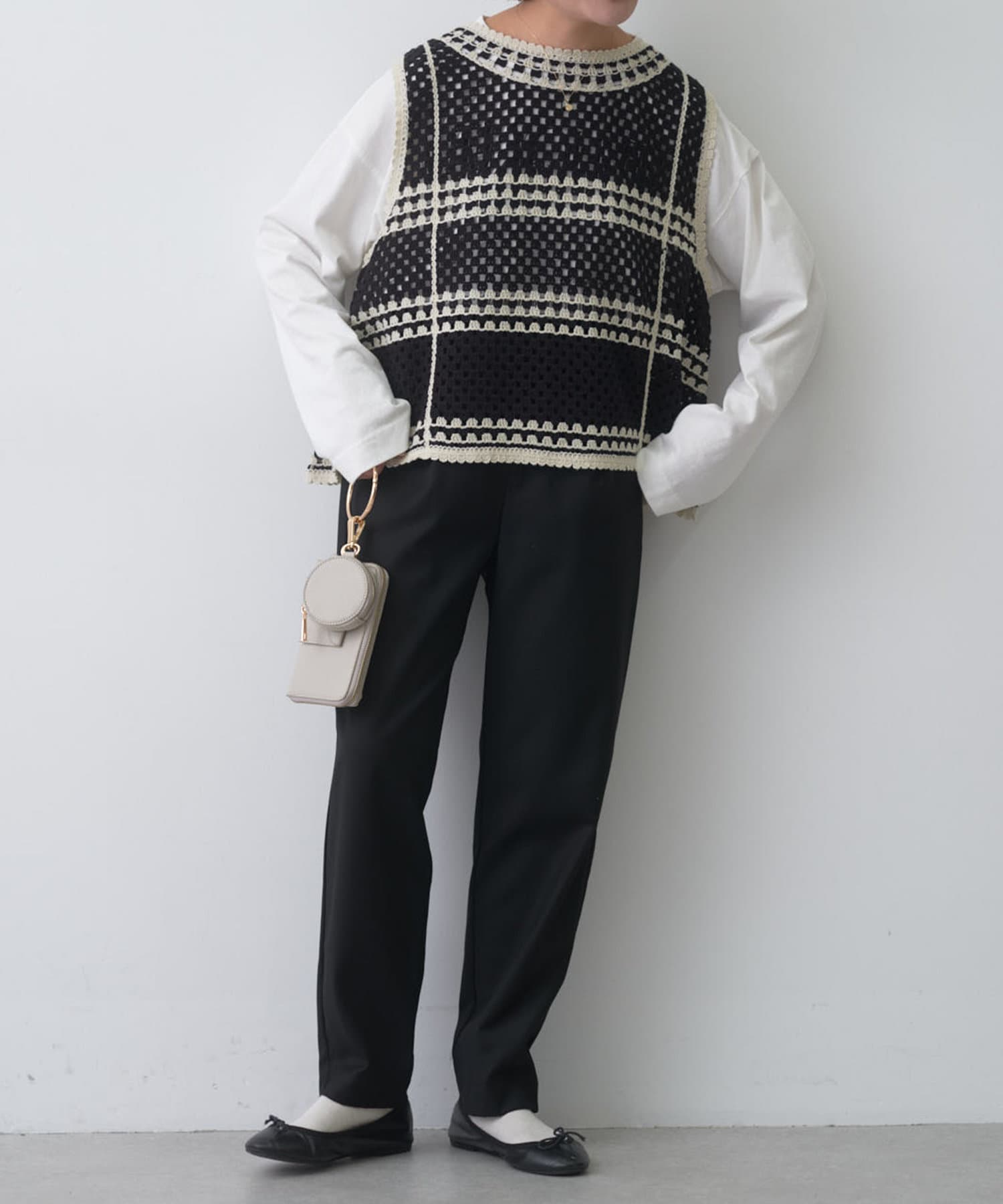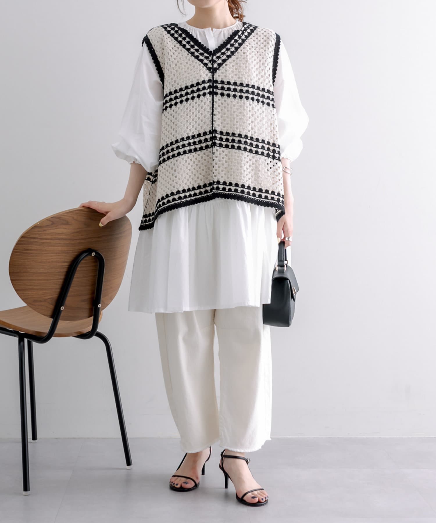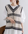 クロシェ/かぎ針編みのような編地が表情豊かな配色ベスト。