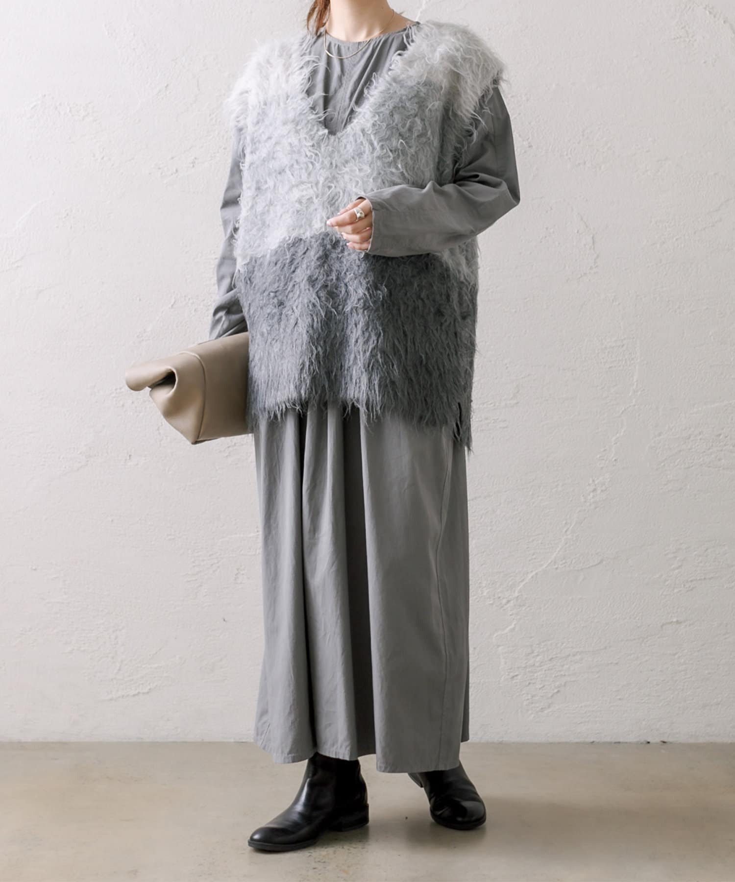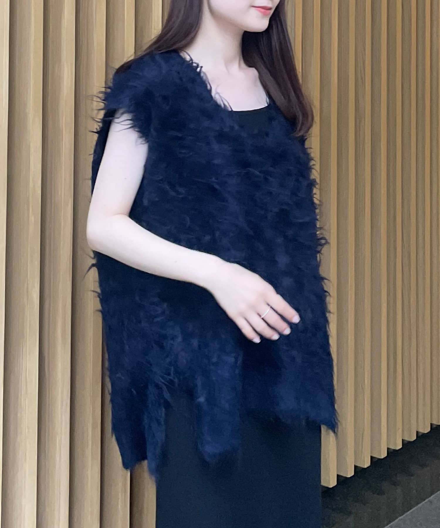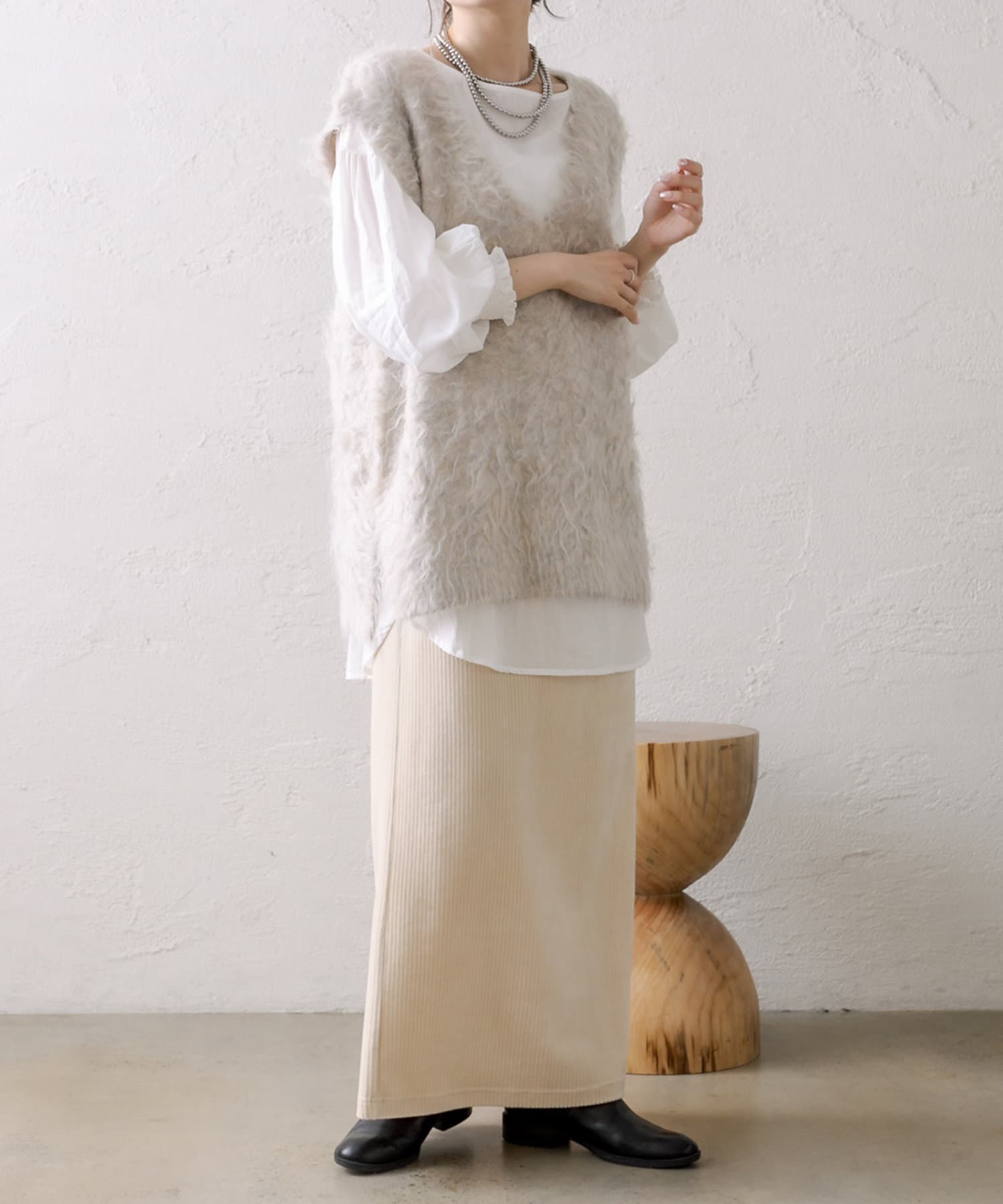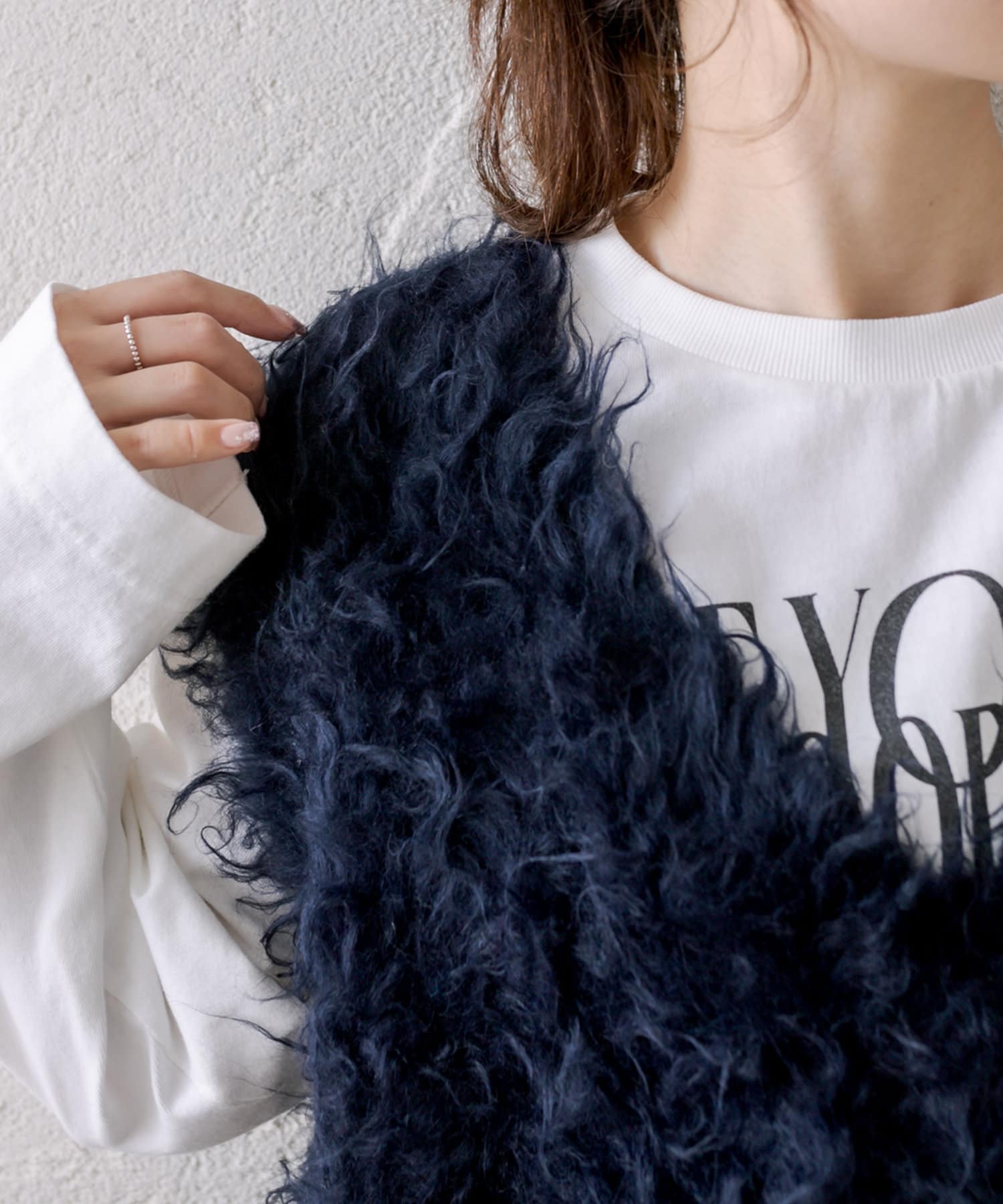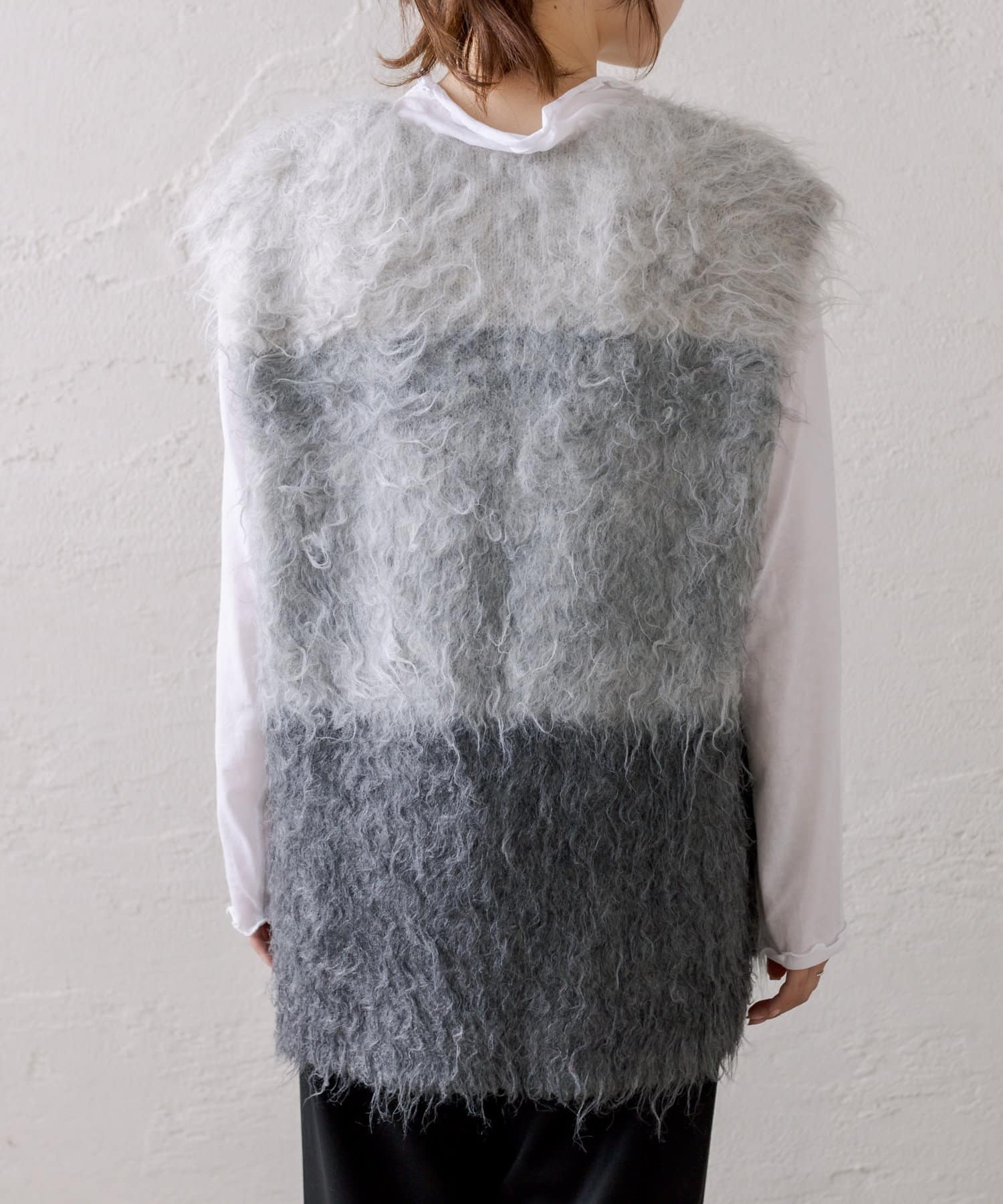 ボリューム感のある毛並みが1枚で華やかに決まるニットベスト。