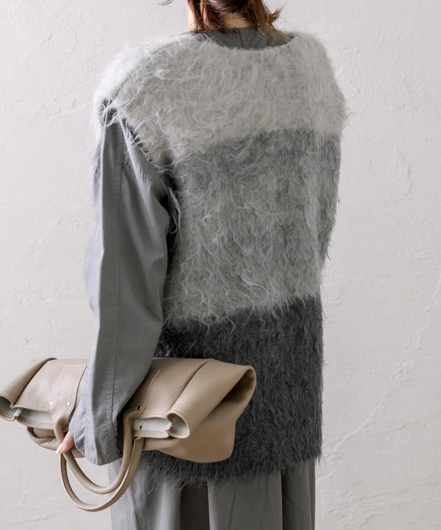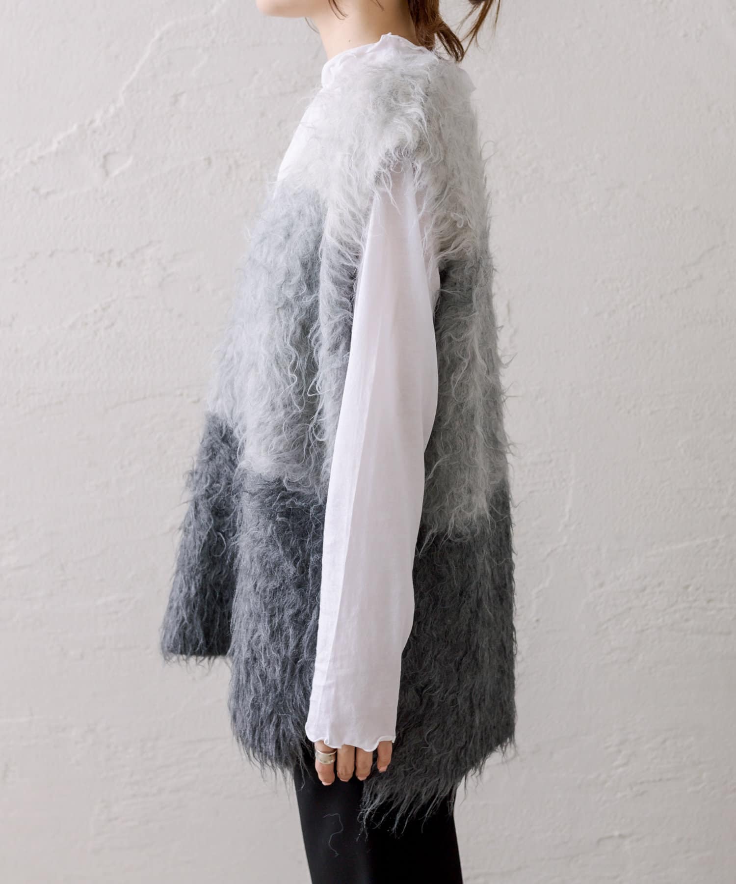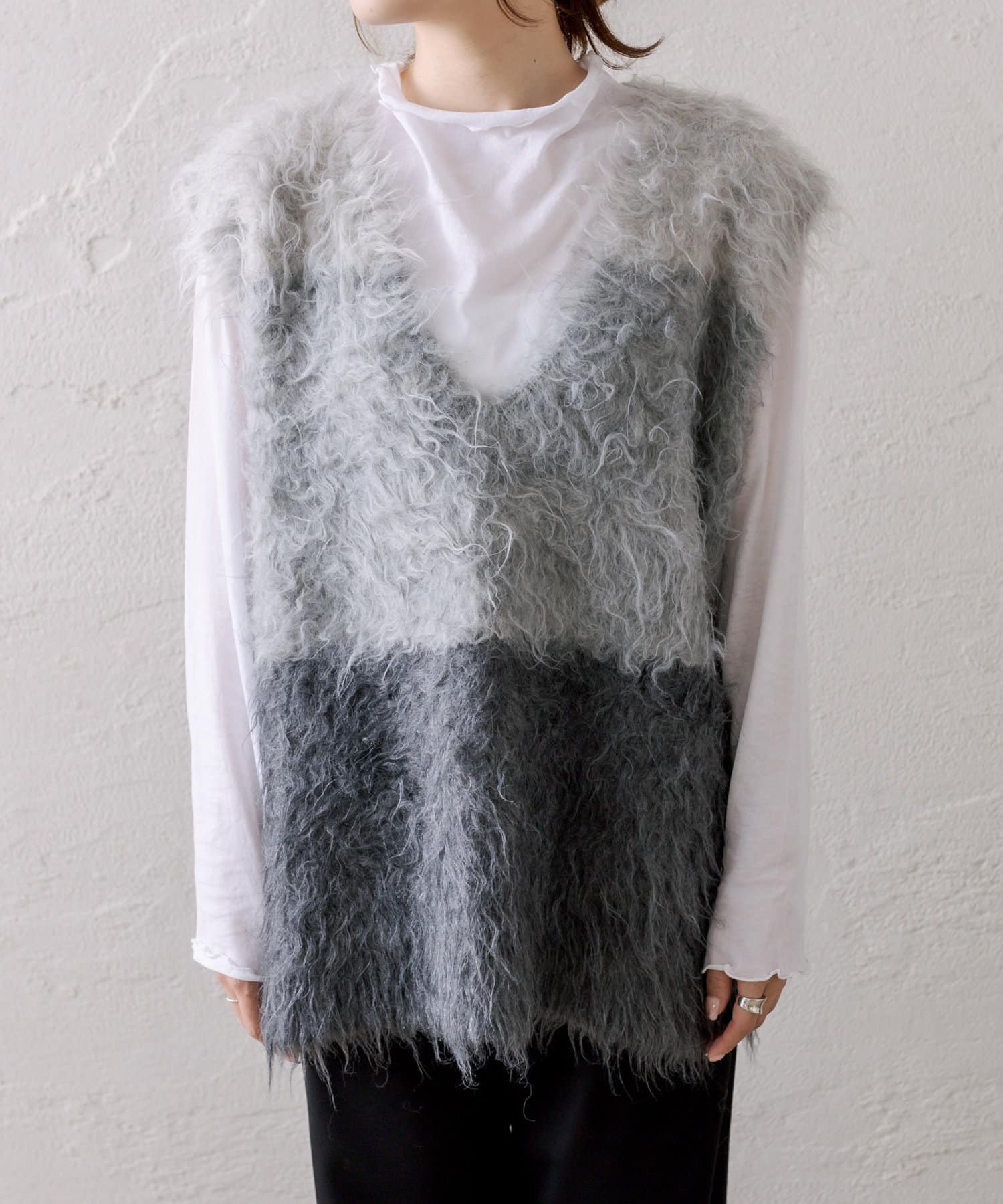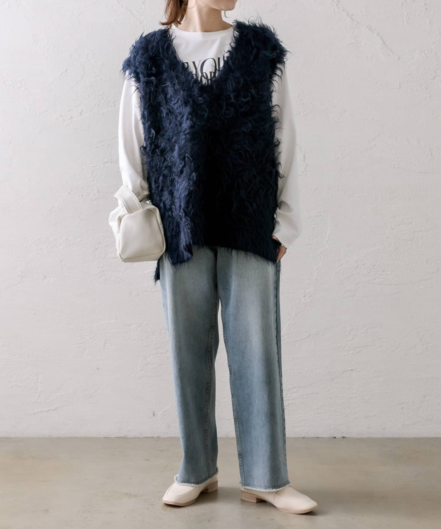 ボリューム感のある毛並みが1枚で華やかに決まるニットベスト。