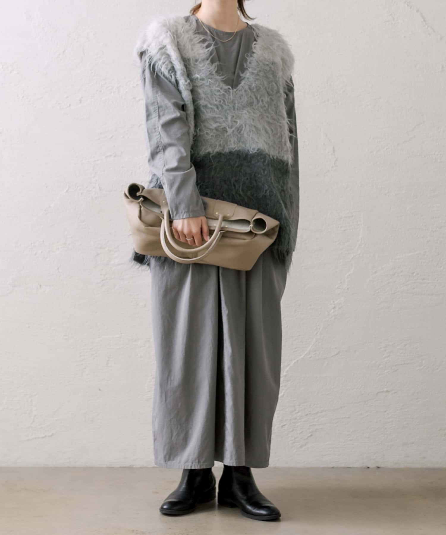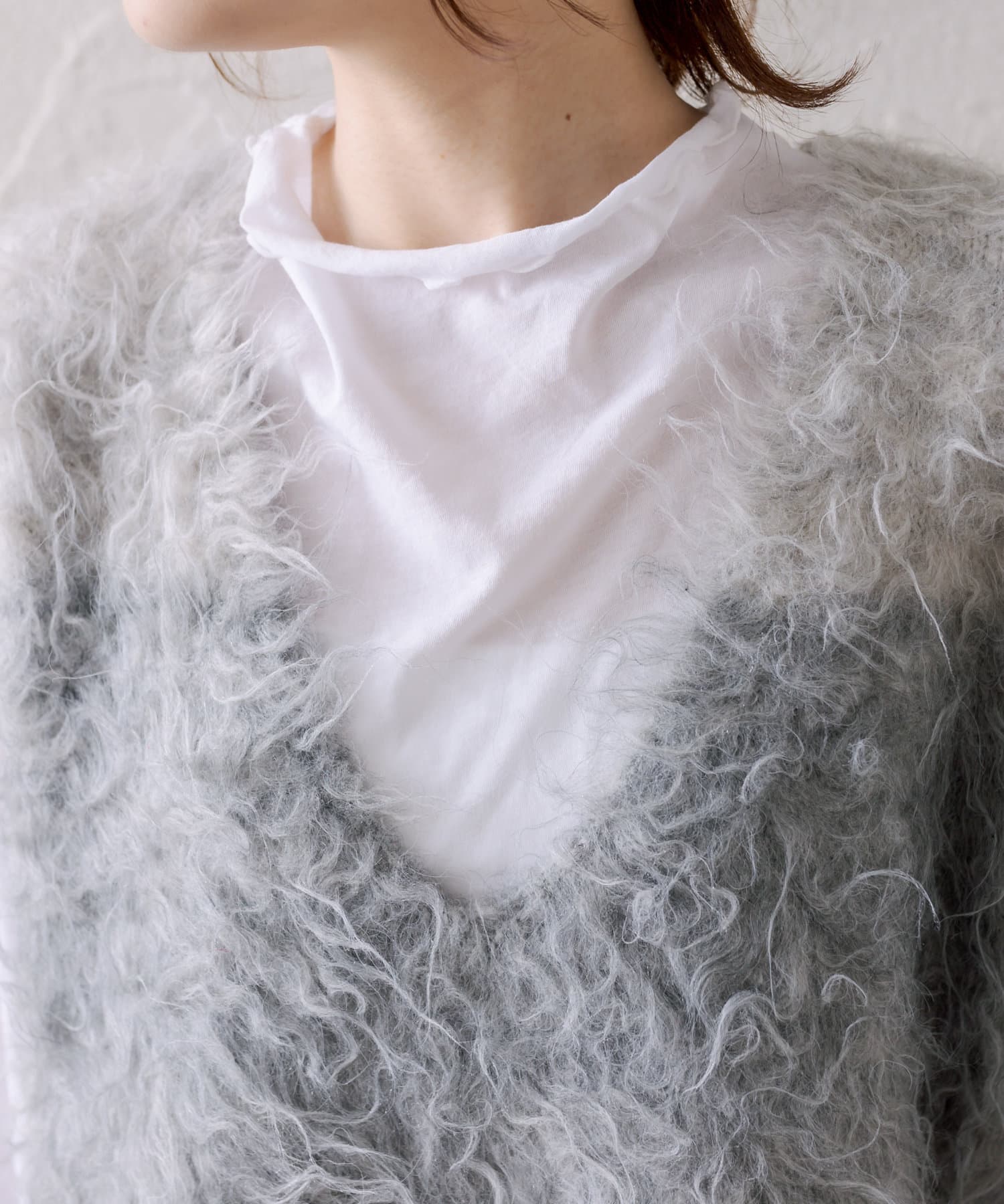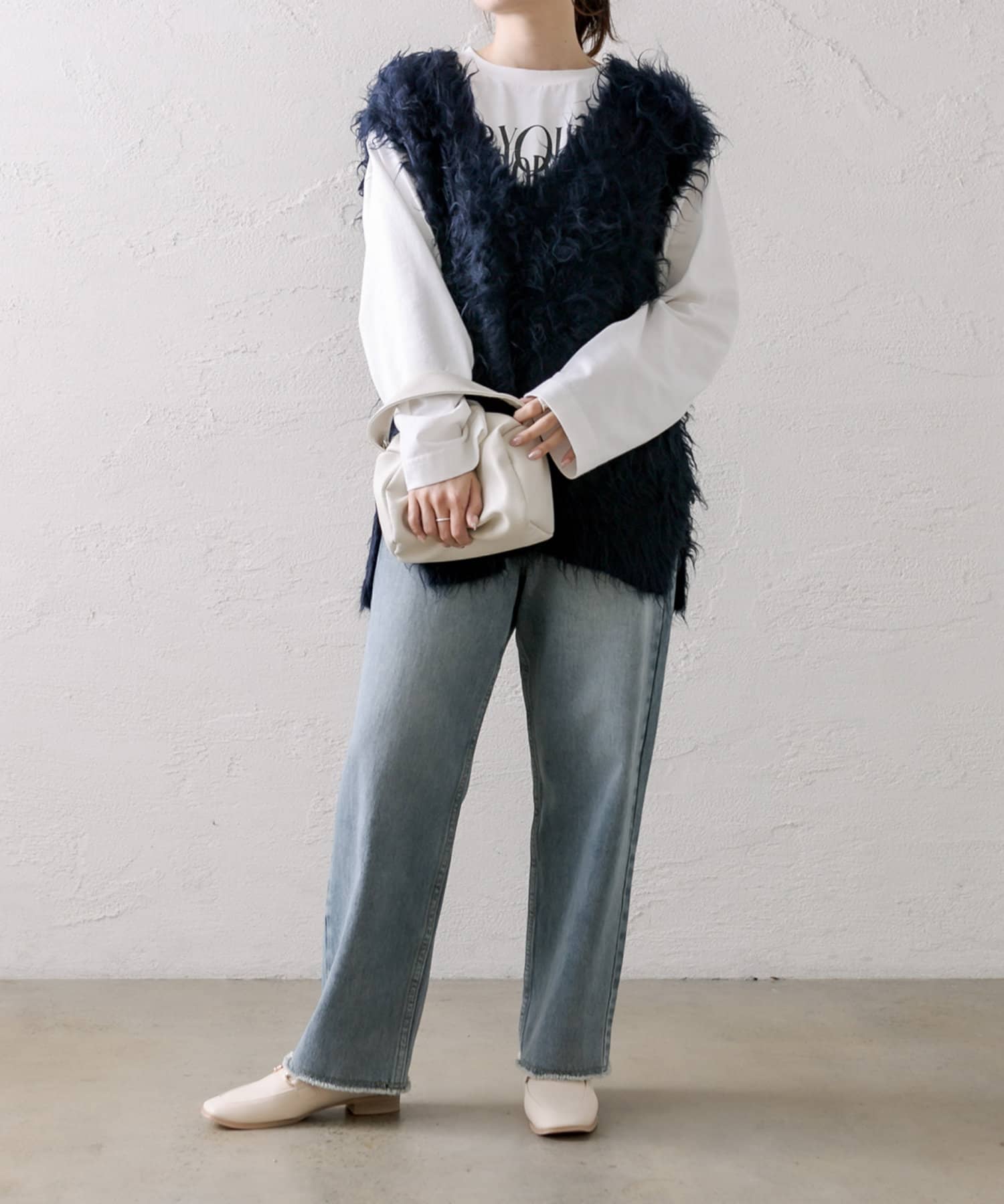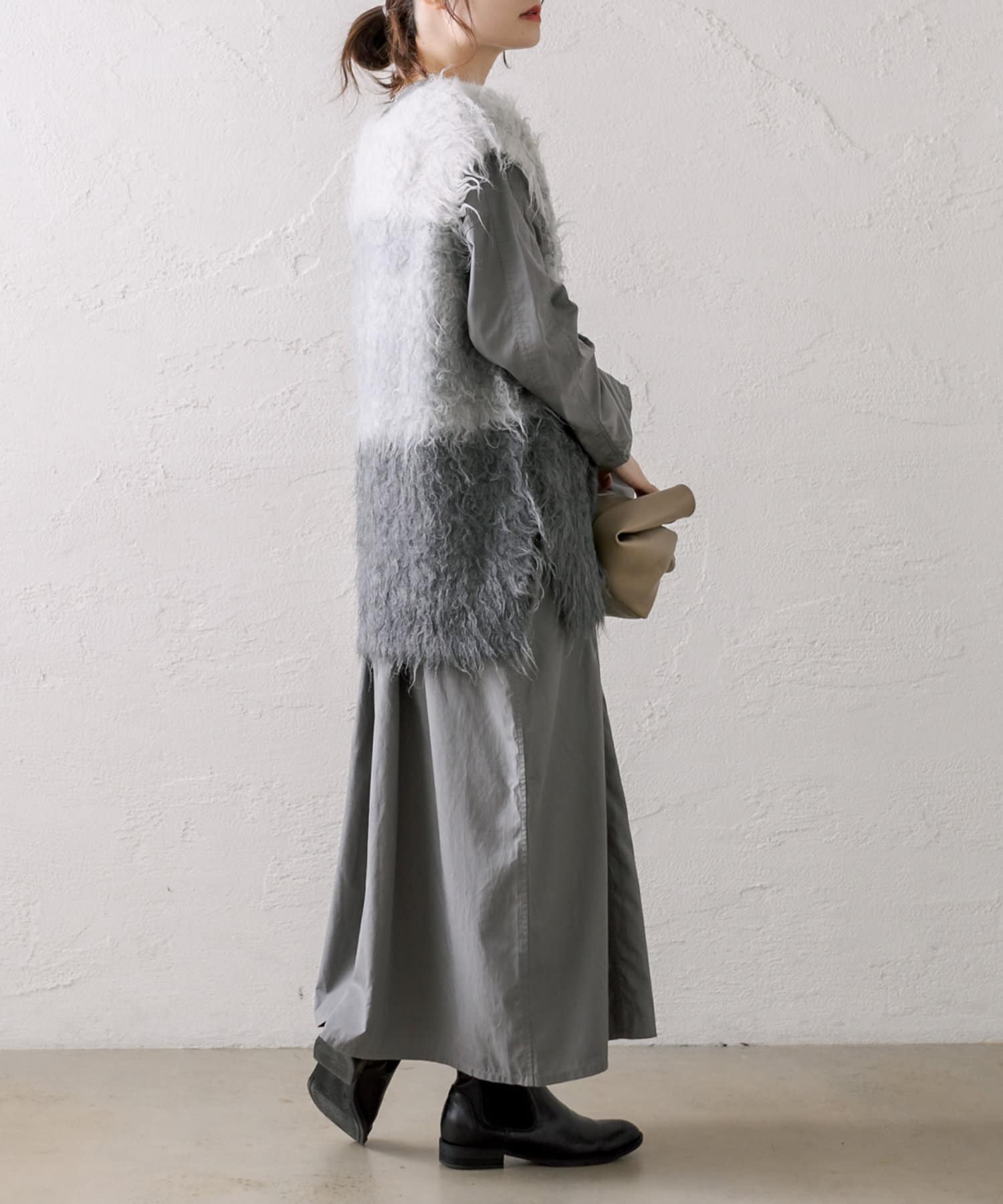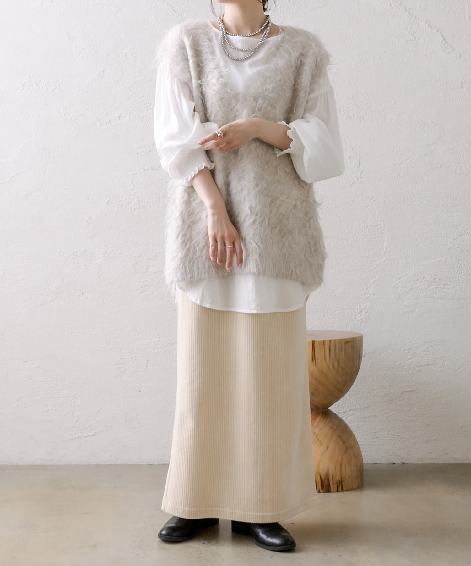 ボリューム感のある毛並みが1枚で華やかに決まるニットベスト。