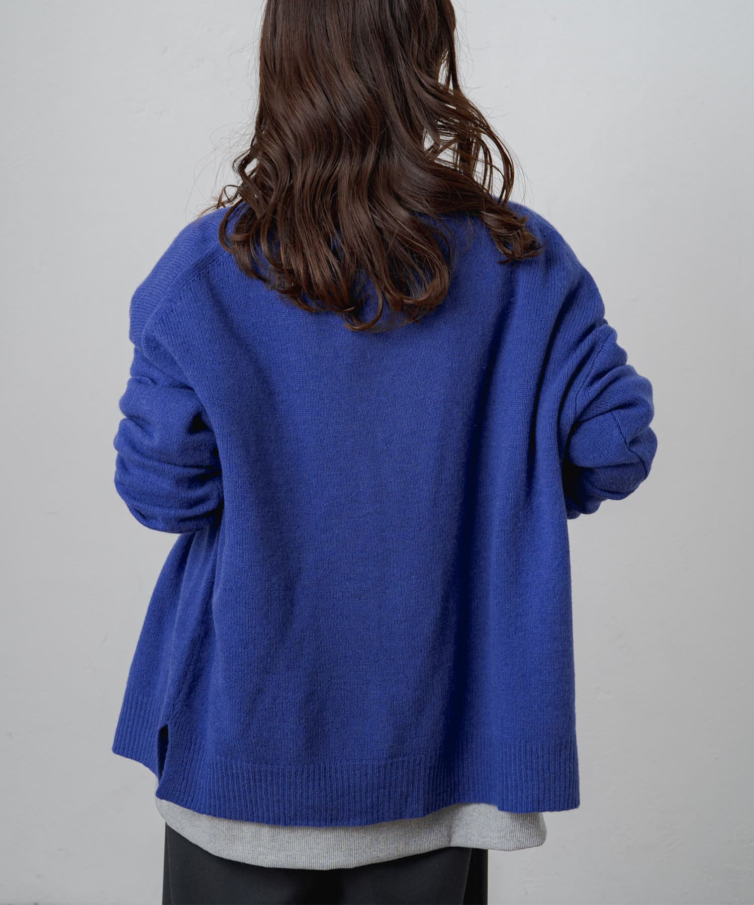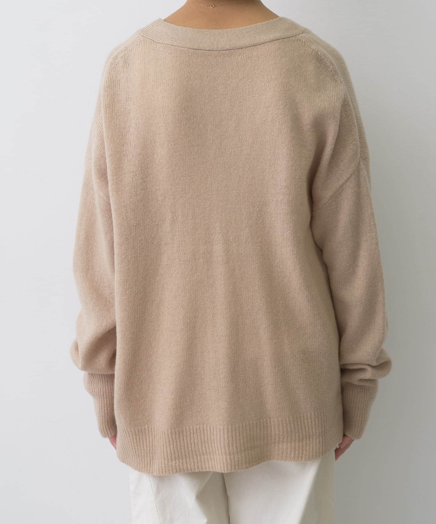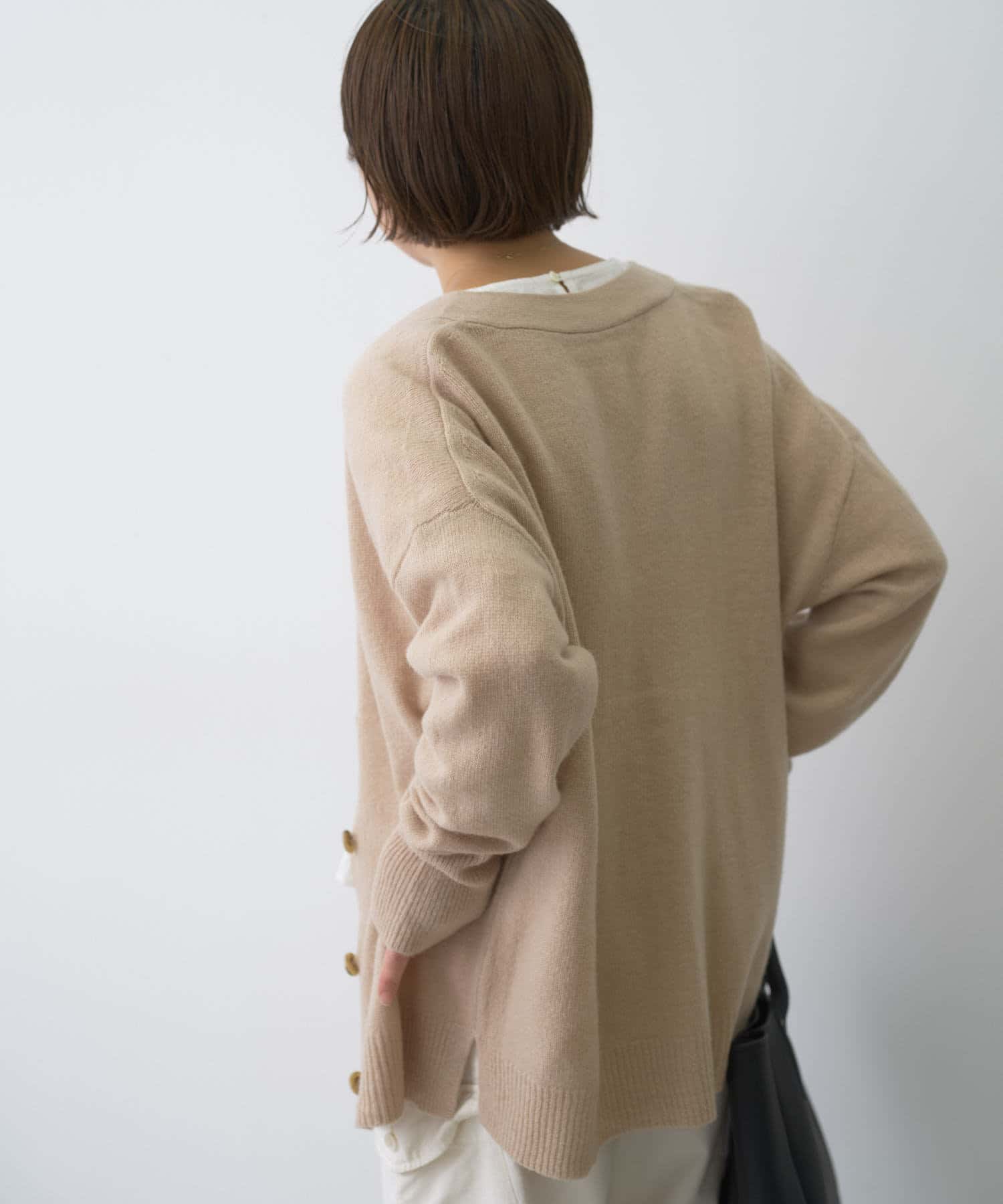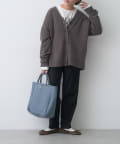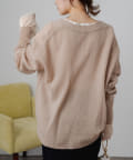 程よくゆとりのあるシルエットながら、Vネックデザインがすっきりとした印象に。