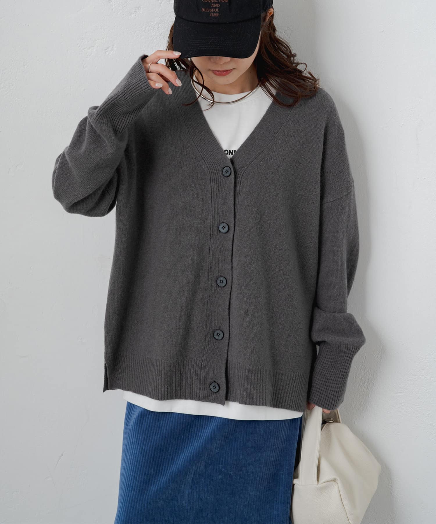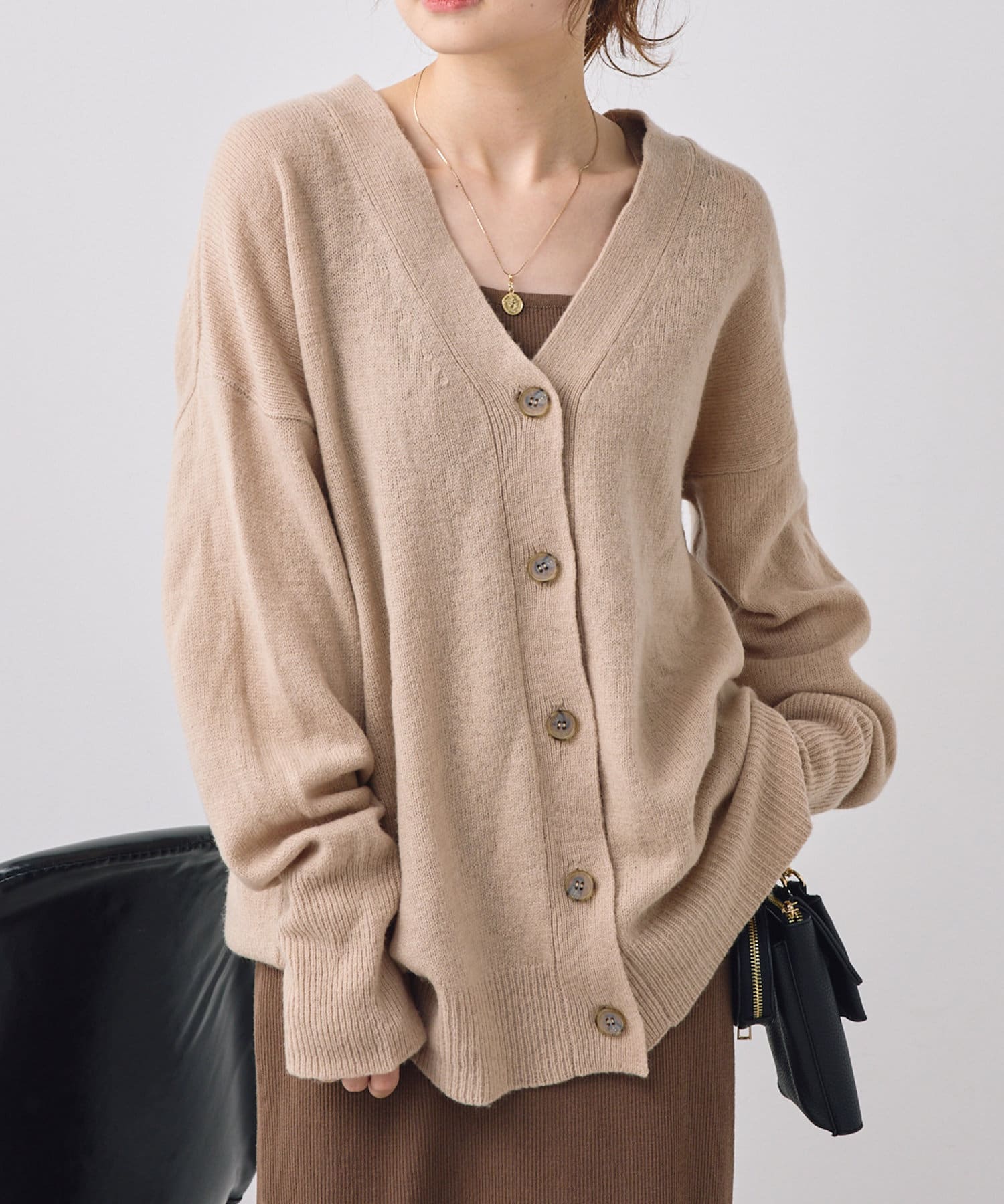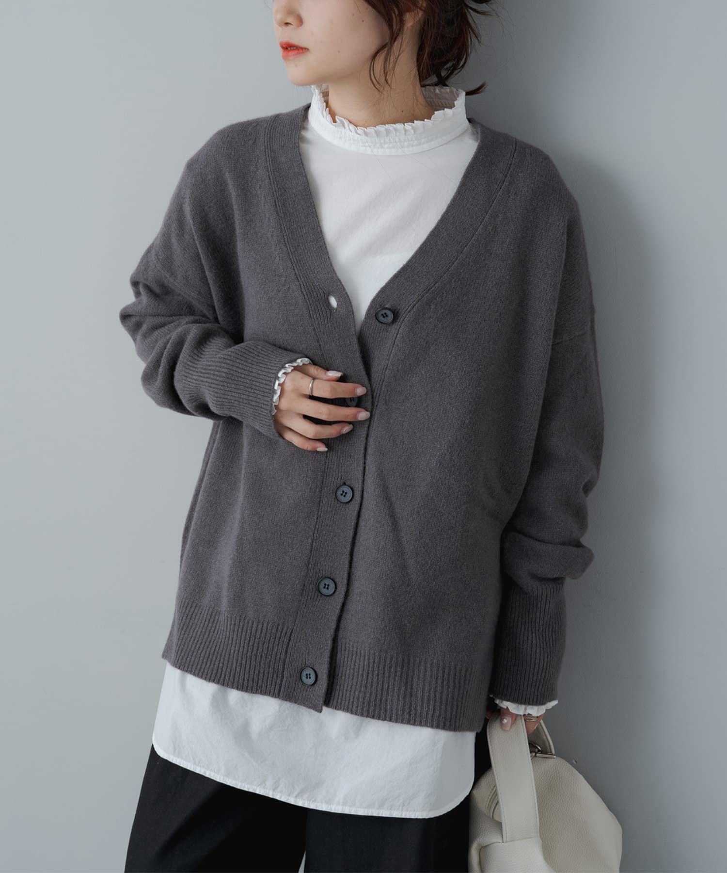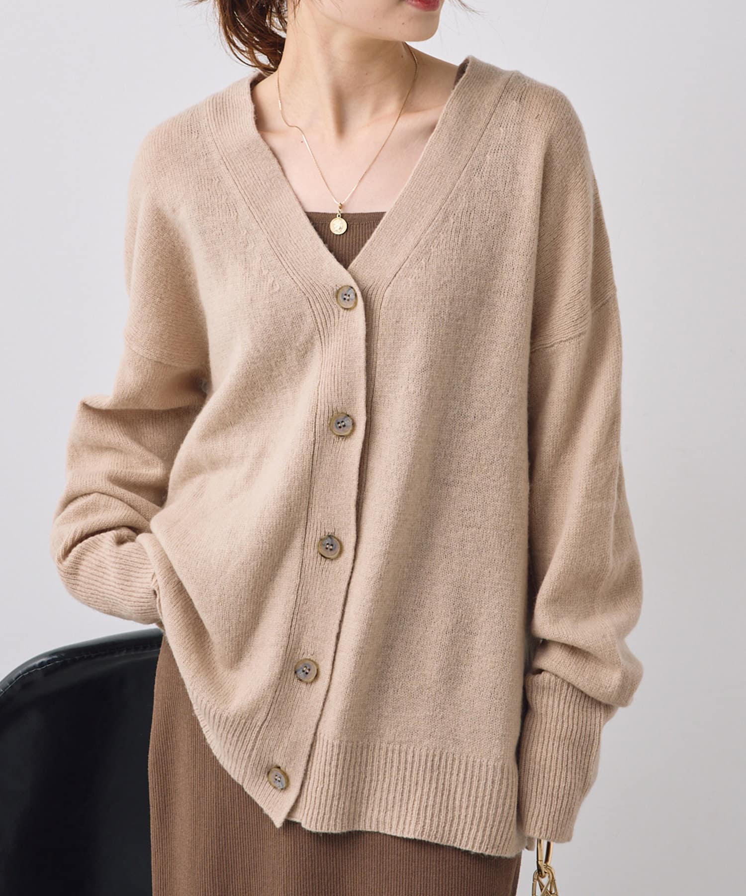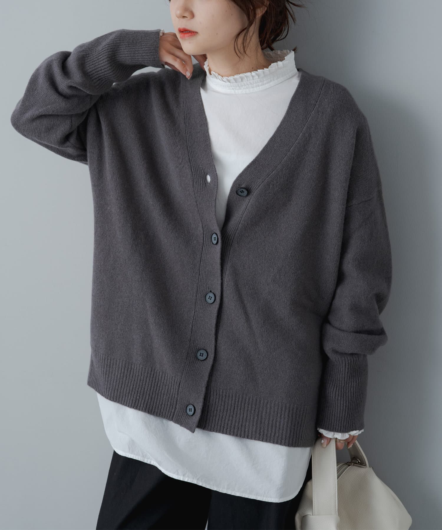 柔らかく軽い着心地で、秋冬に活躍するシンプルカーディガン。