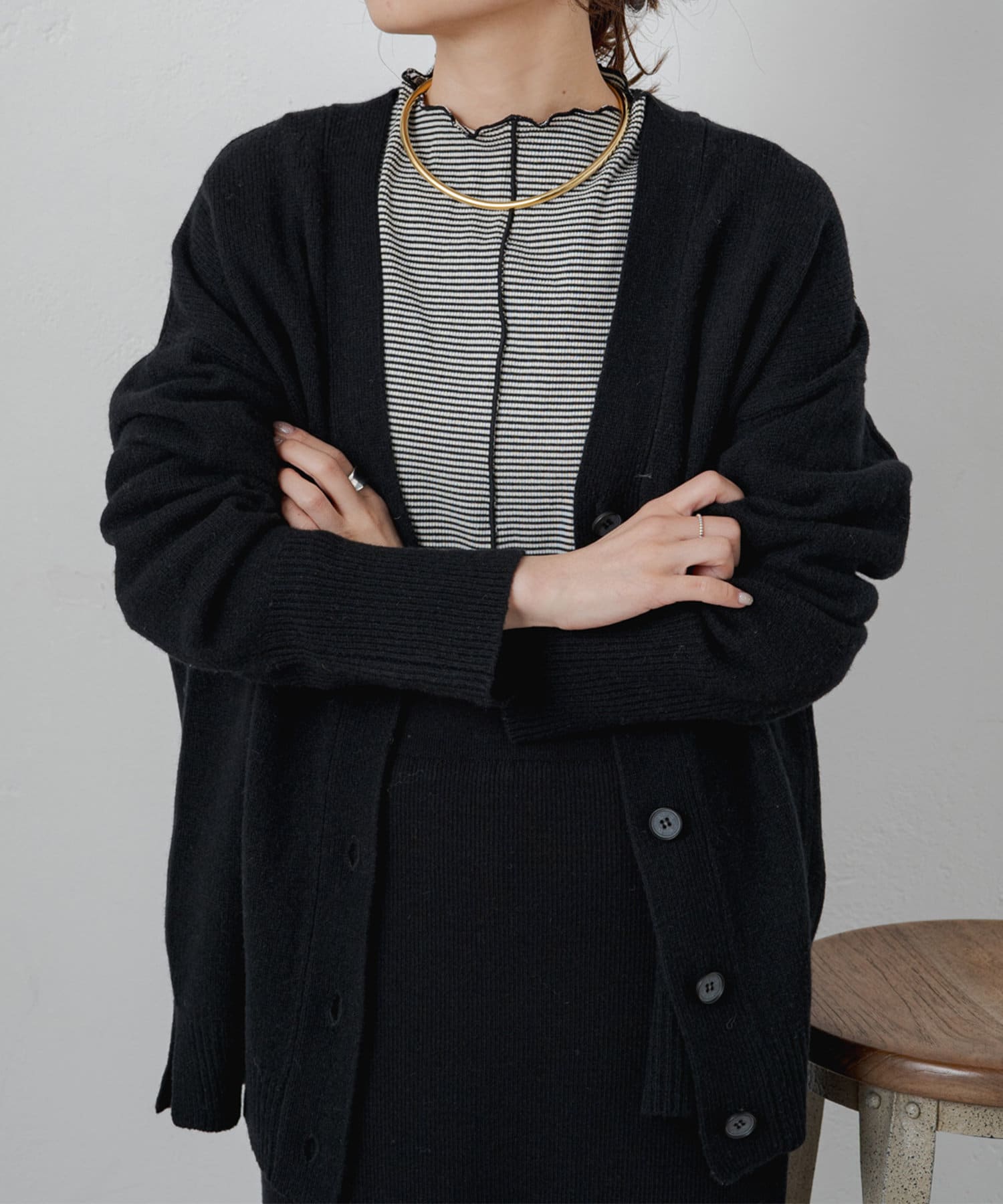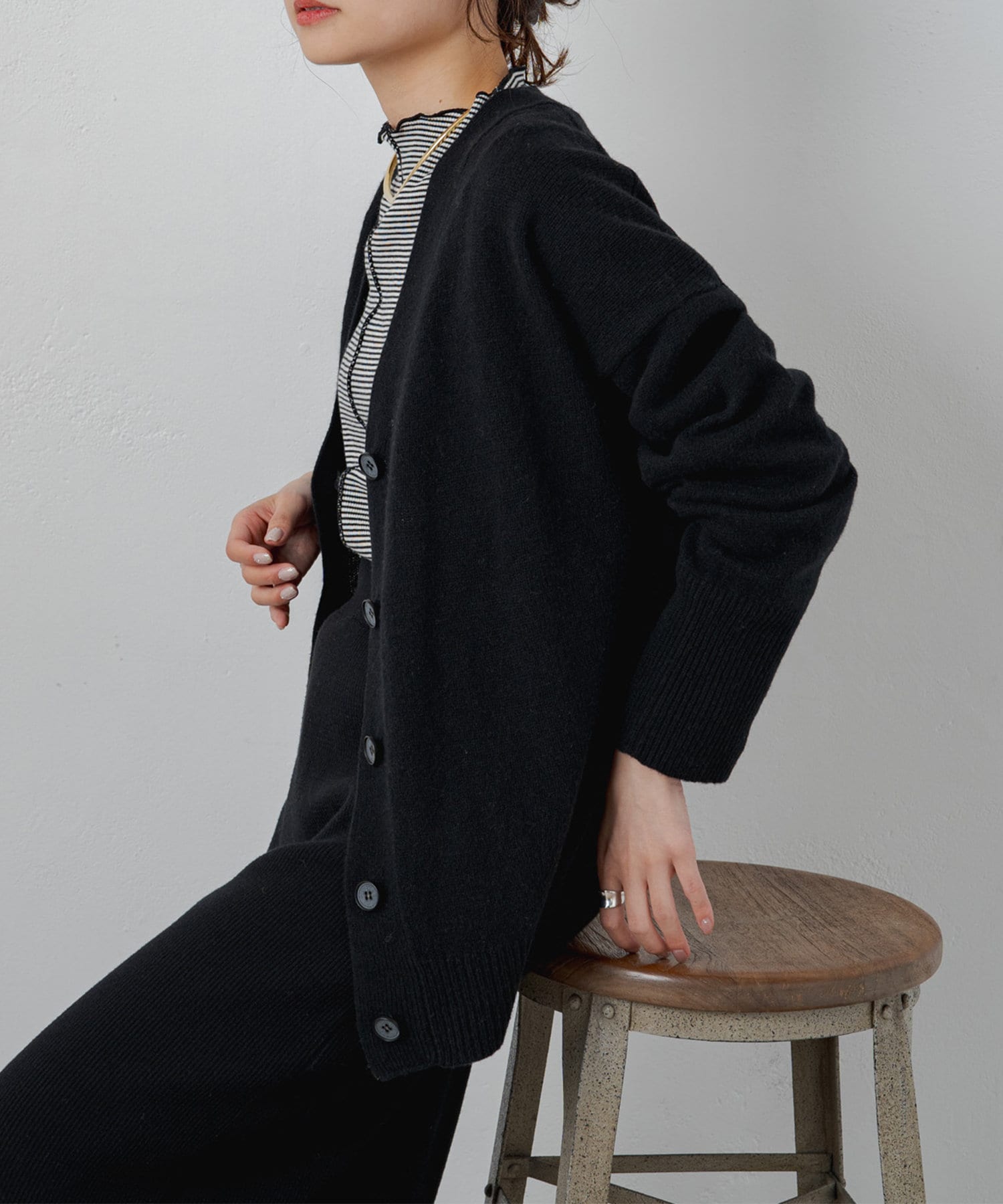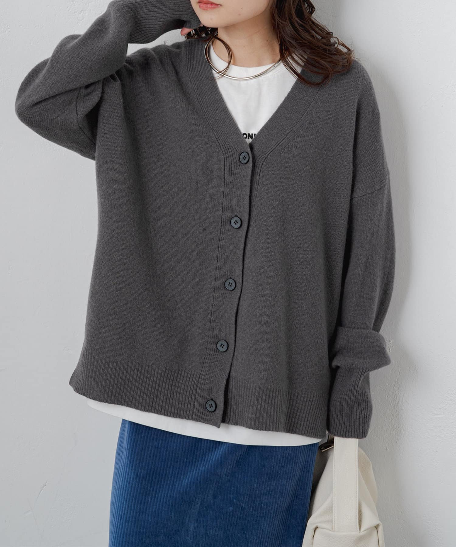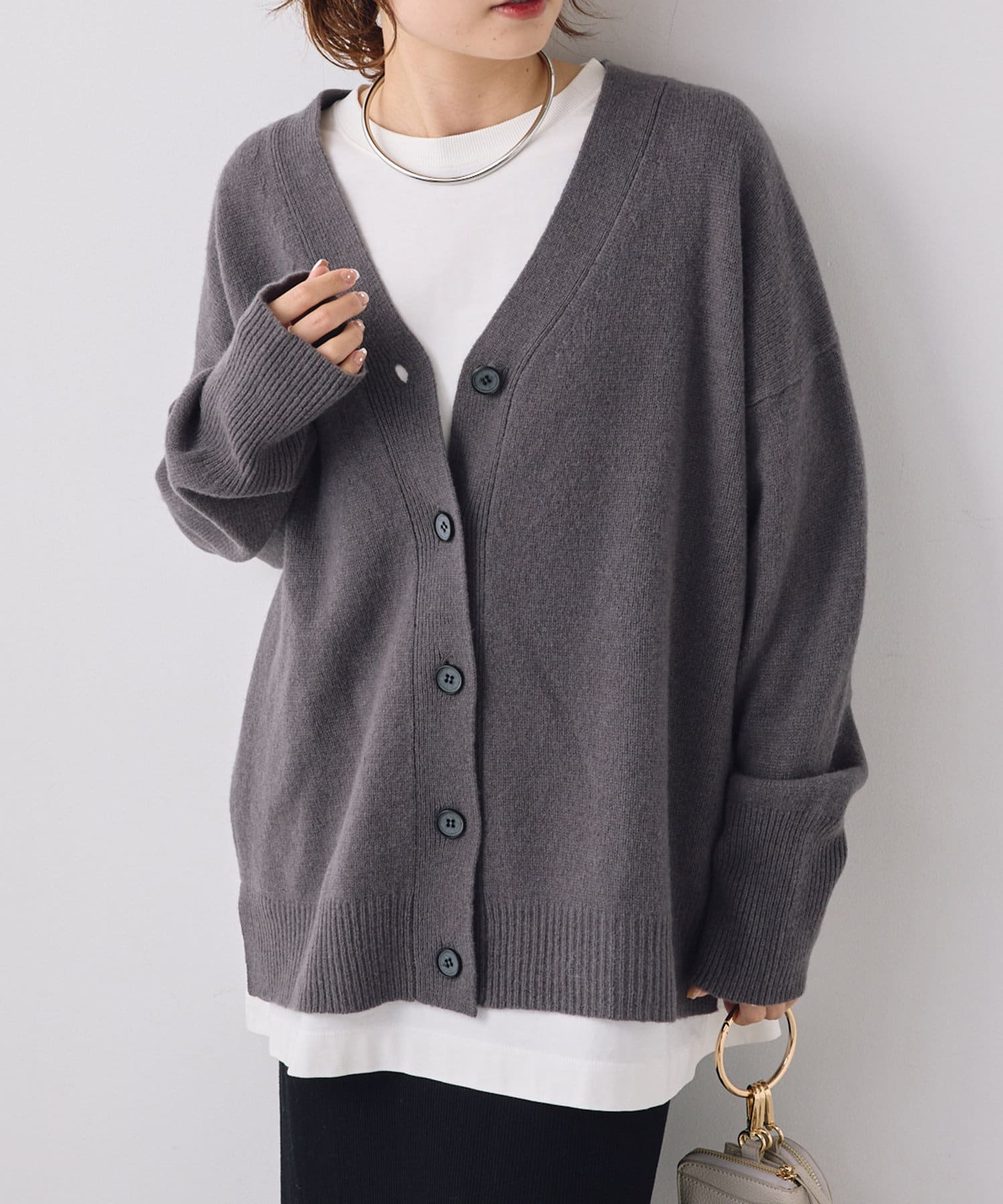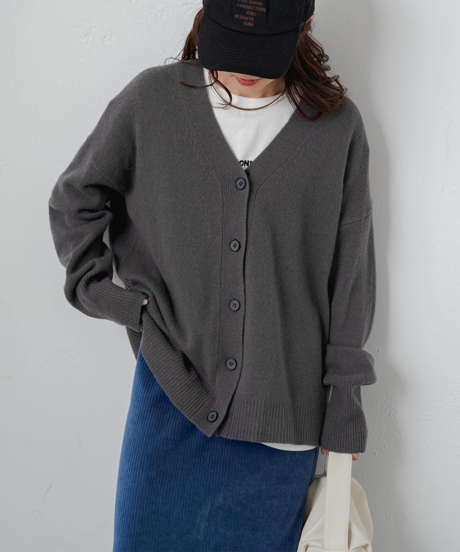 柔らかく軽い着心地で、秋冬に活躍するシンプルカーディガン。