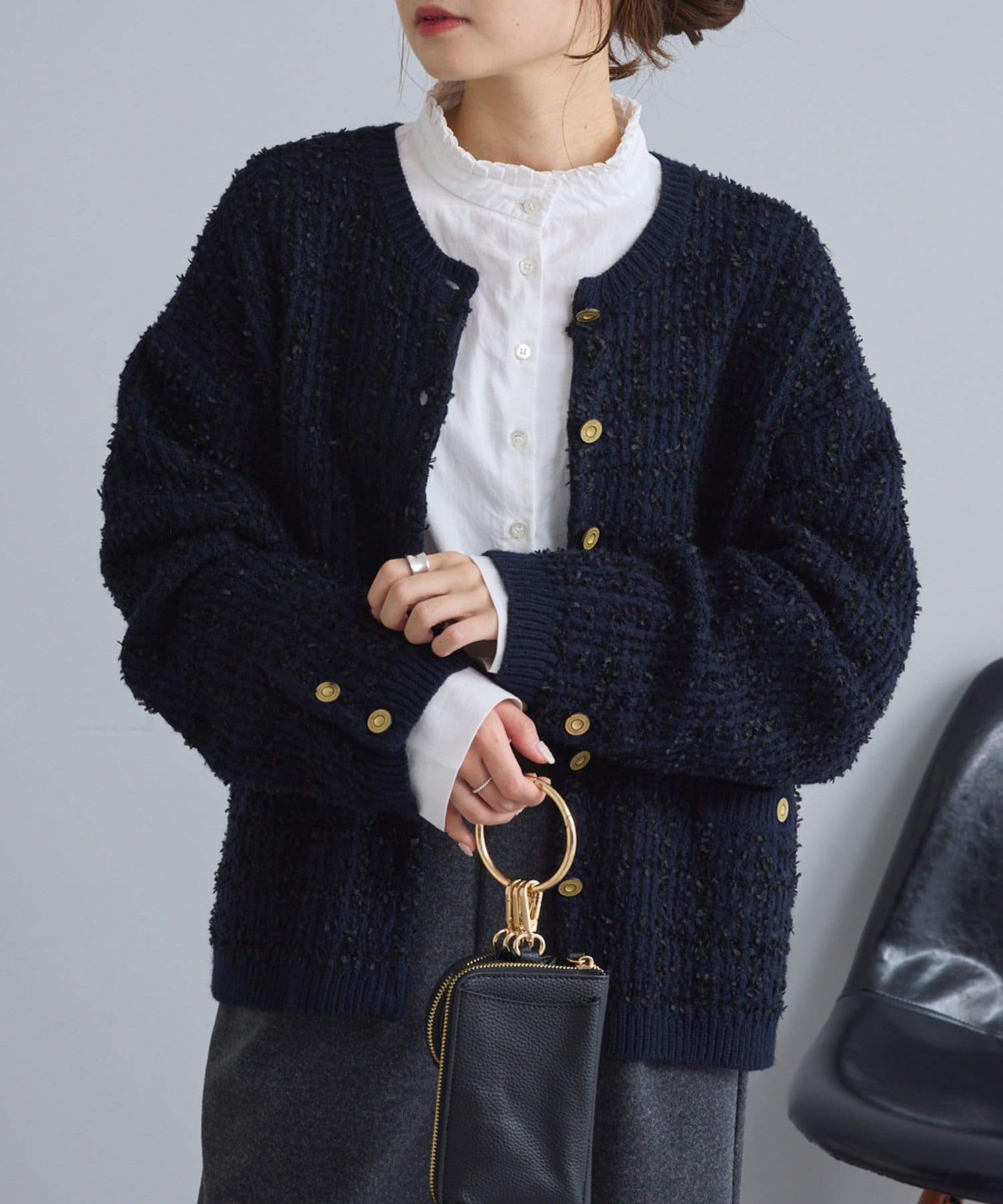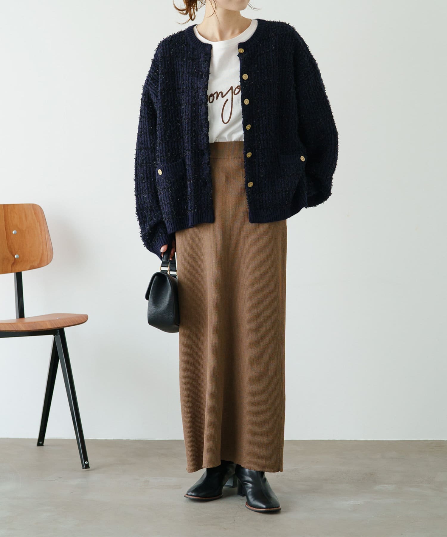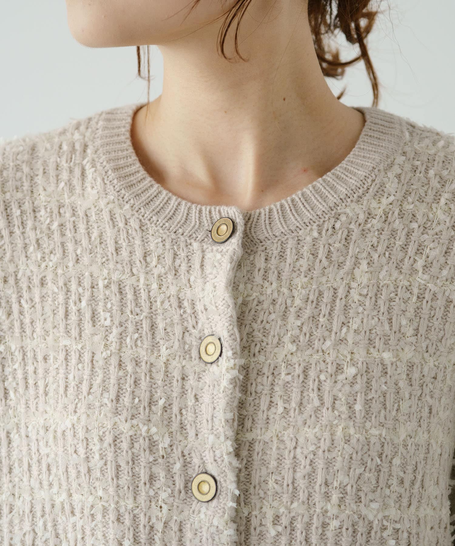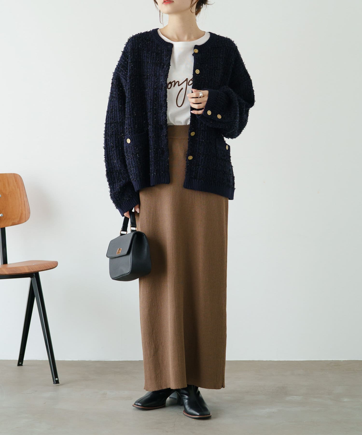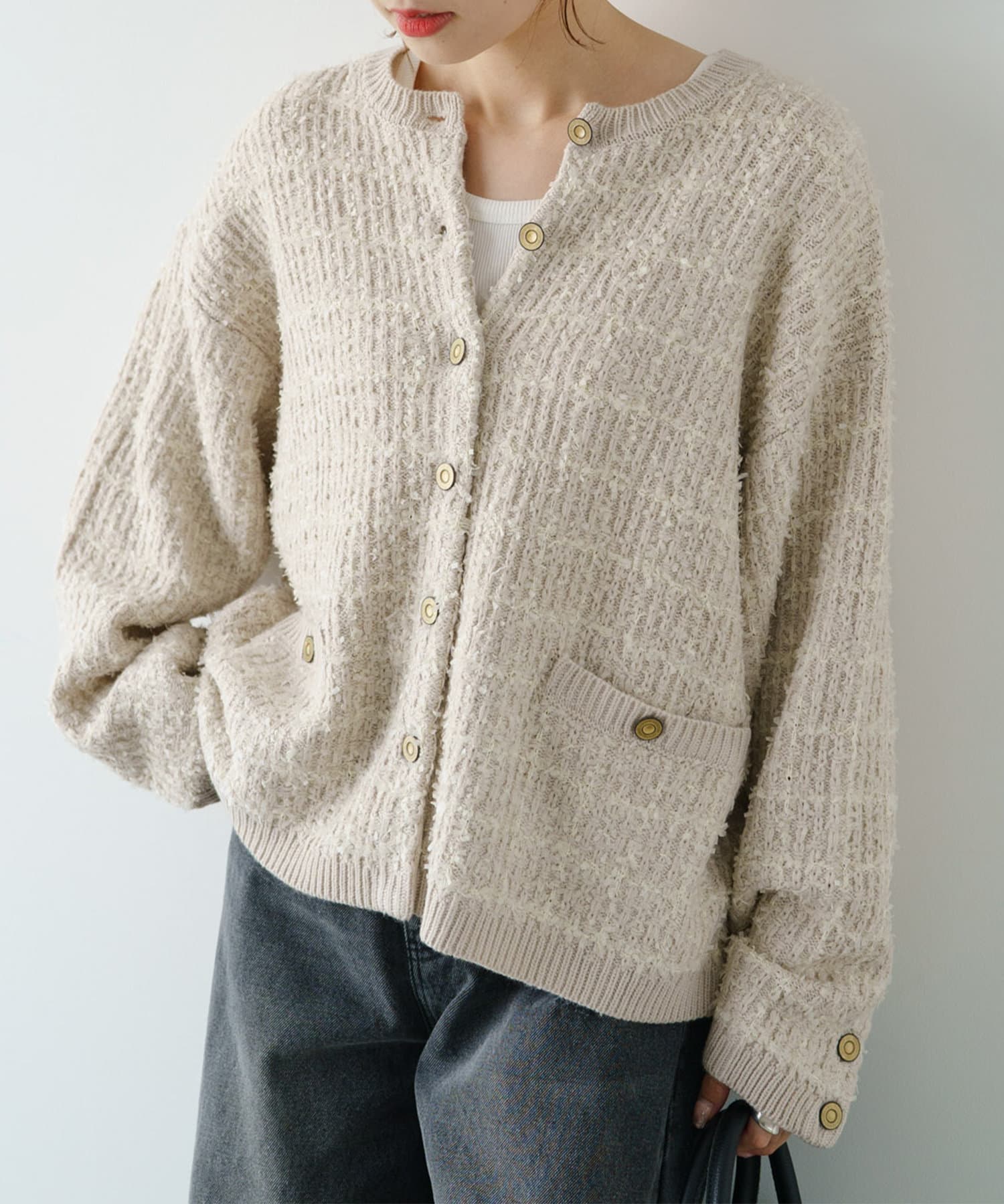きれいめに仕上げてもサマになるツイードライクカーディガン。