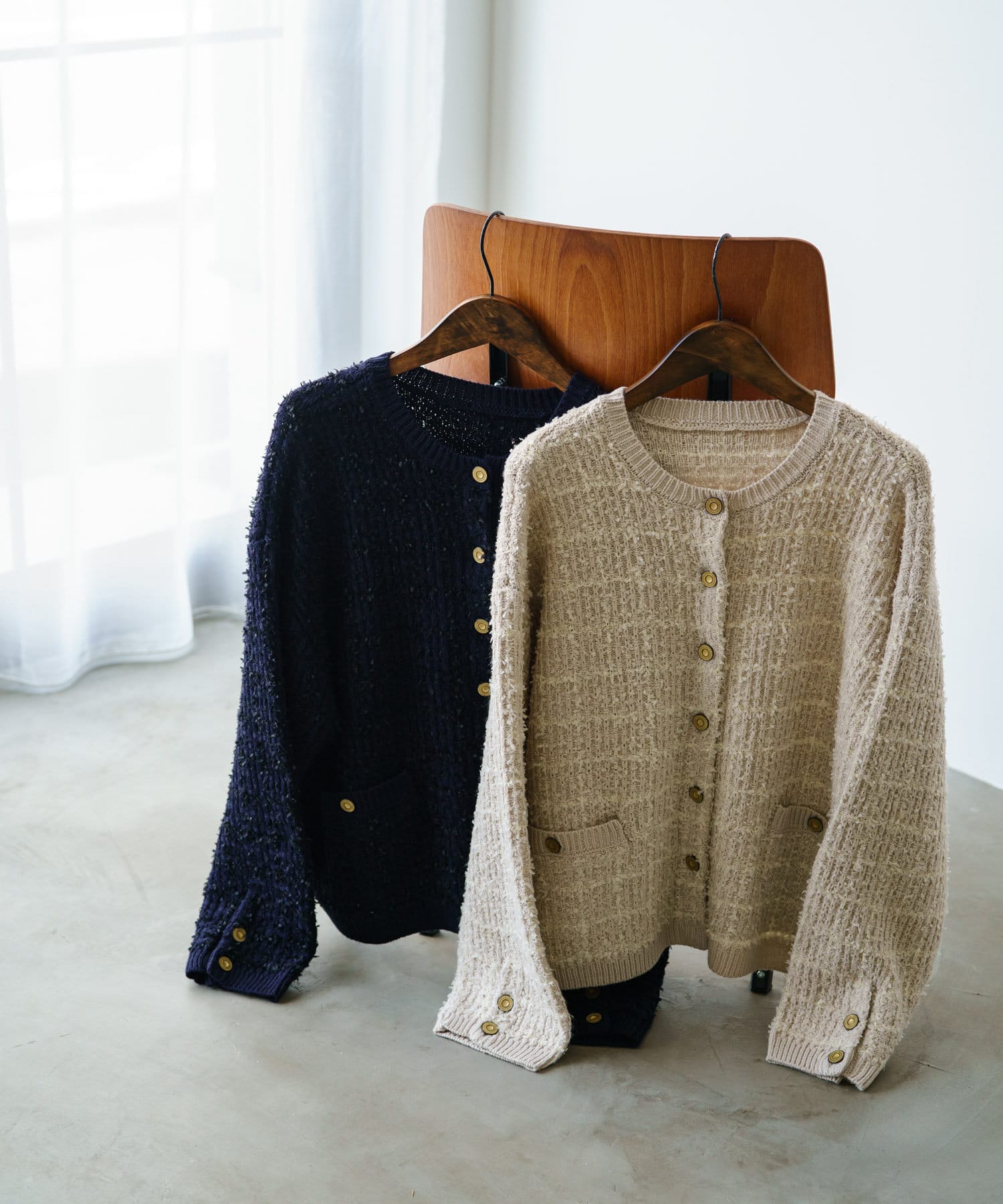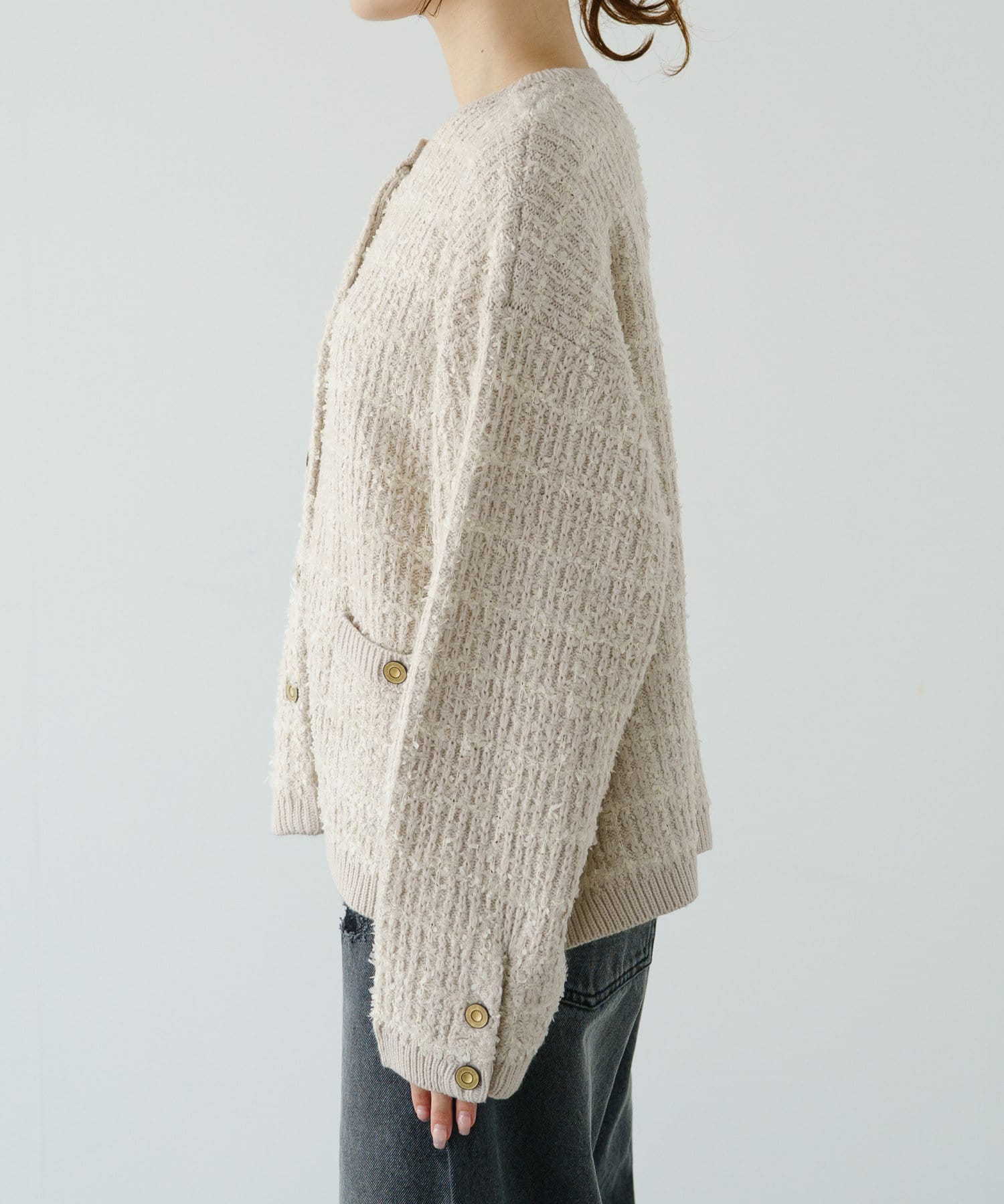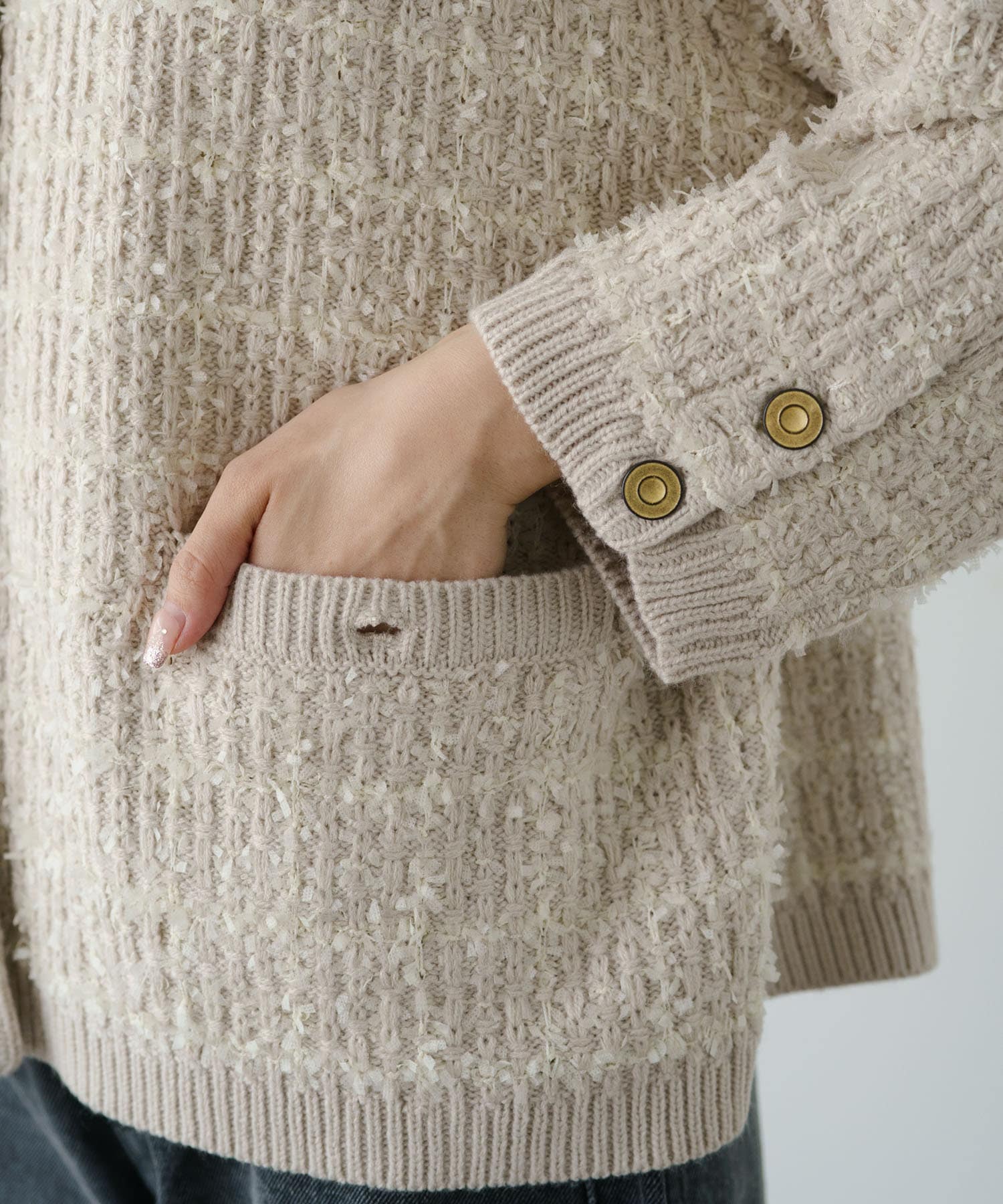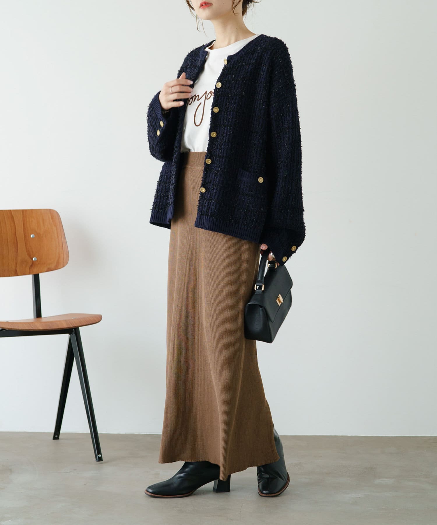 きれいめに仕上げてもサマになるツイードライクカーディガン。