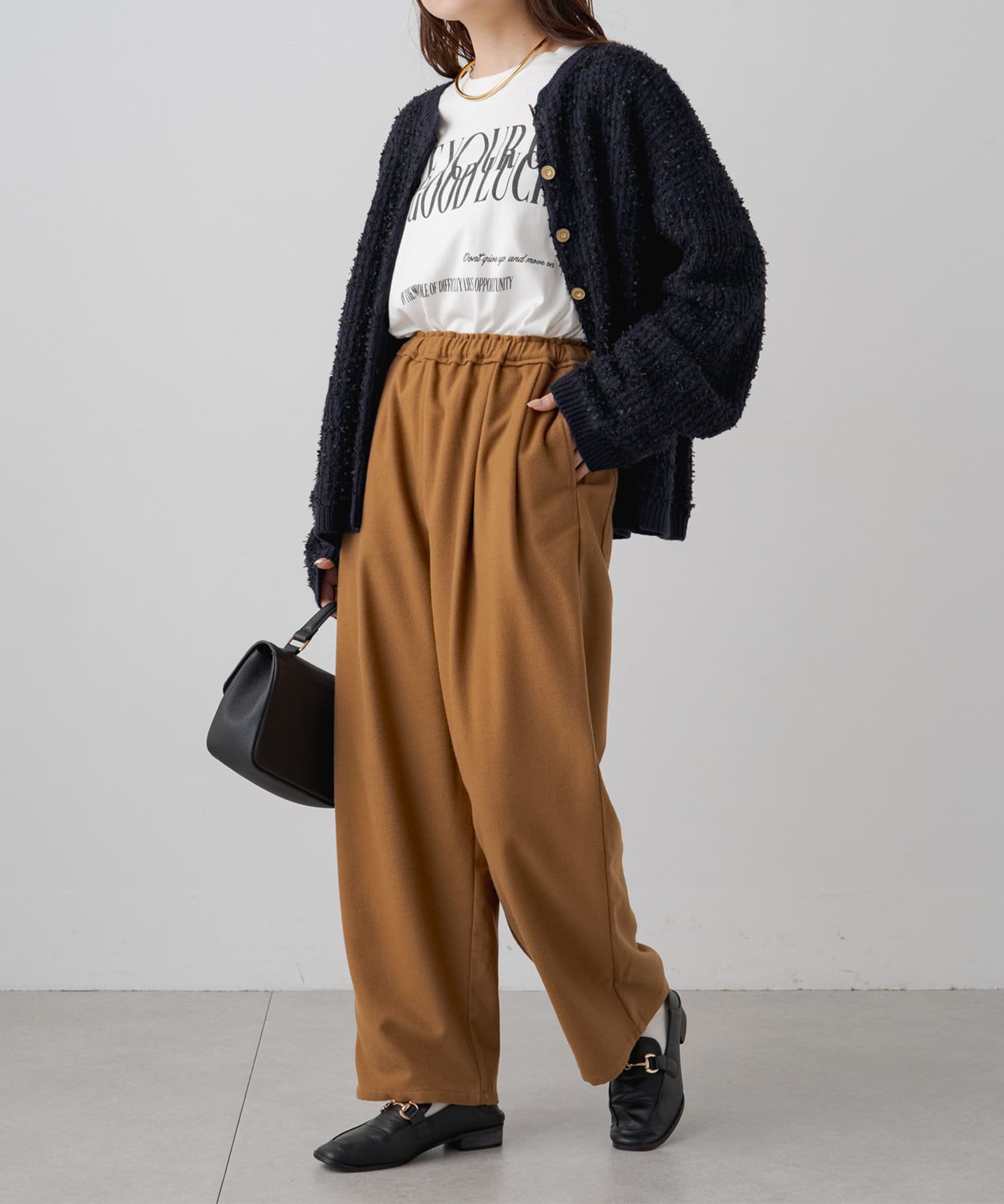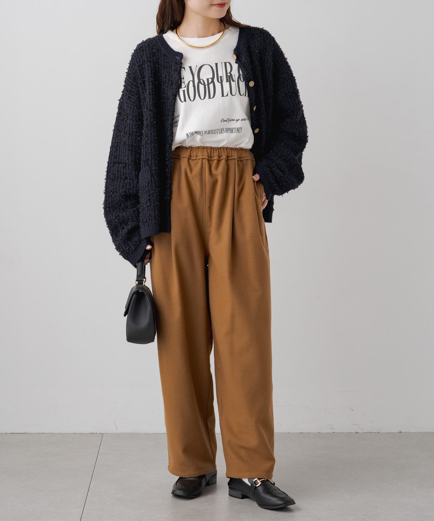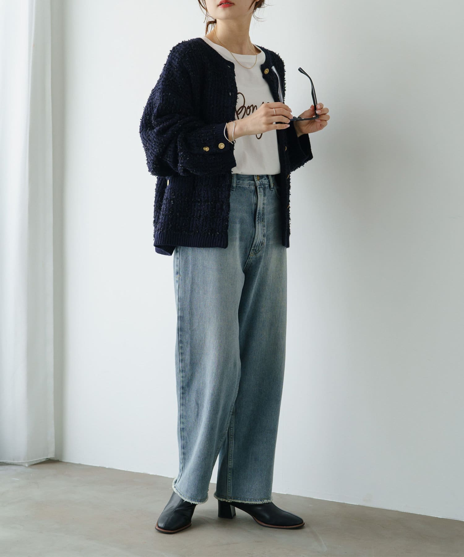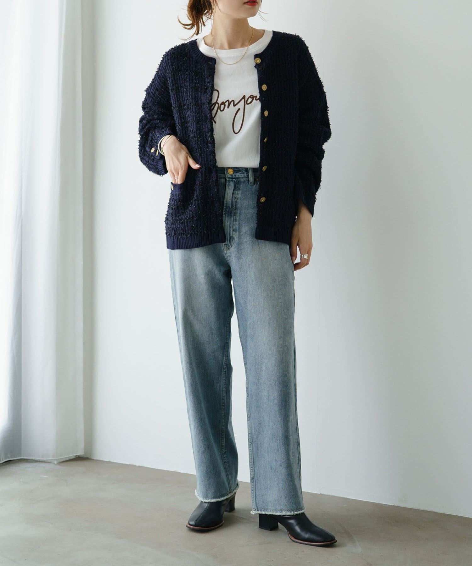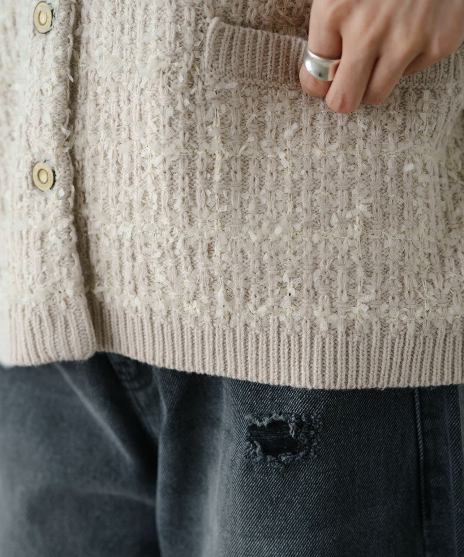 きれいめに仕上げてもサマになるツイードライクカーディガン。
