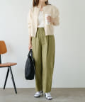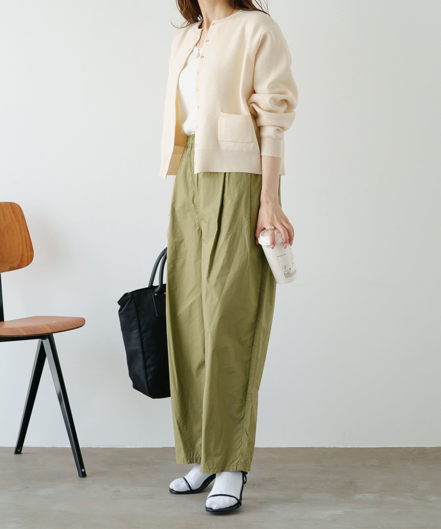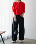 ショート丈なので、スカートやハイウエストパンツに合わせるとメリハリが出て好相性。