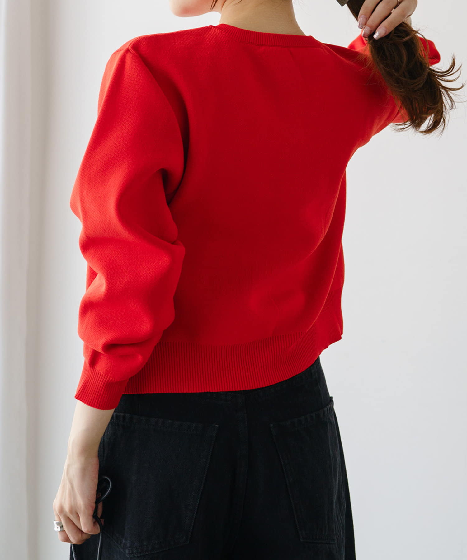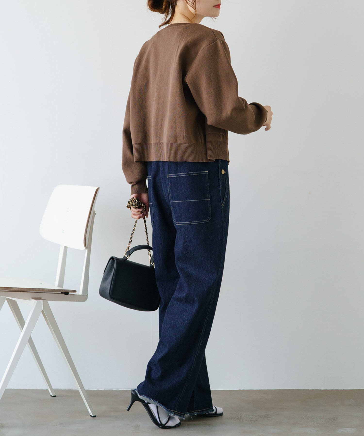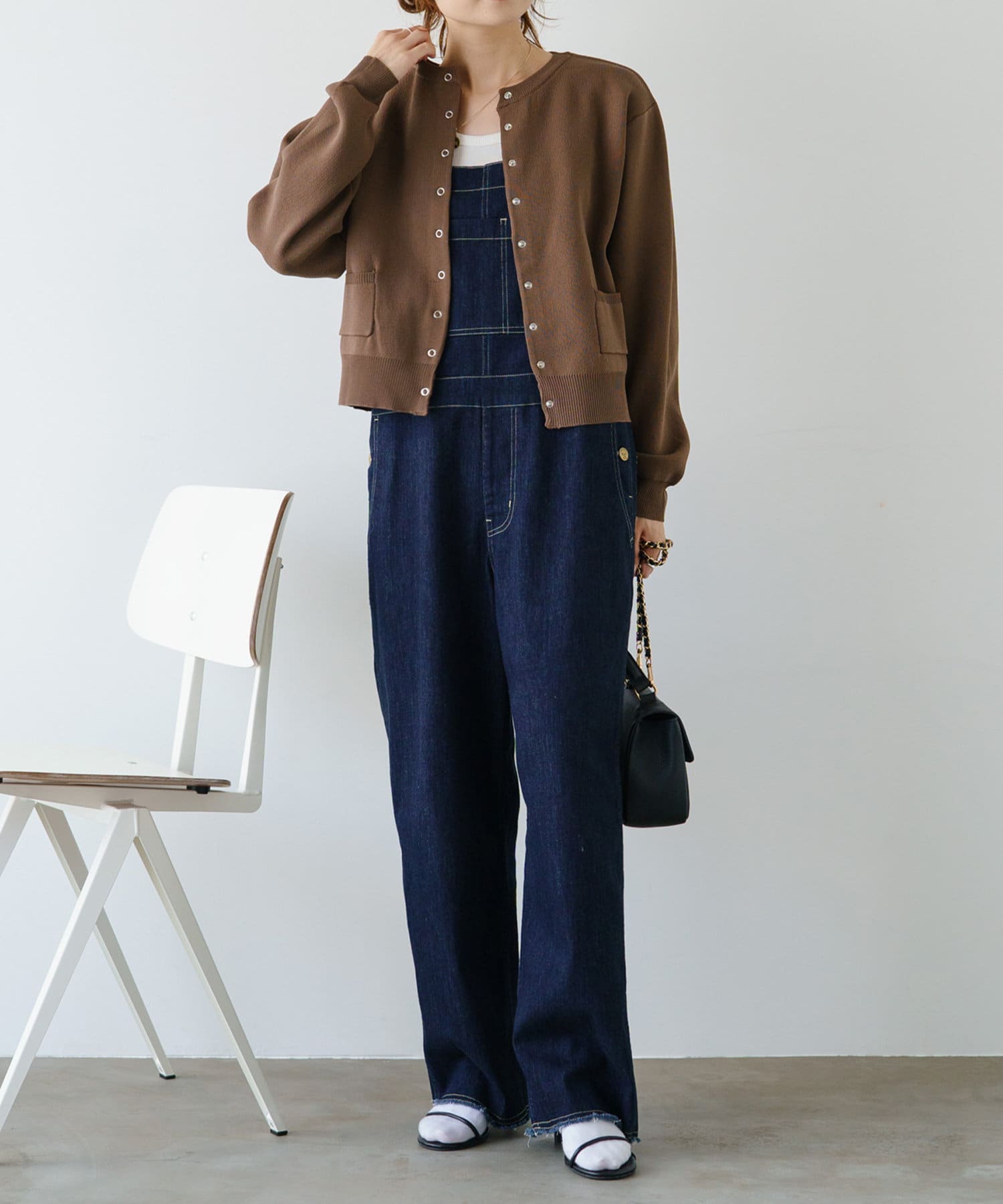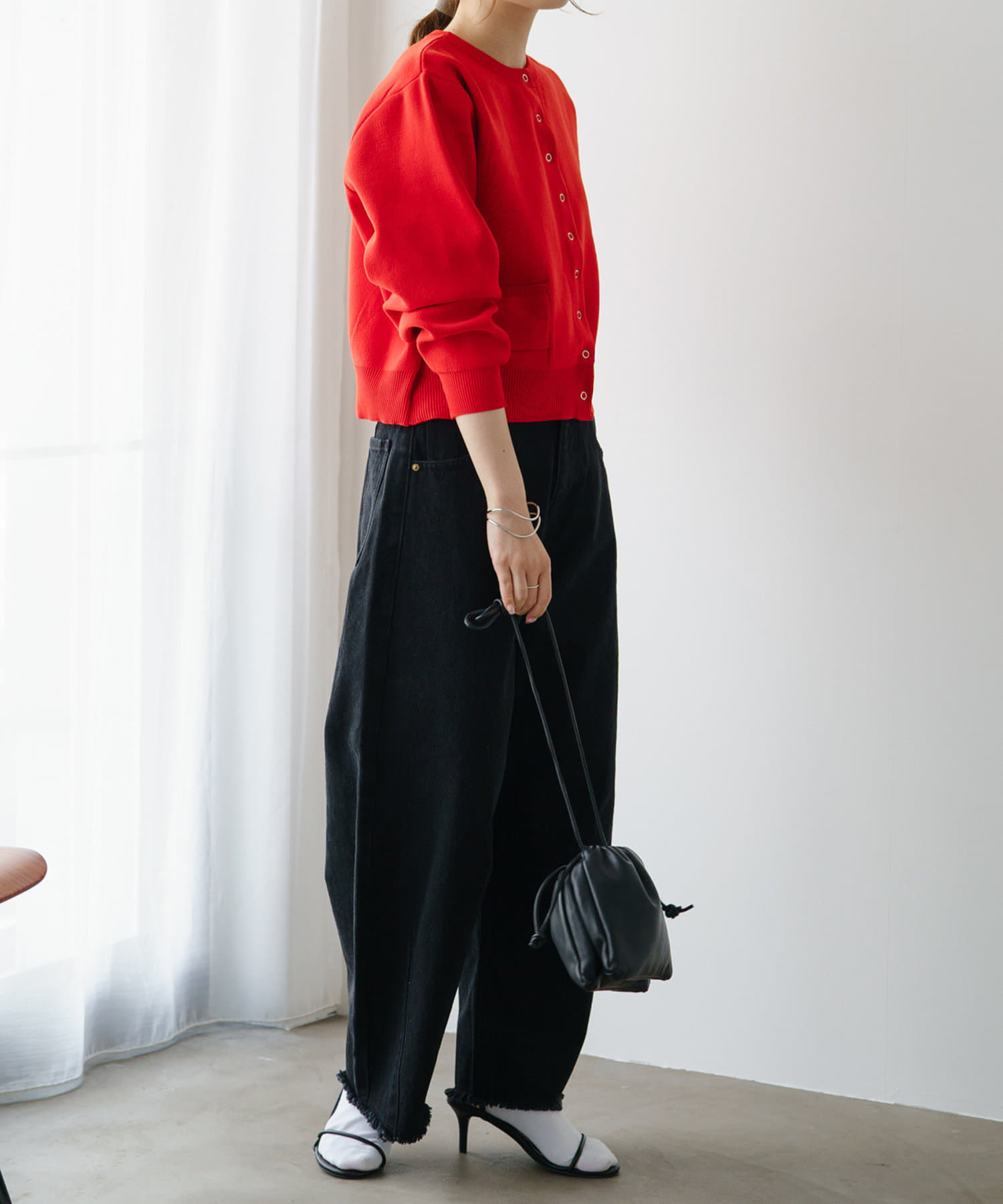 リングドットボタンとミニポケットがさりげないアクセントで目を惹くカーディガン。